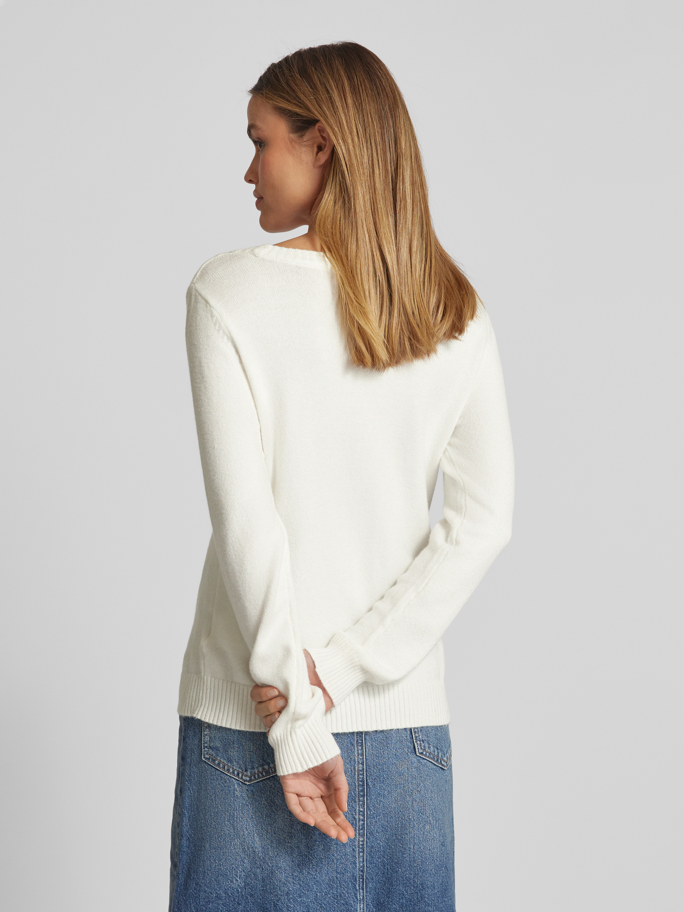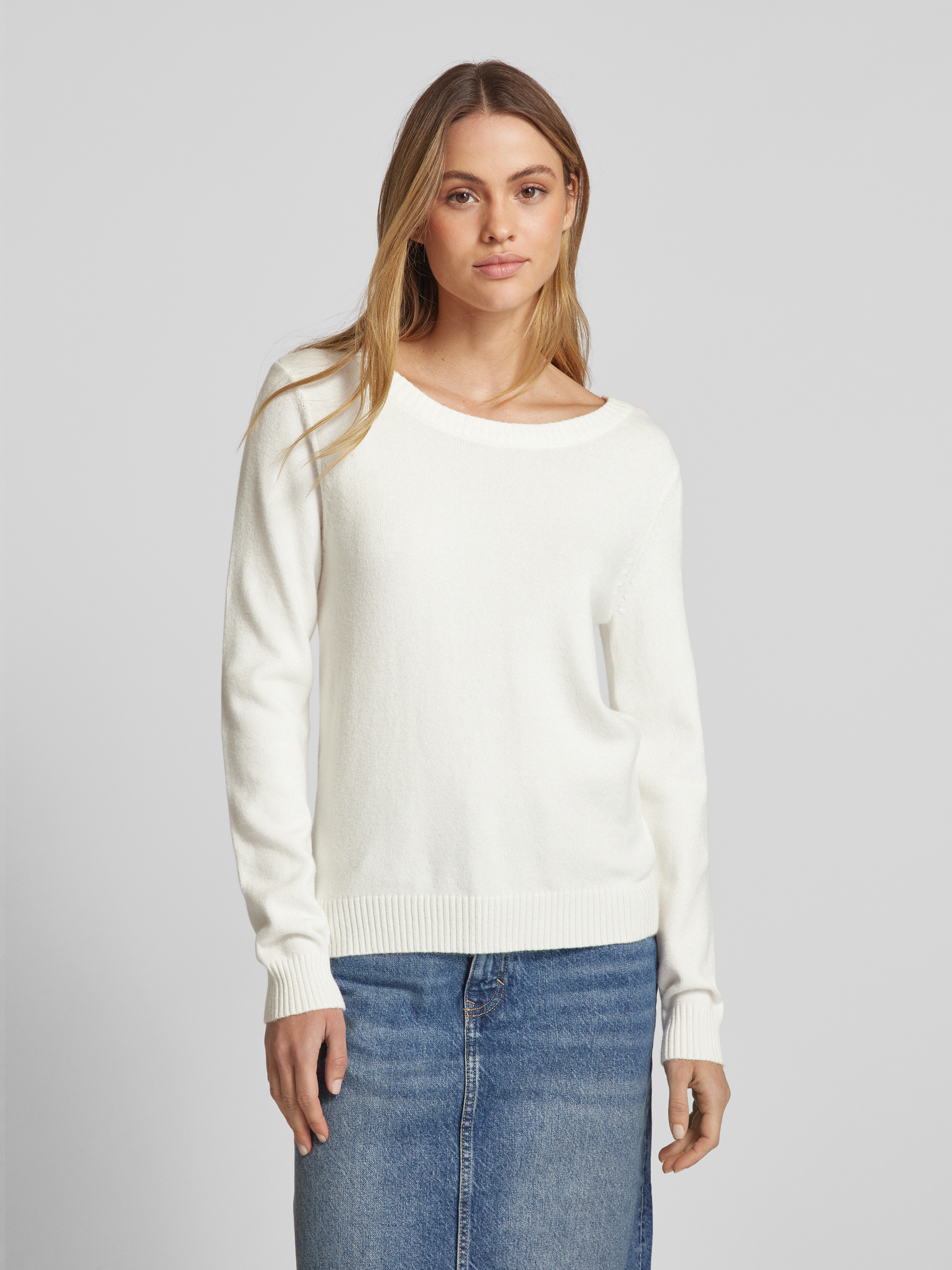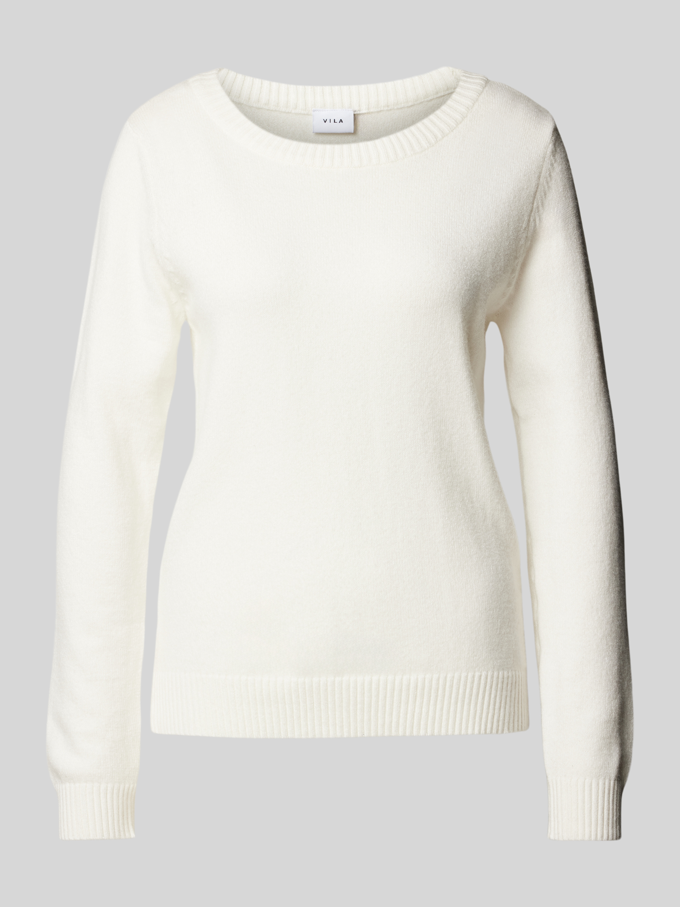 Sweter z dzianiny z okrągłym dekoltem model ‘Viril’ - złamany biały