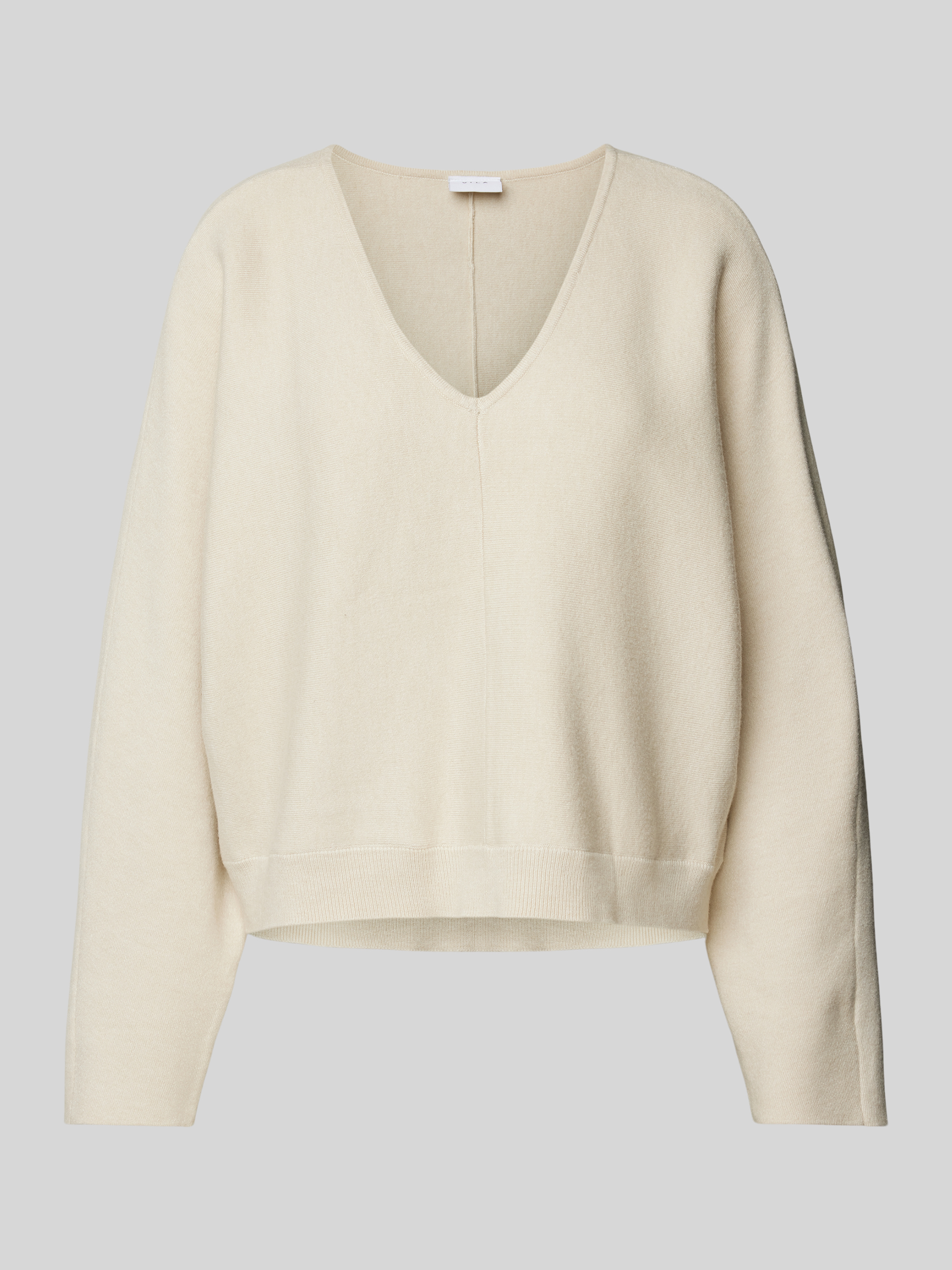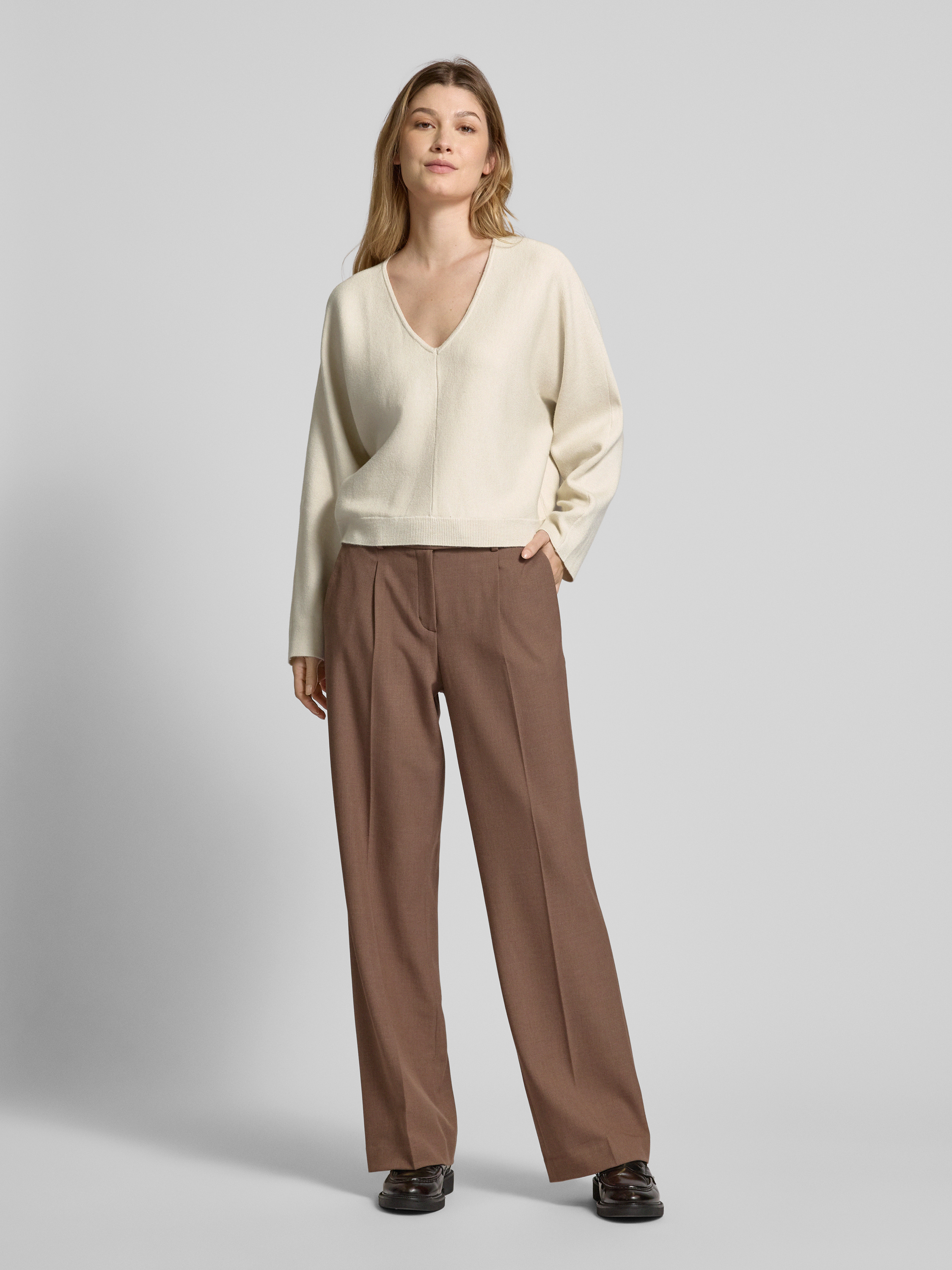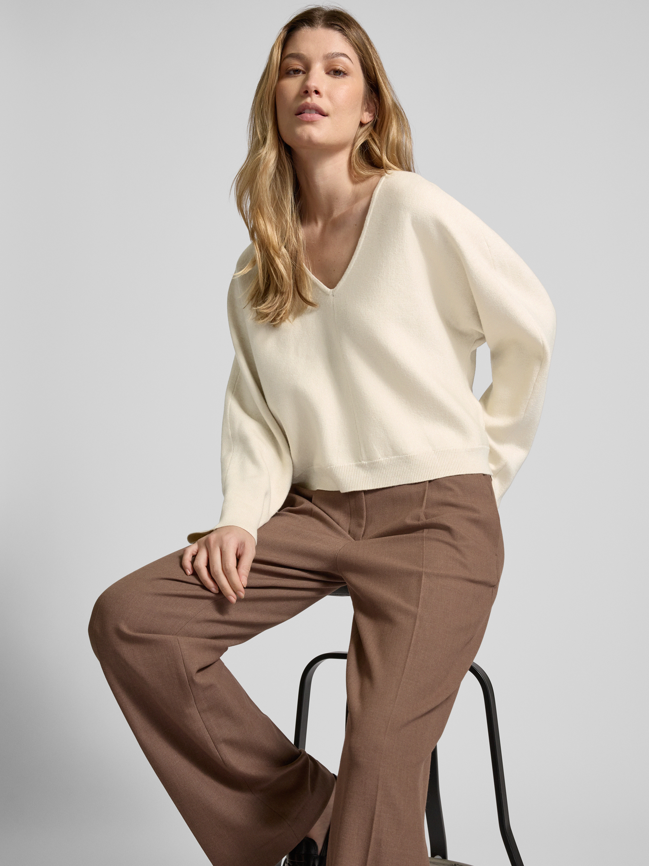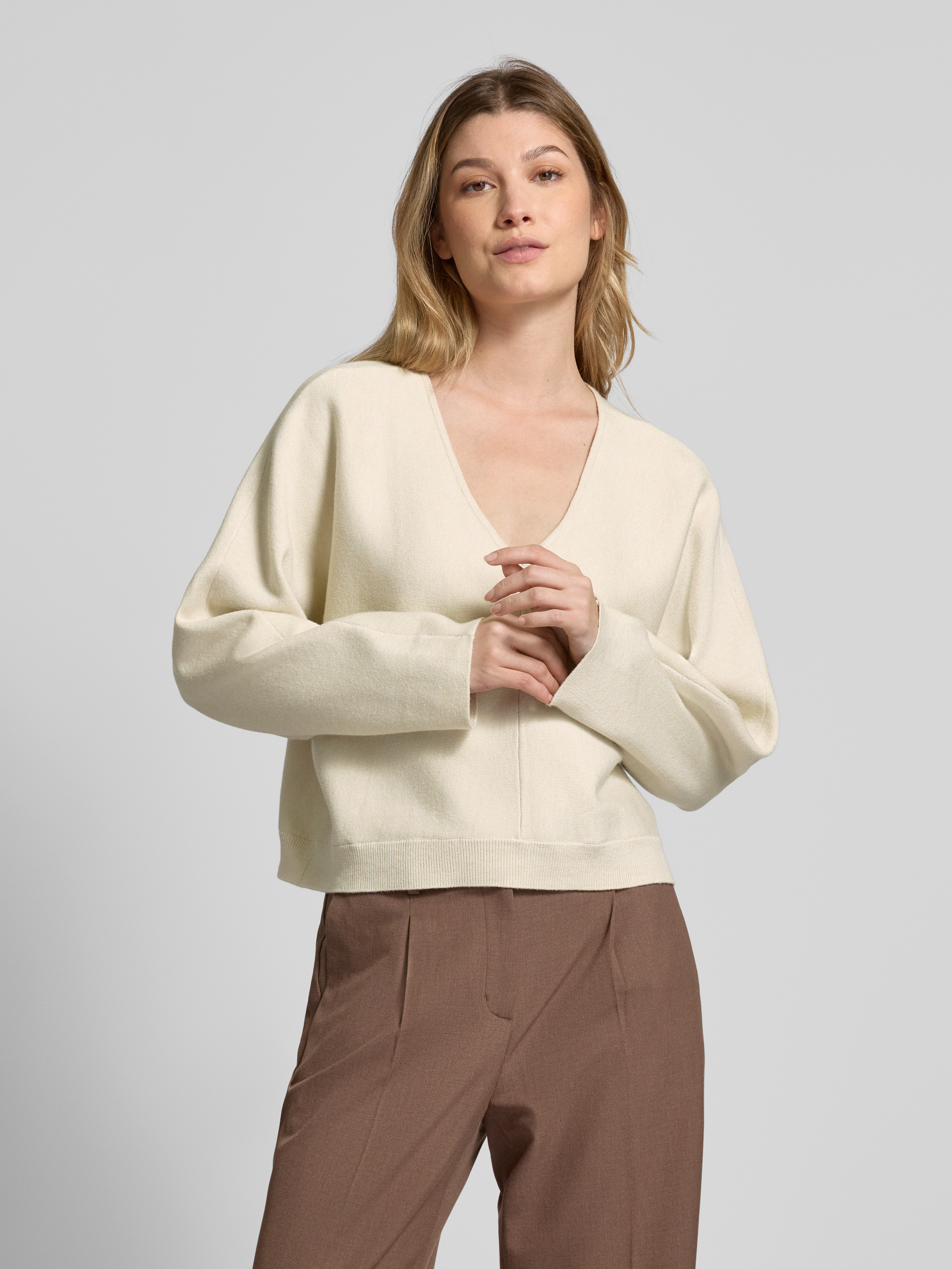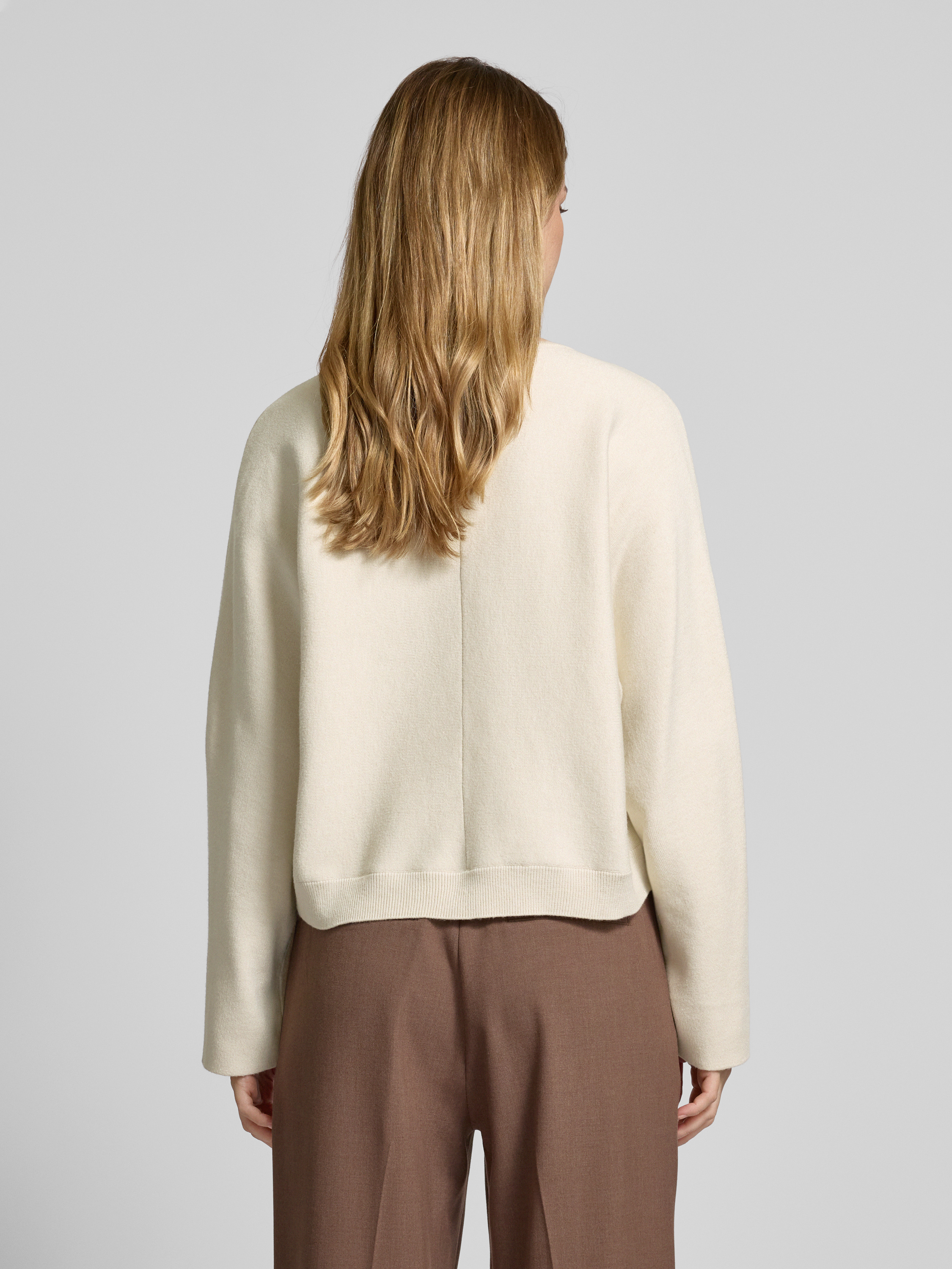 Sweter z dzianiny z prążkowanymi wykończeniami model ‘ADALIN’ - złamany biały