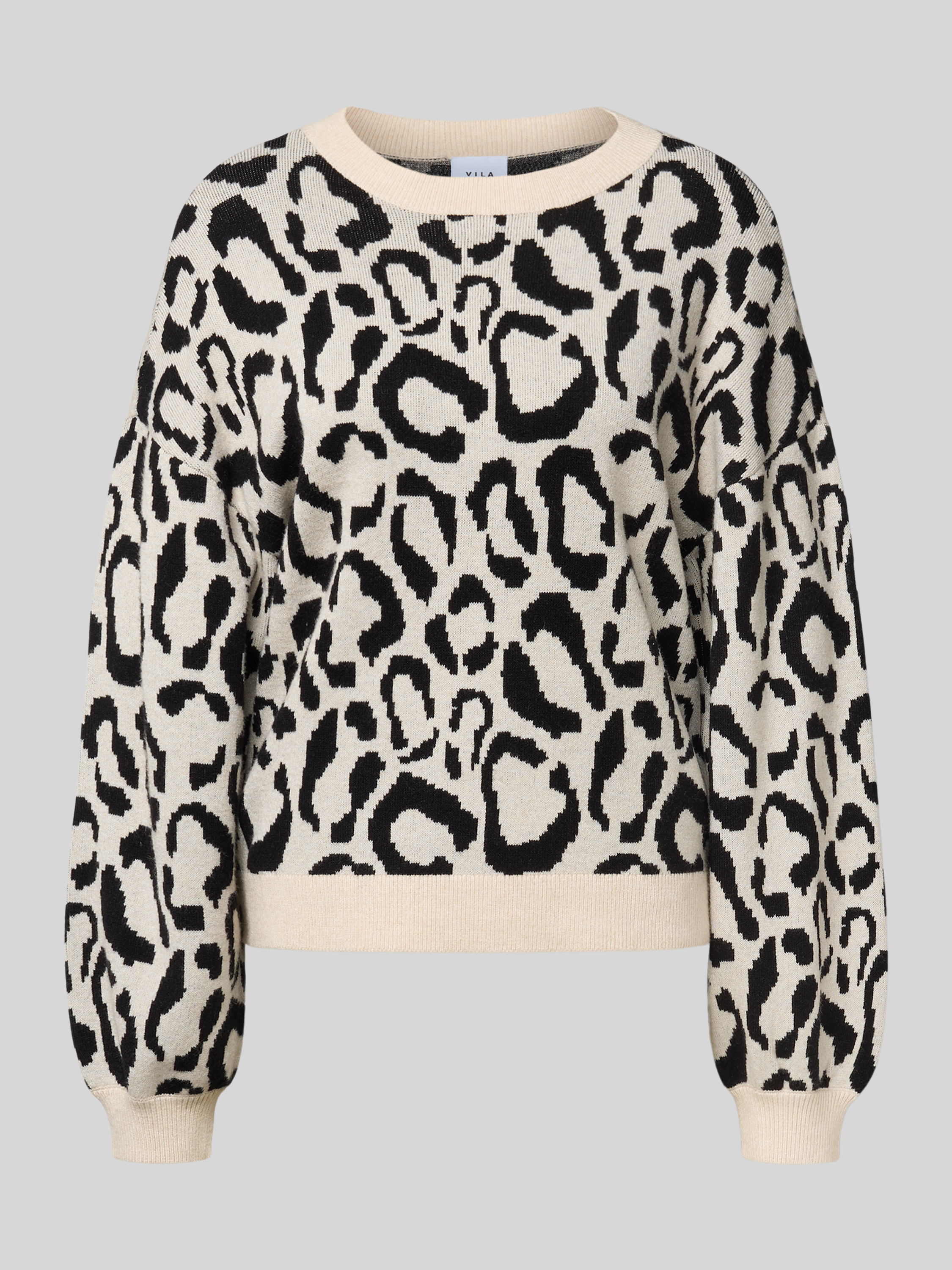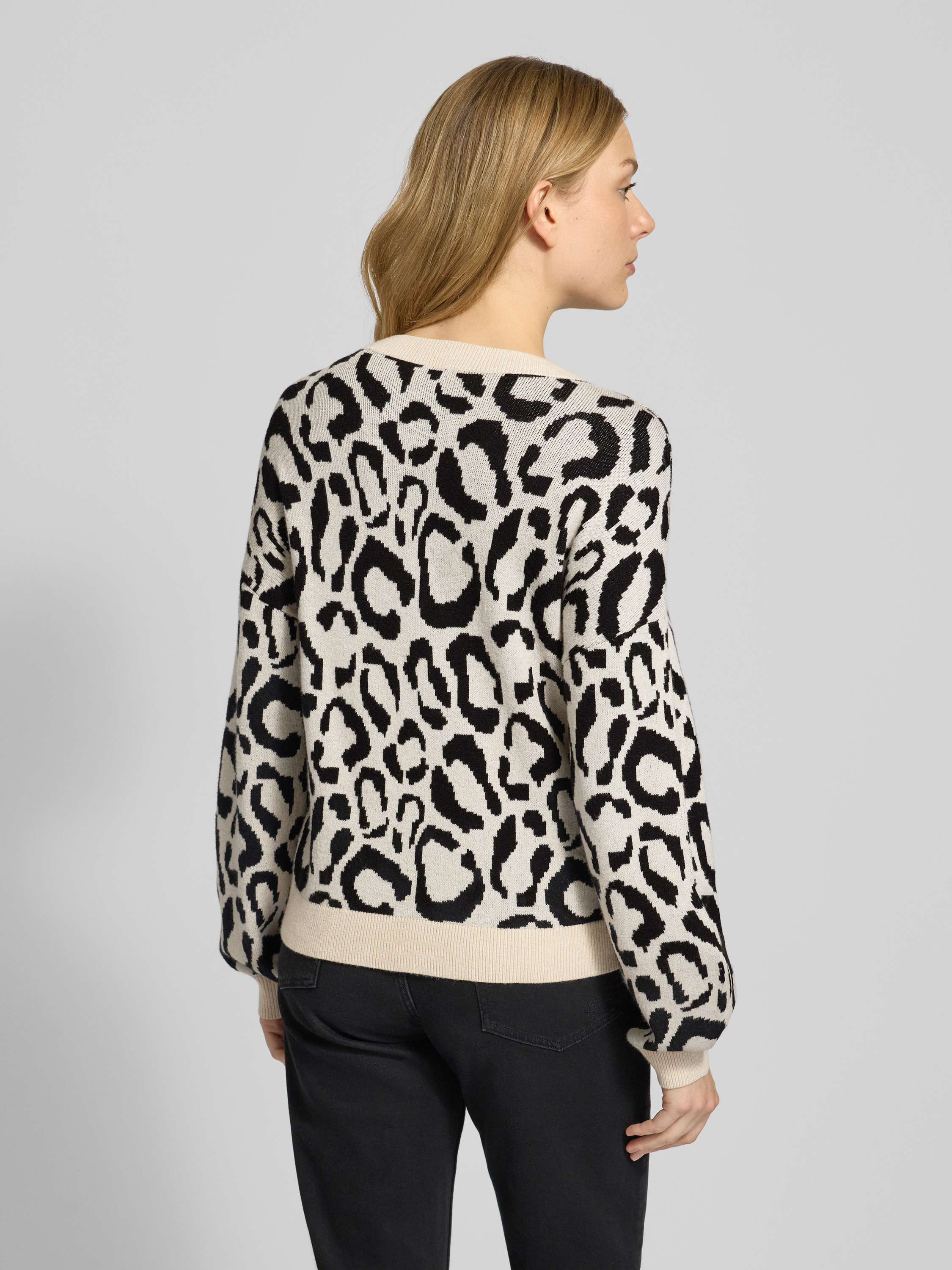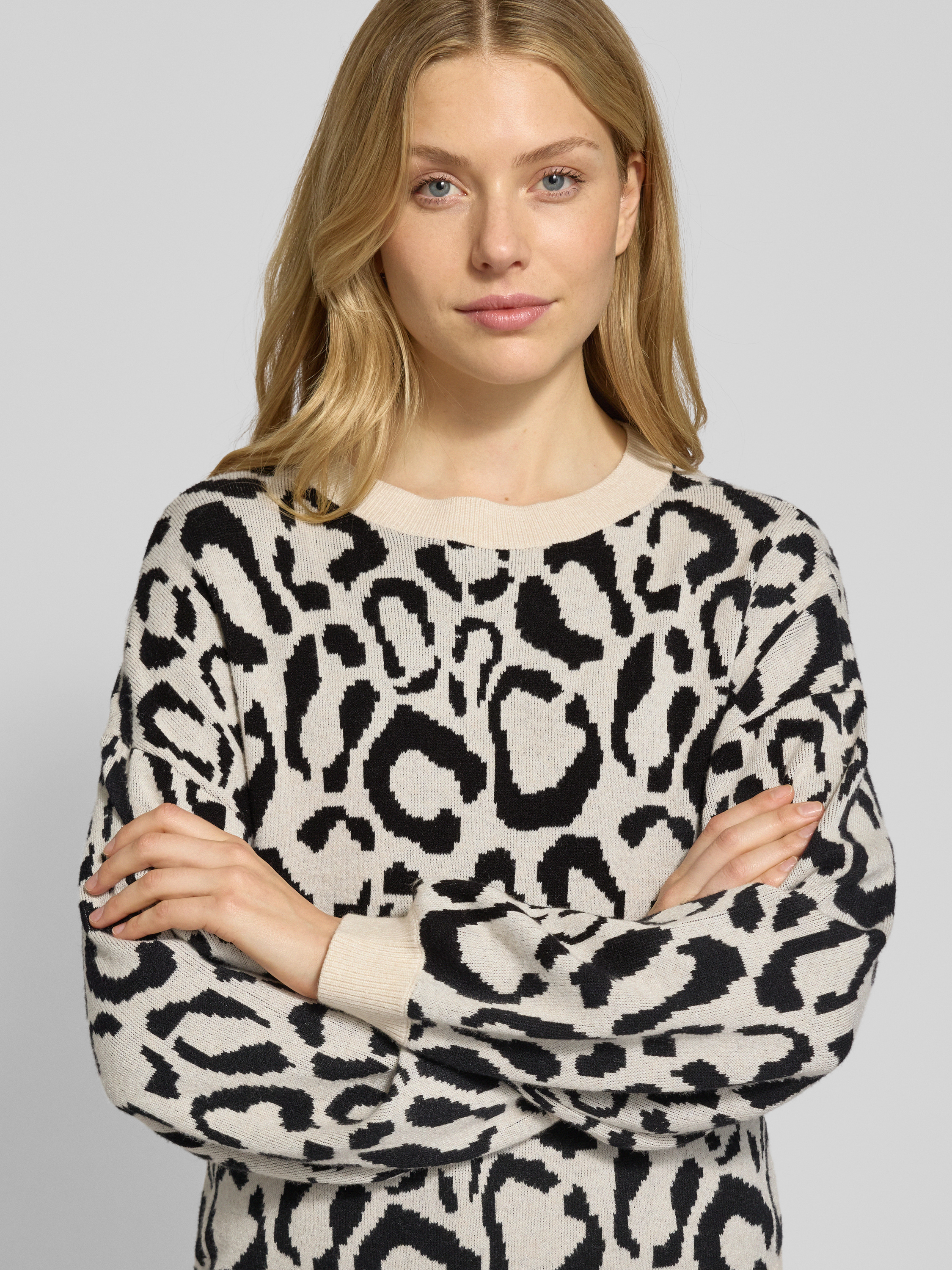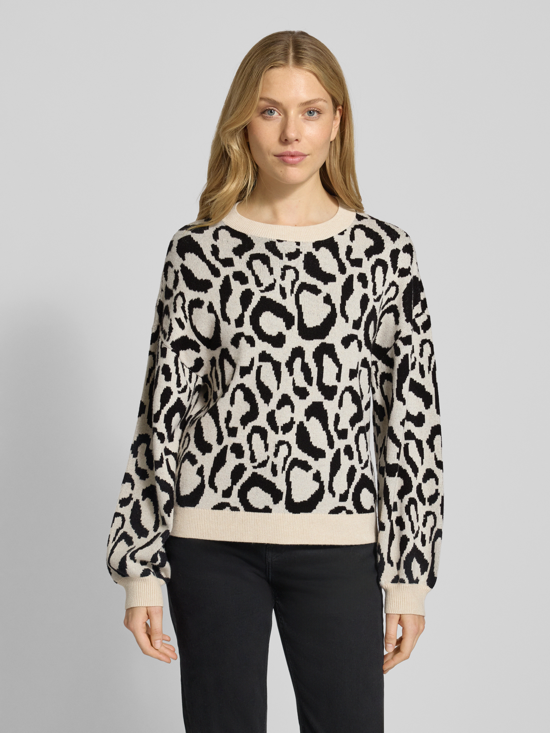 Sweter z dzianiny z prążkowanymi wykończeniami model ‘TIP’ - beżowy