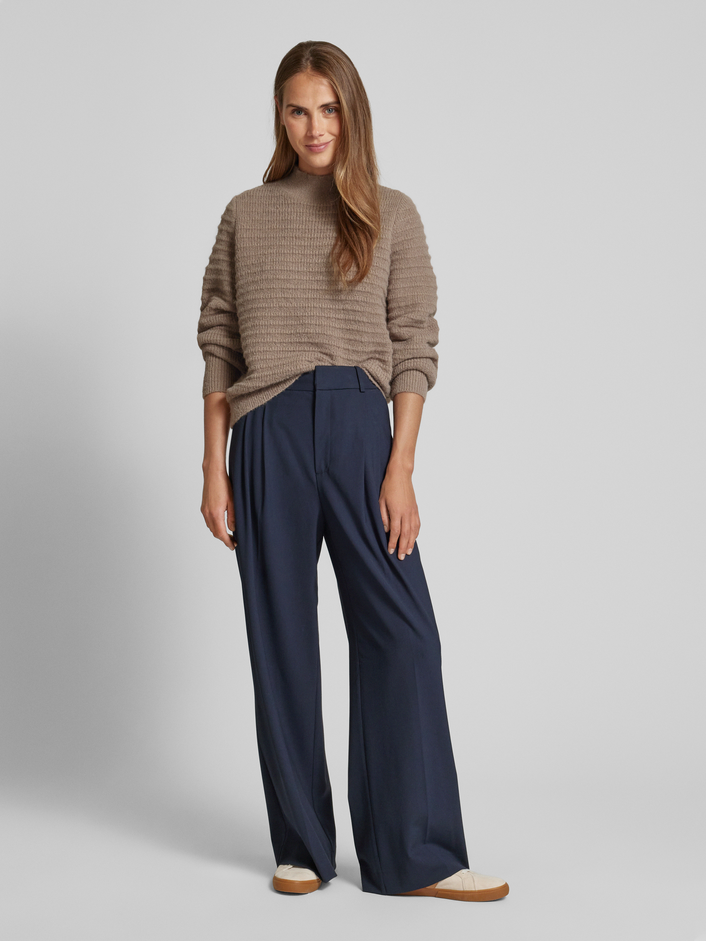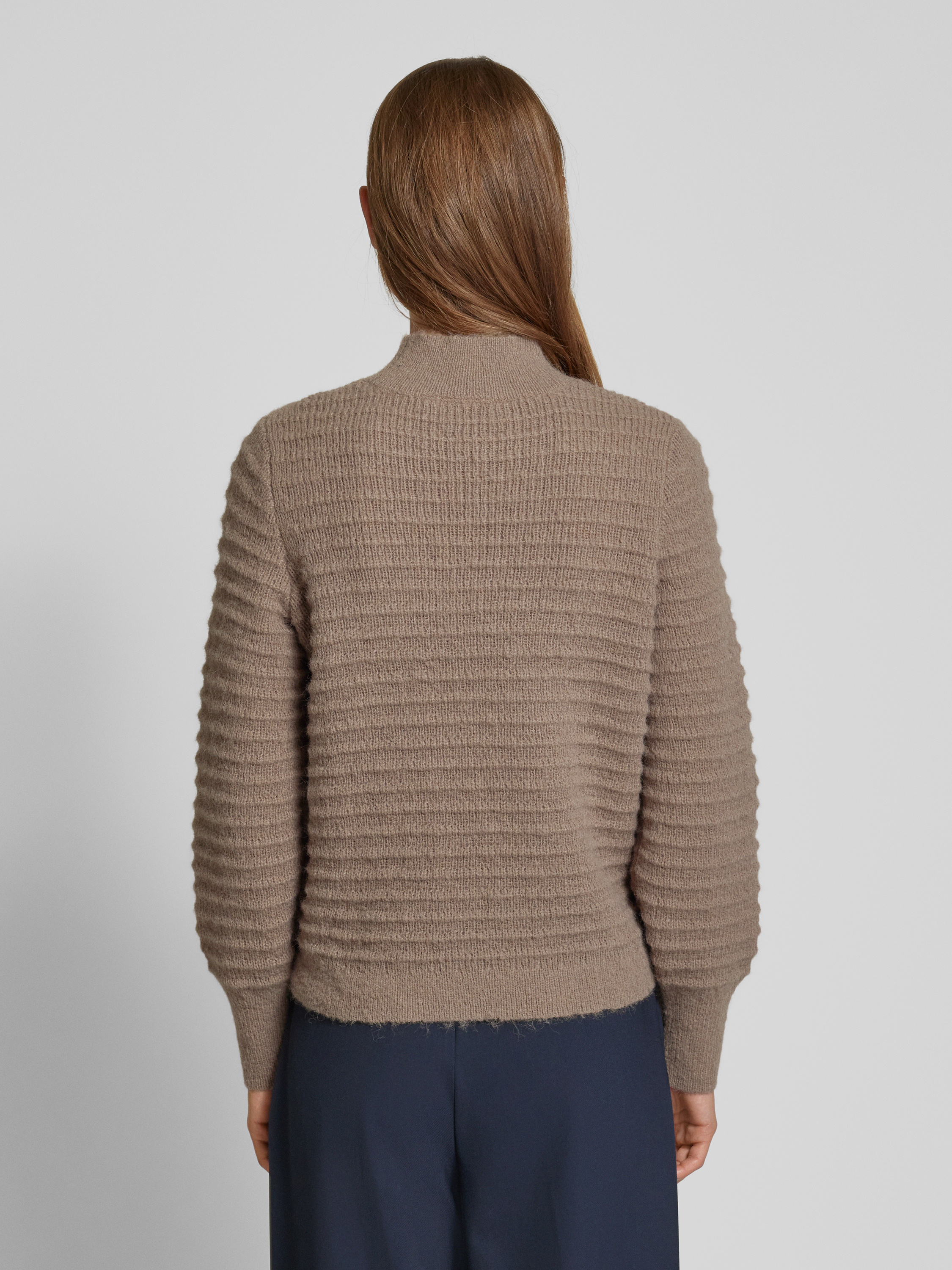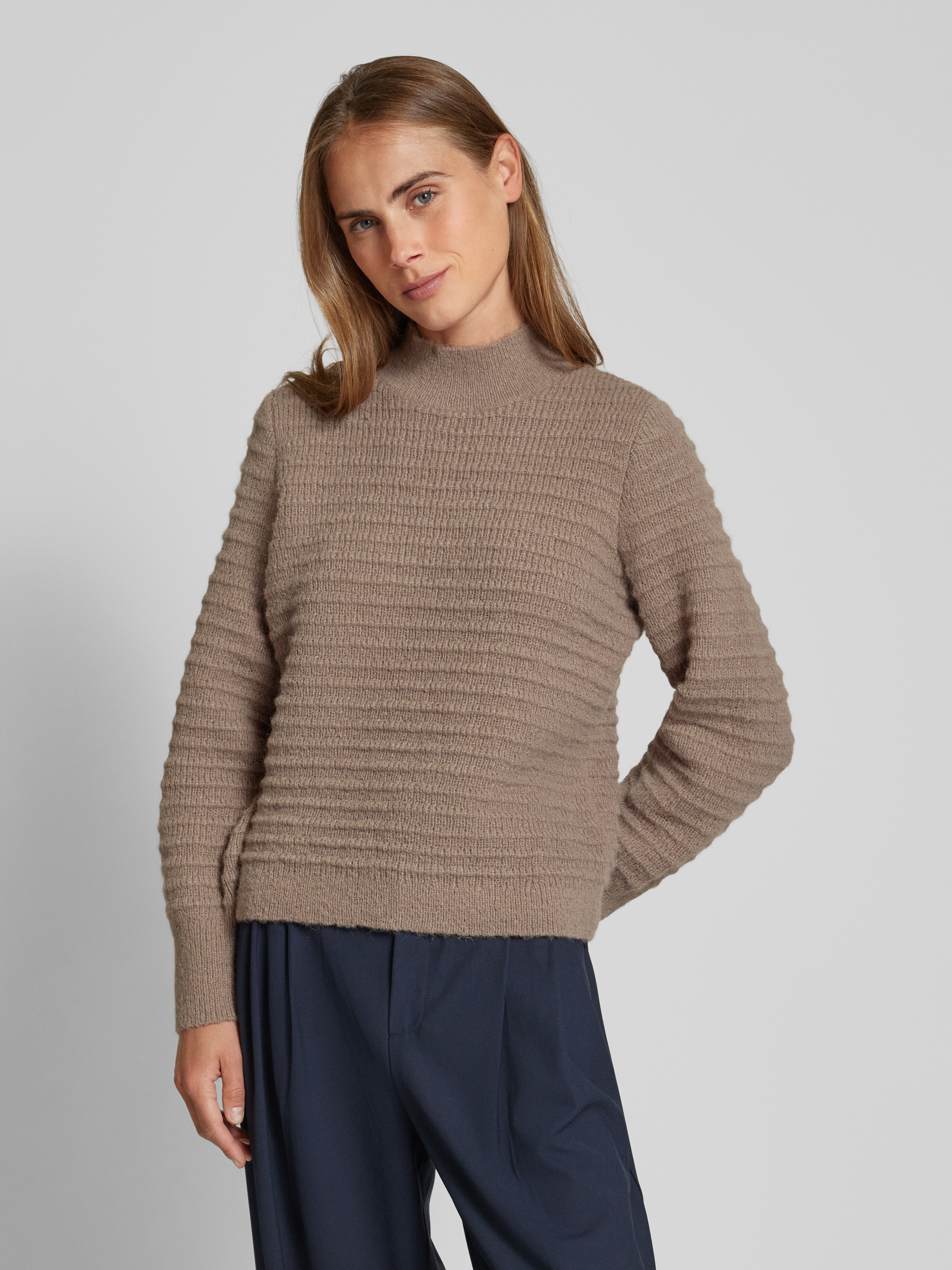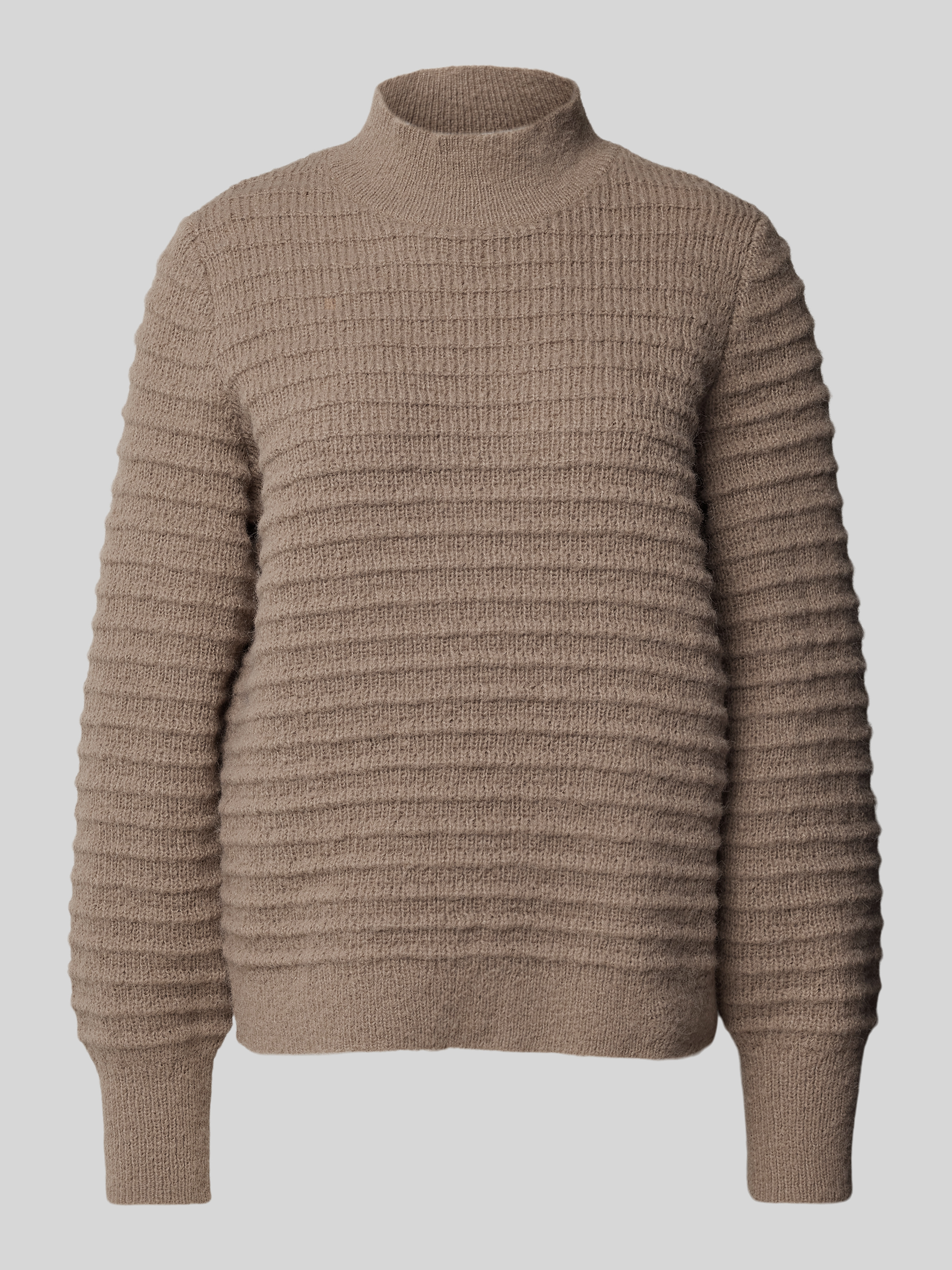 Sweter z dzianiny ze stójką model ‘TERRA’ - szarobrązowy