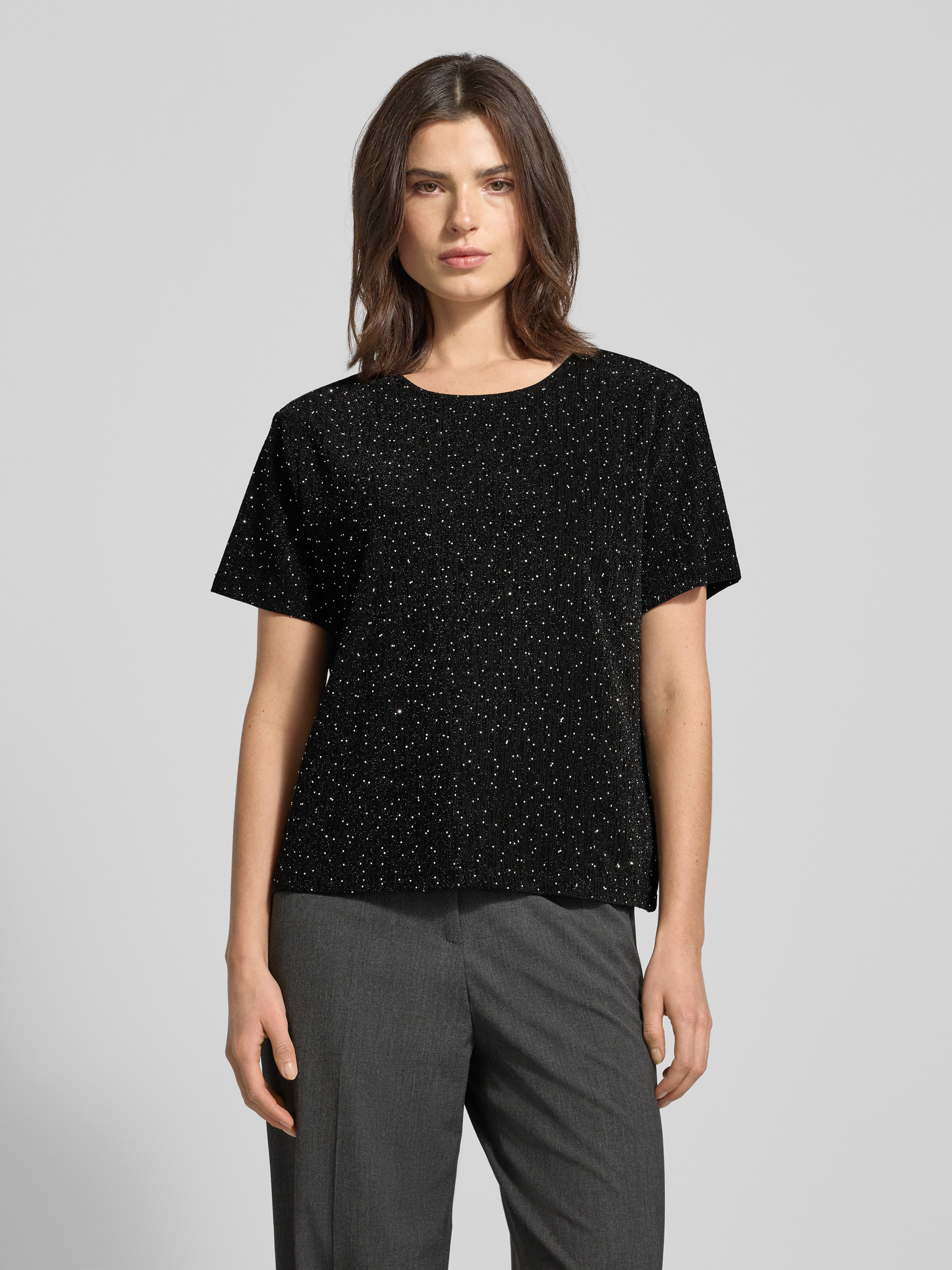 T-shirt krótki z okrągłym dekoltem model ‘SILNA’ - czarny