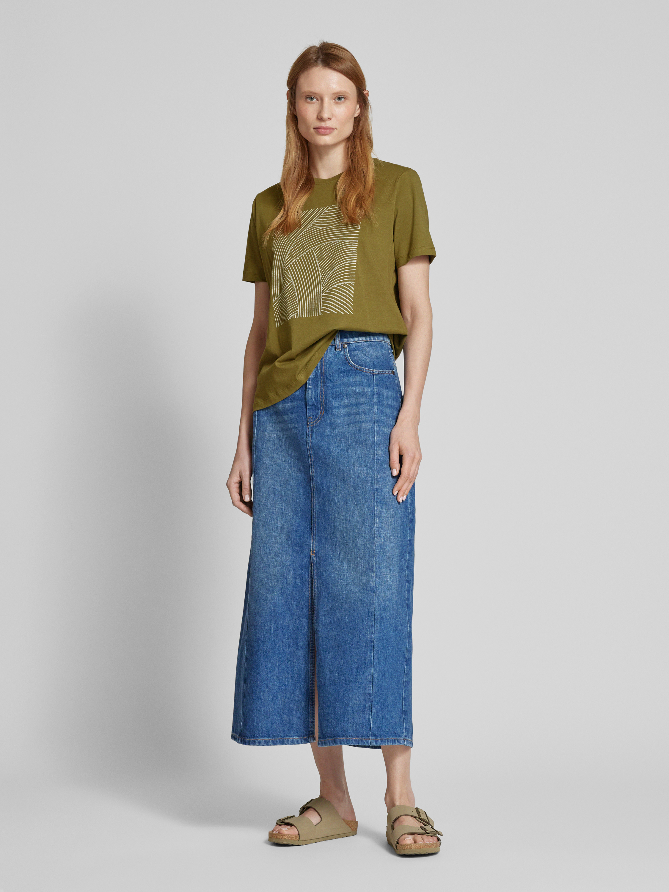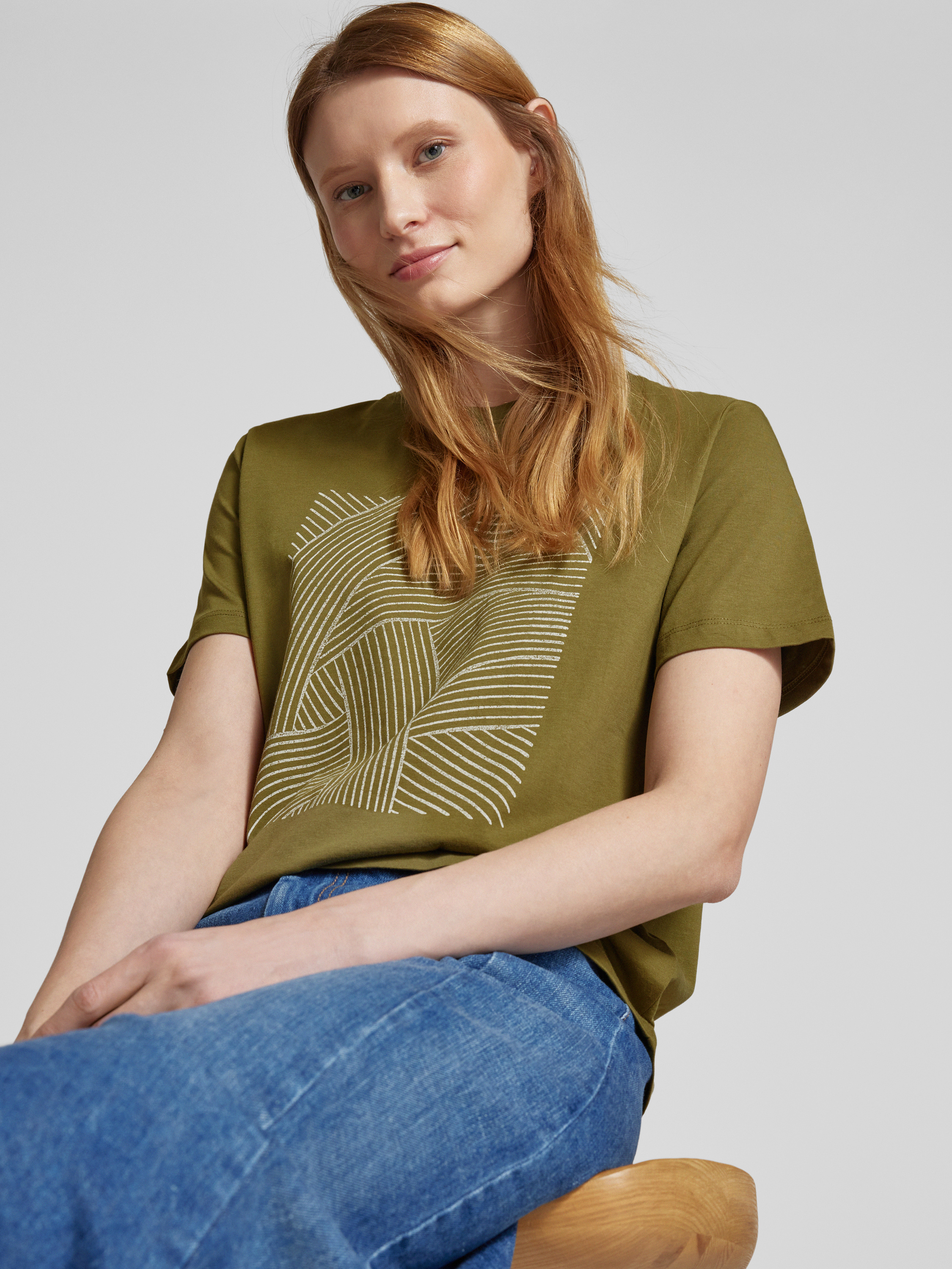 T-shirt z nadrukowanym motywem model ‘SYBIL’ - oliwkowy