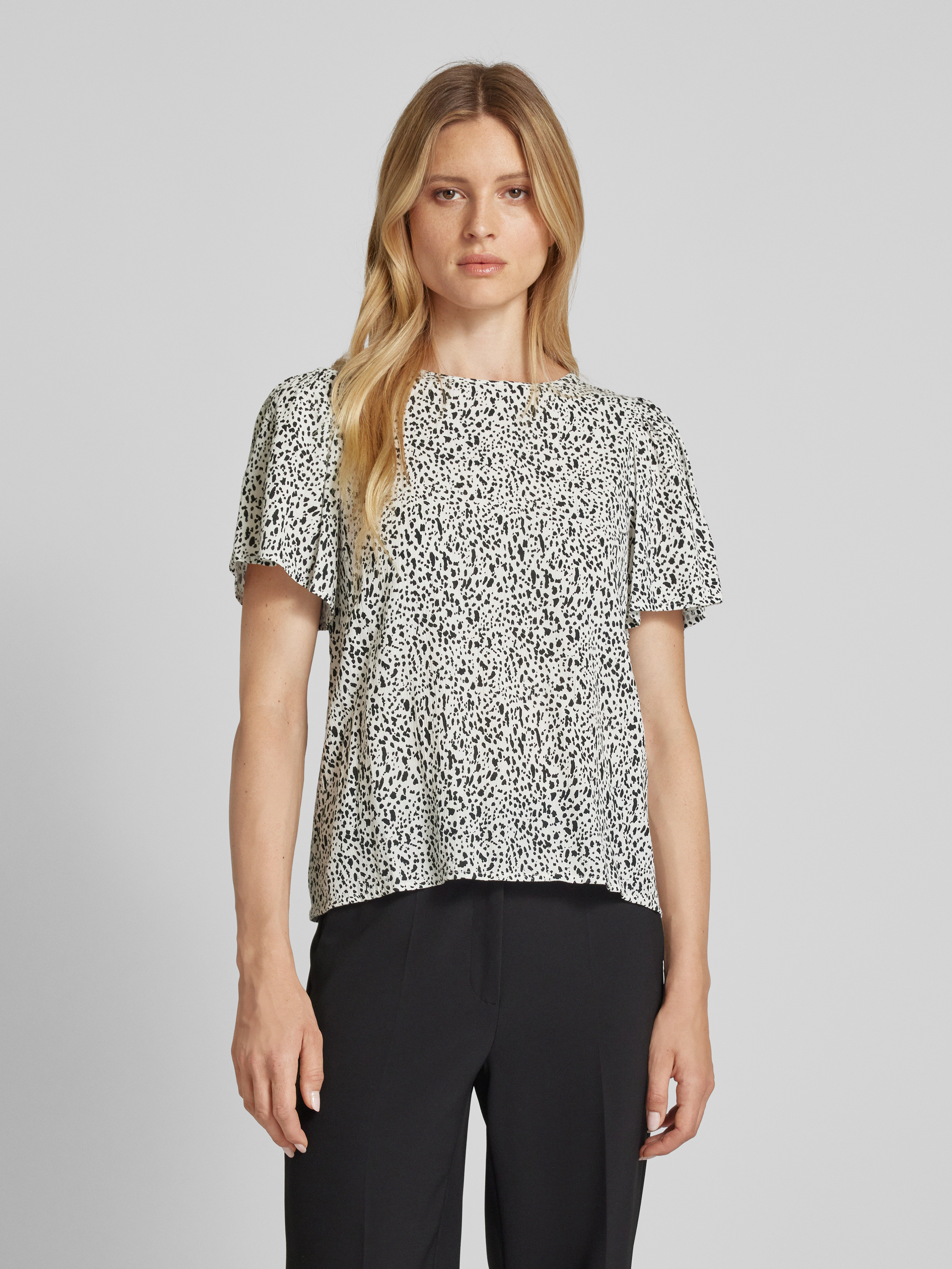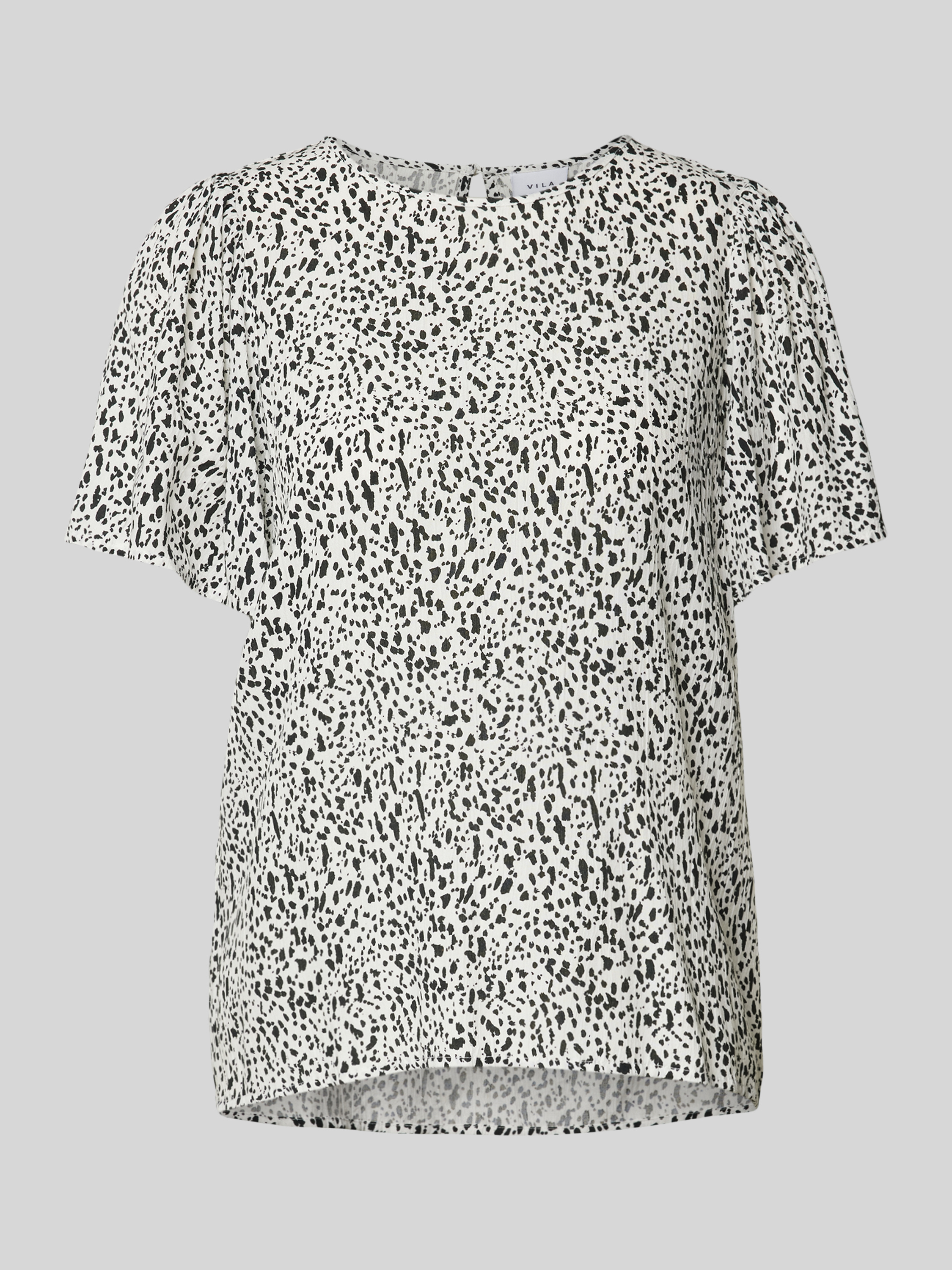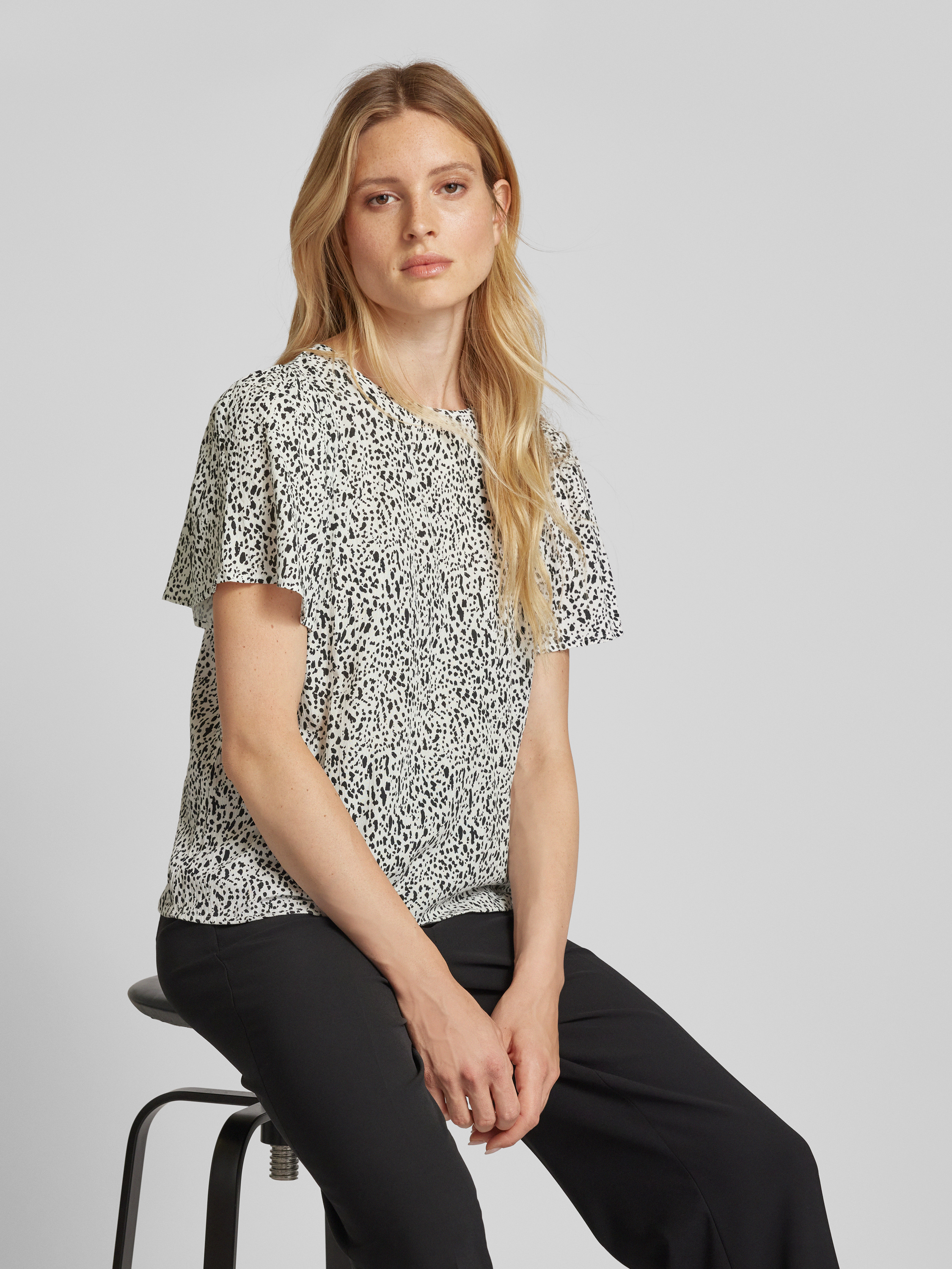 T-shirt z wiskozy okrągłym dekoltem model ‘KAYA’ - złamany biały