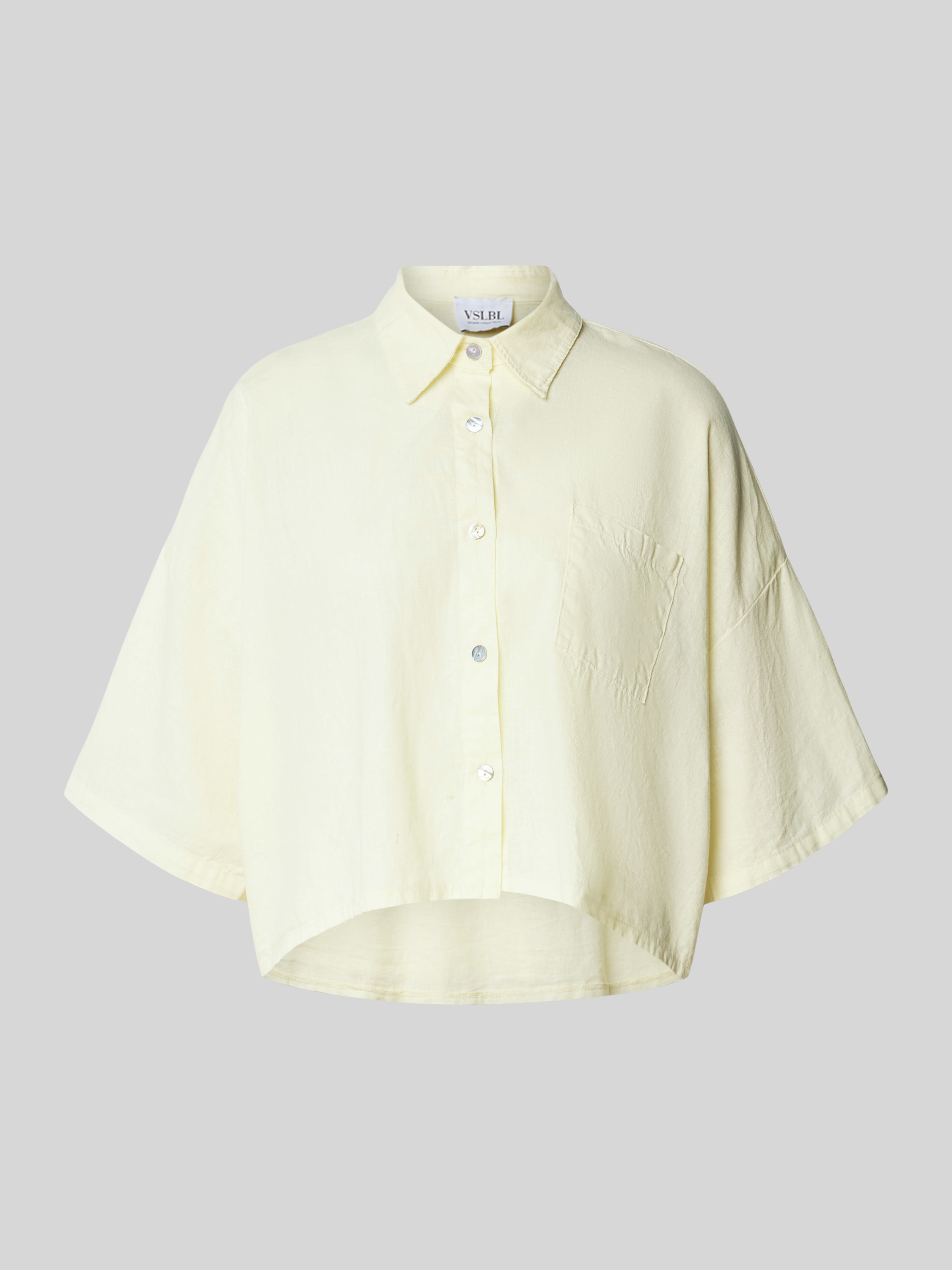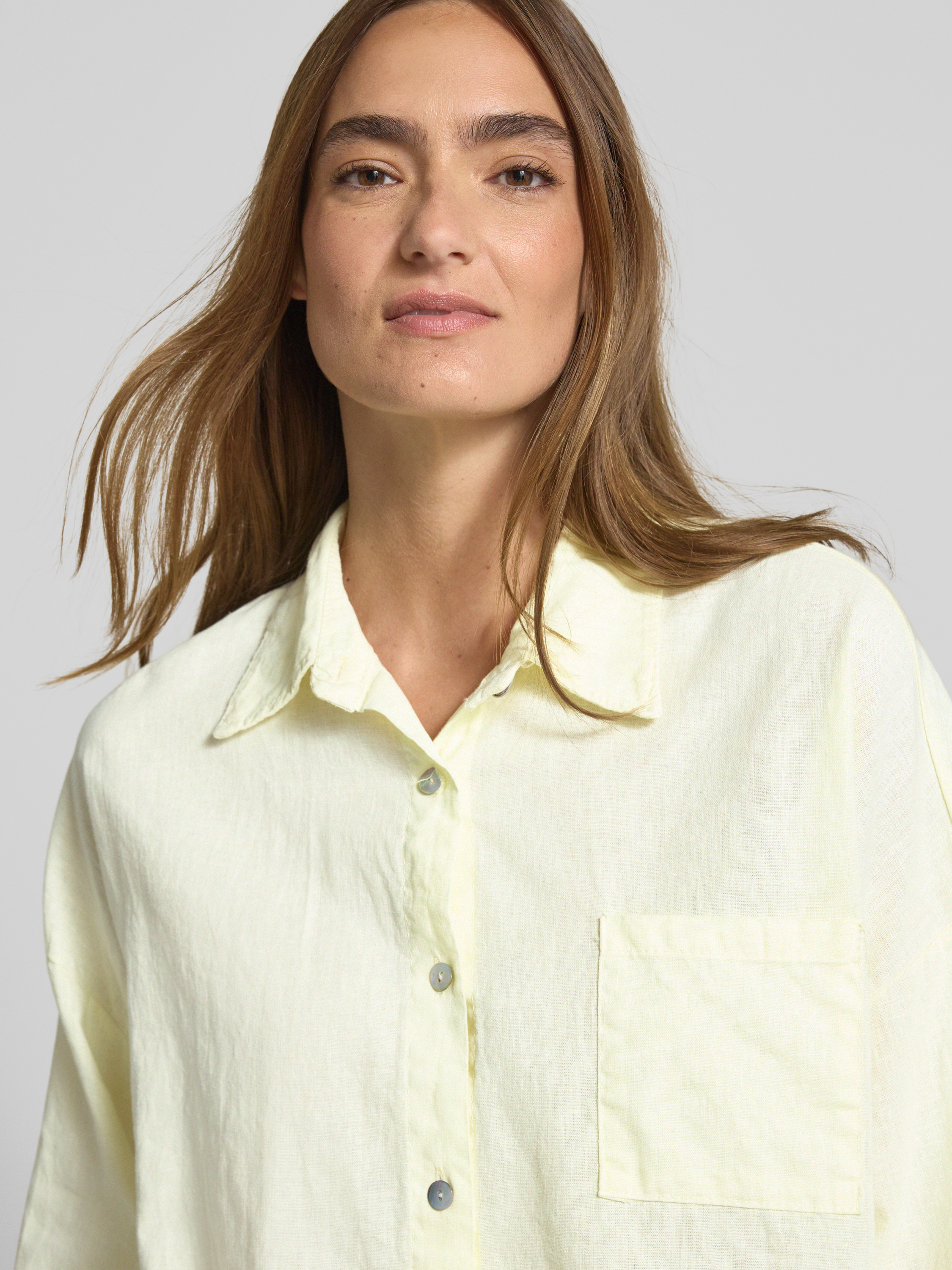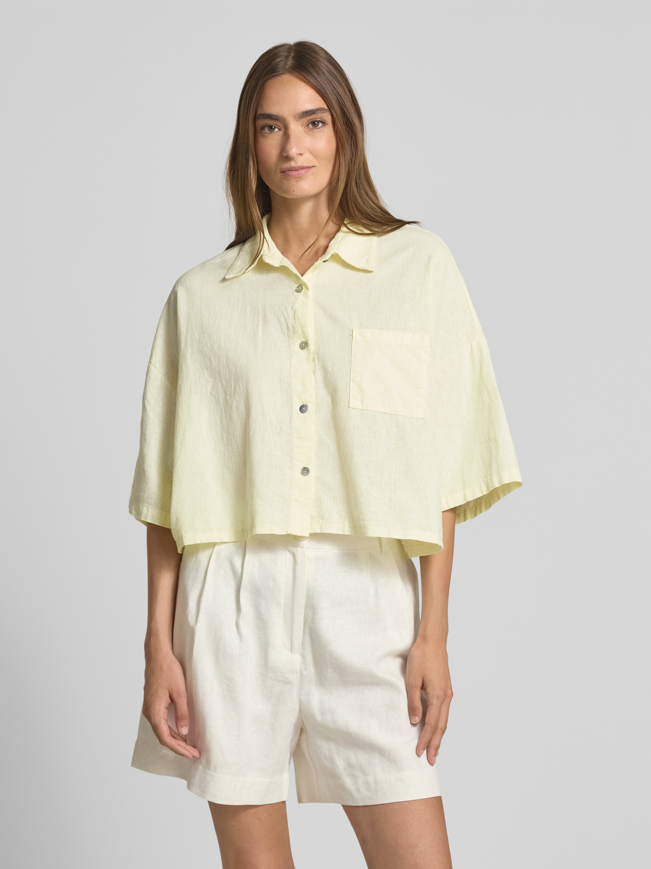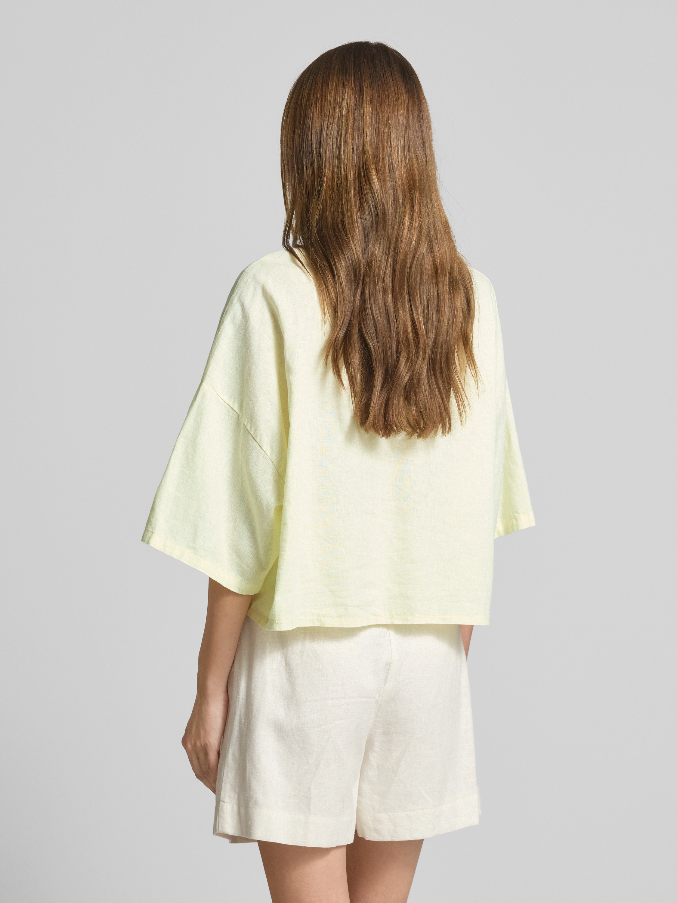 Bluzka krótka z mieszanki lnu i bawełny model ‘Quinn’ - jasnożółty
