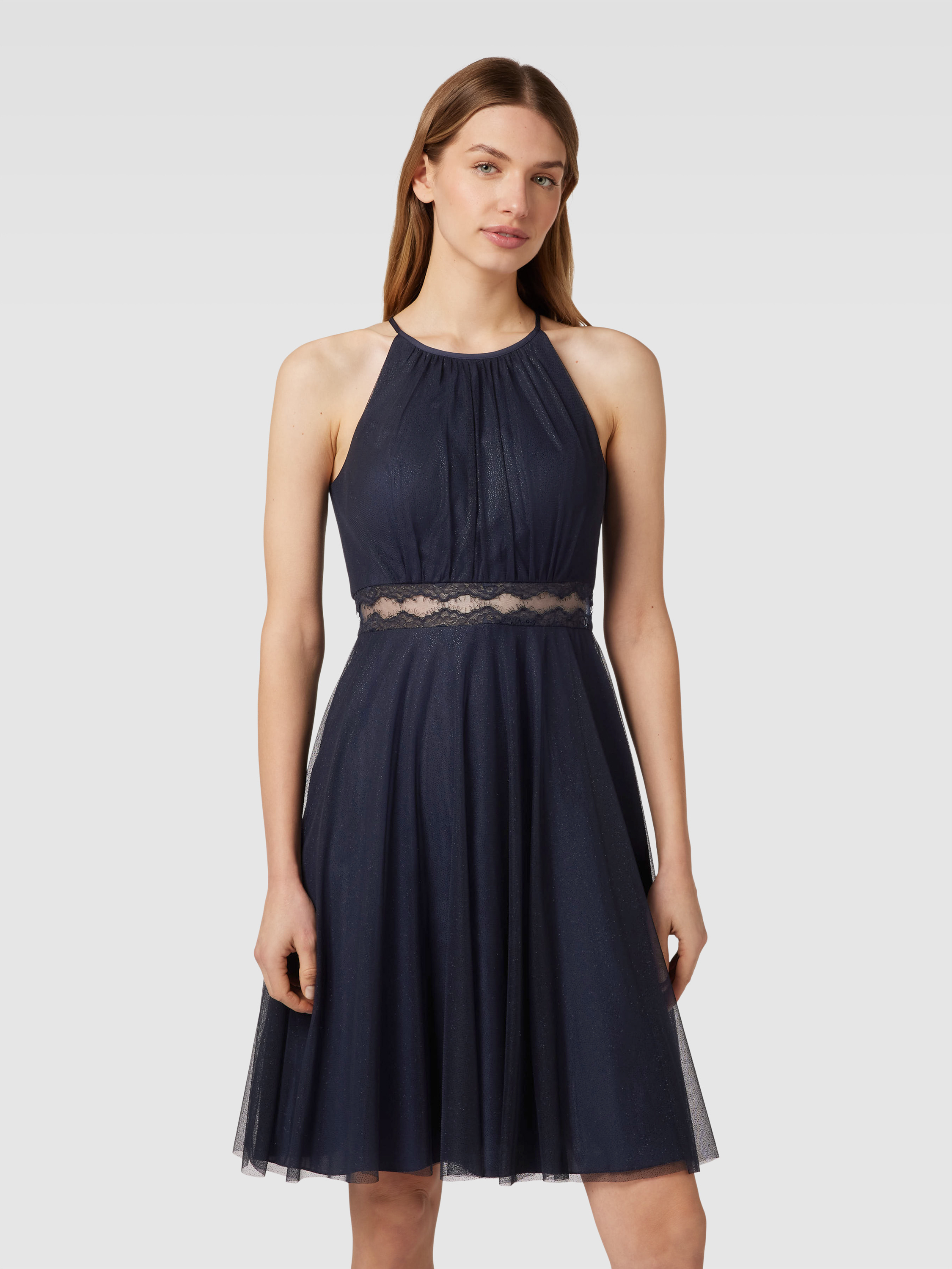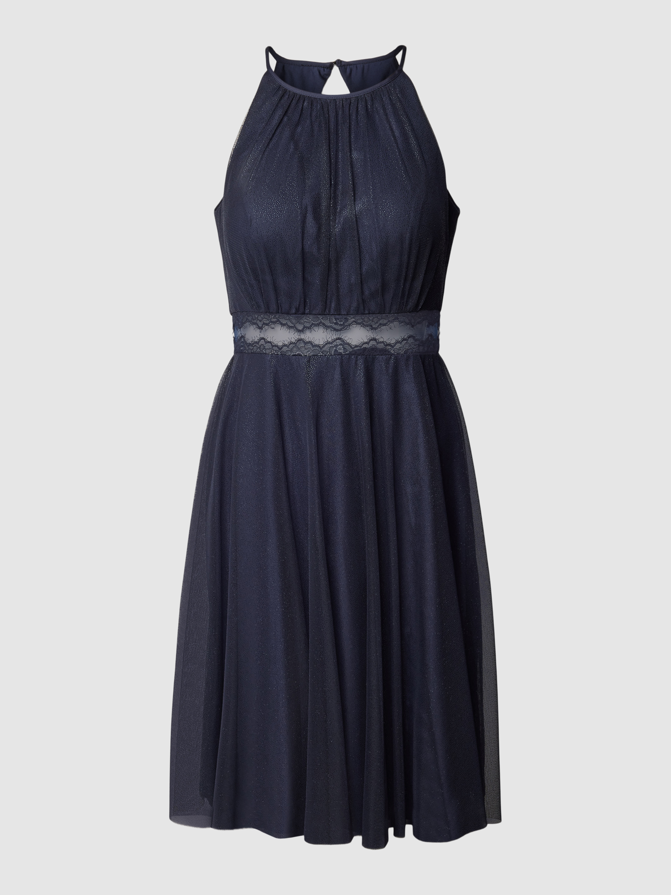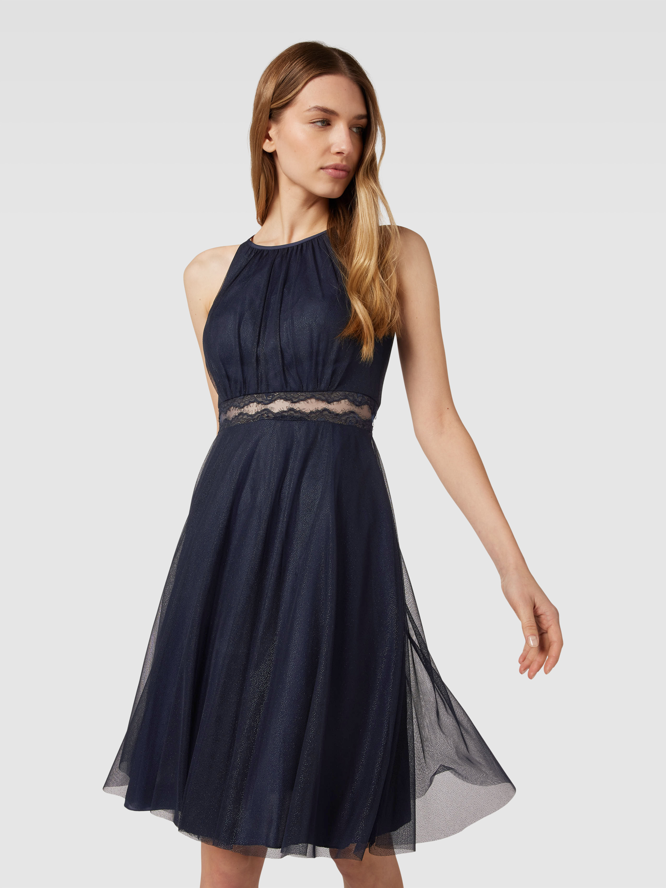 Sukienka koktajlowa o długości do kolan z amerykańskim dekoltem - ciemnoniebieski