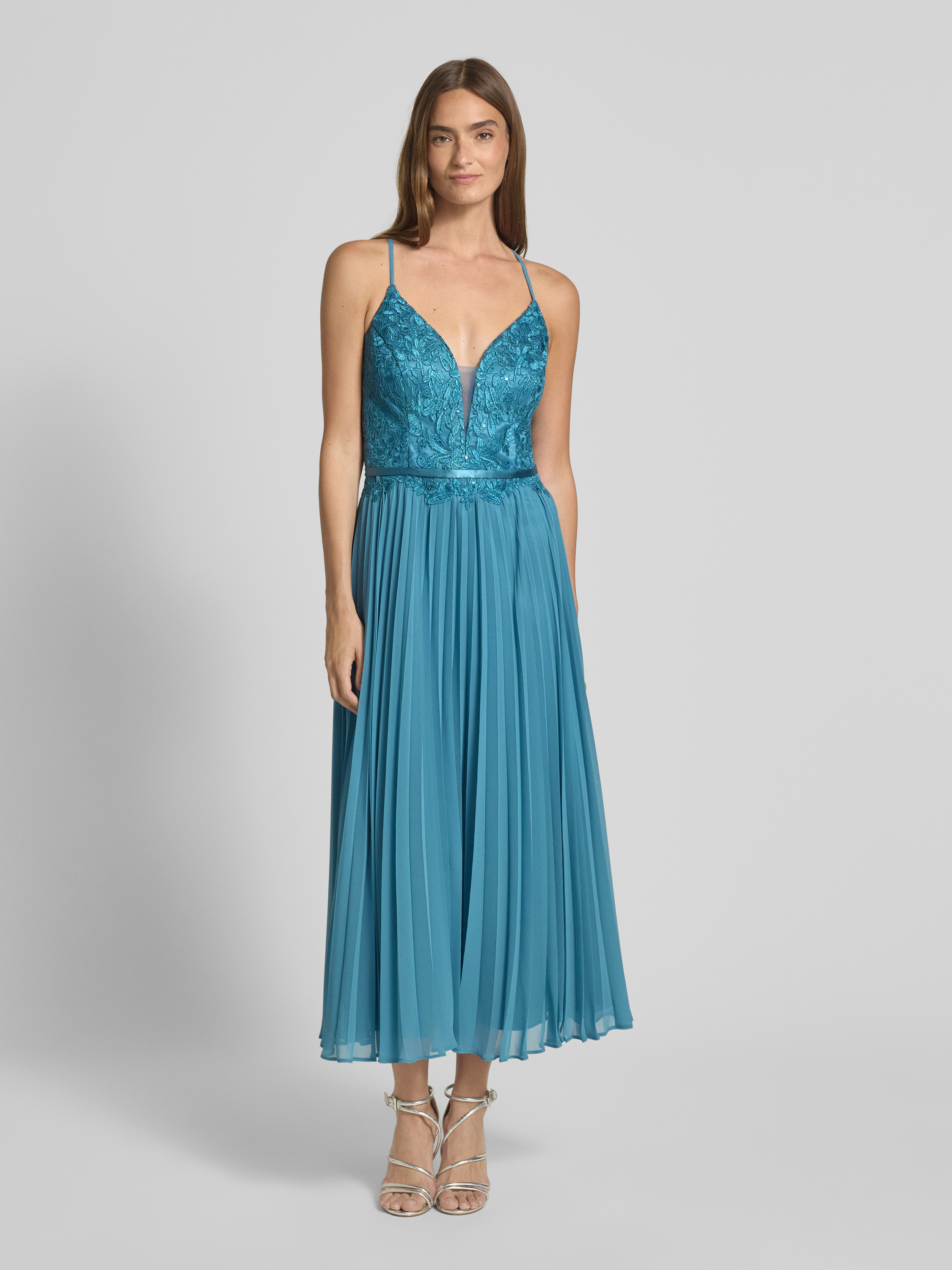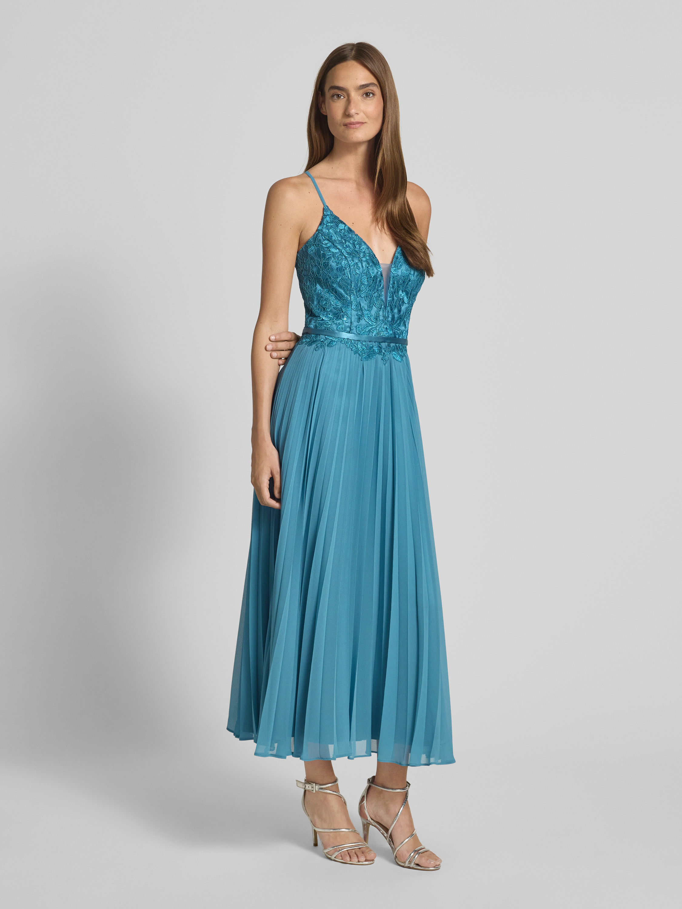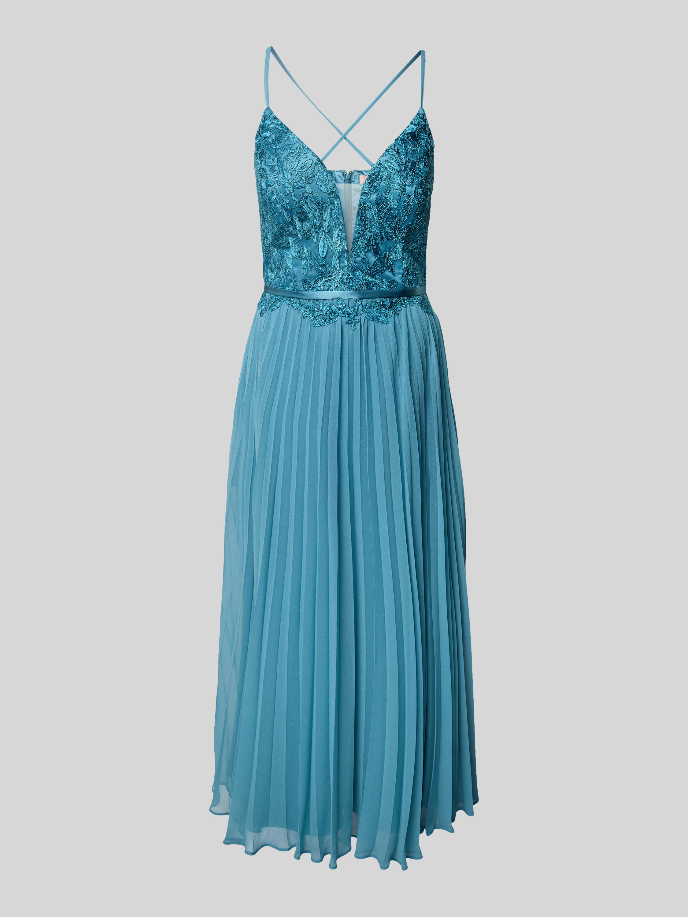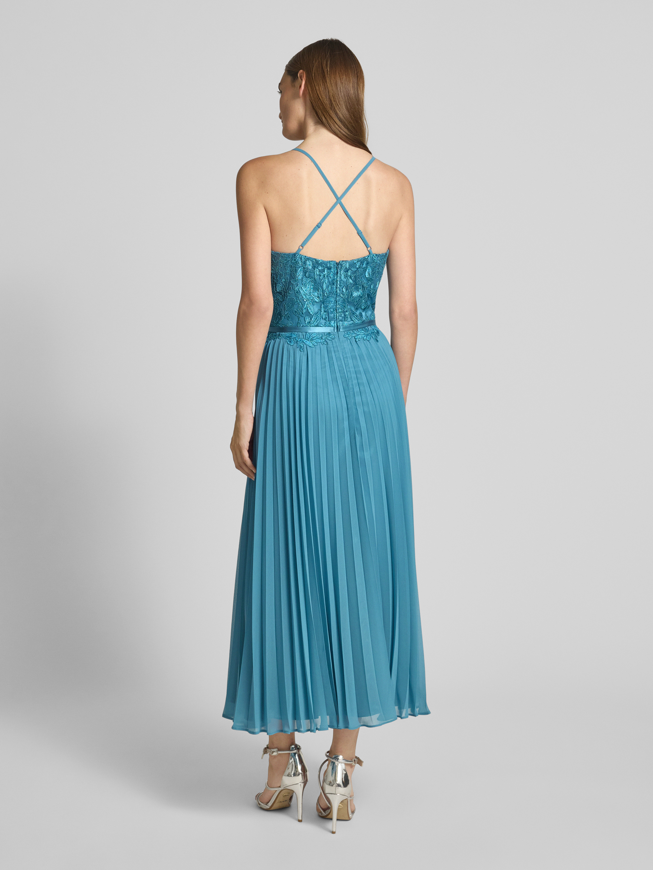 Sukienka koktajlowa z obszyciem koronką i plisami - jasnoniebieski