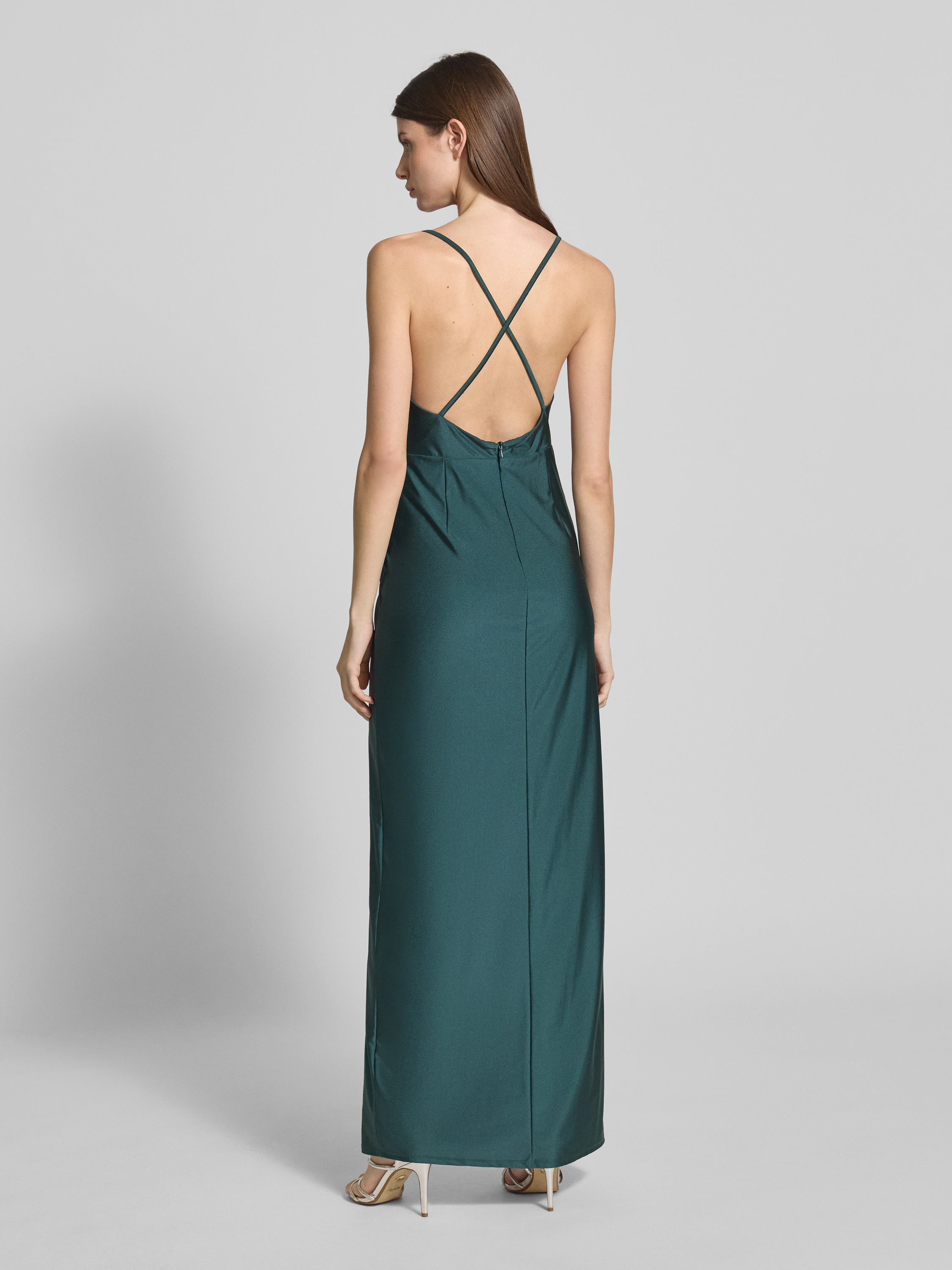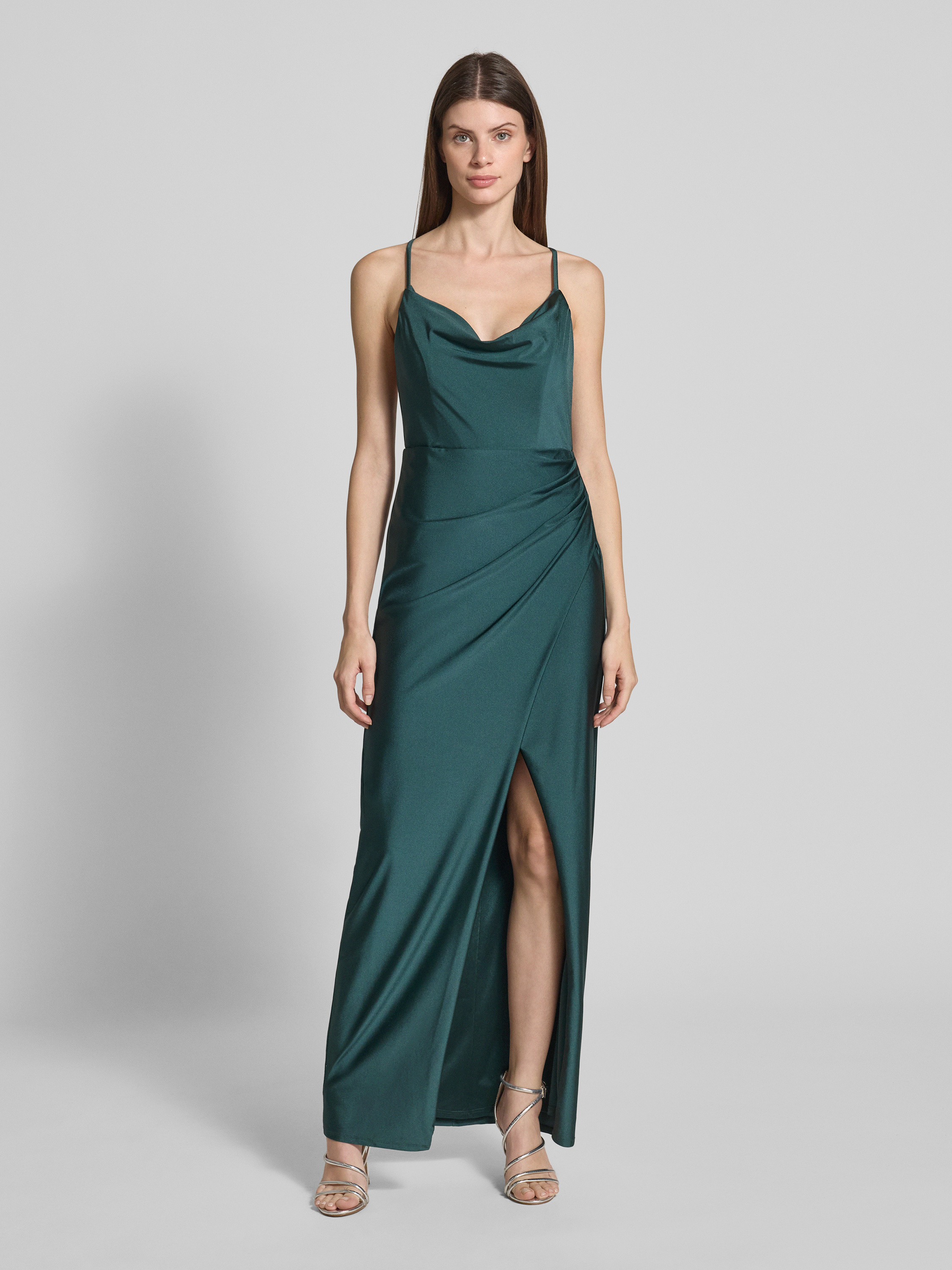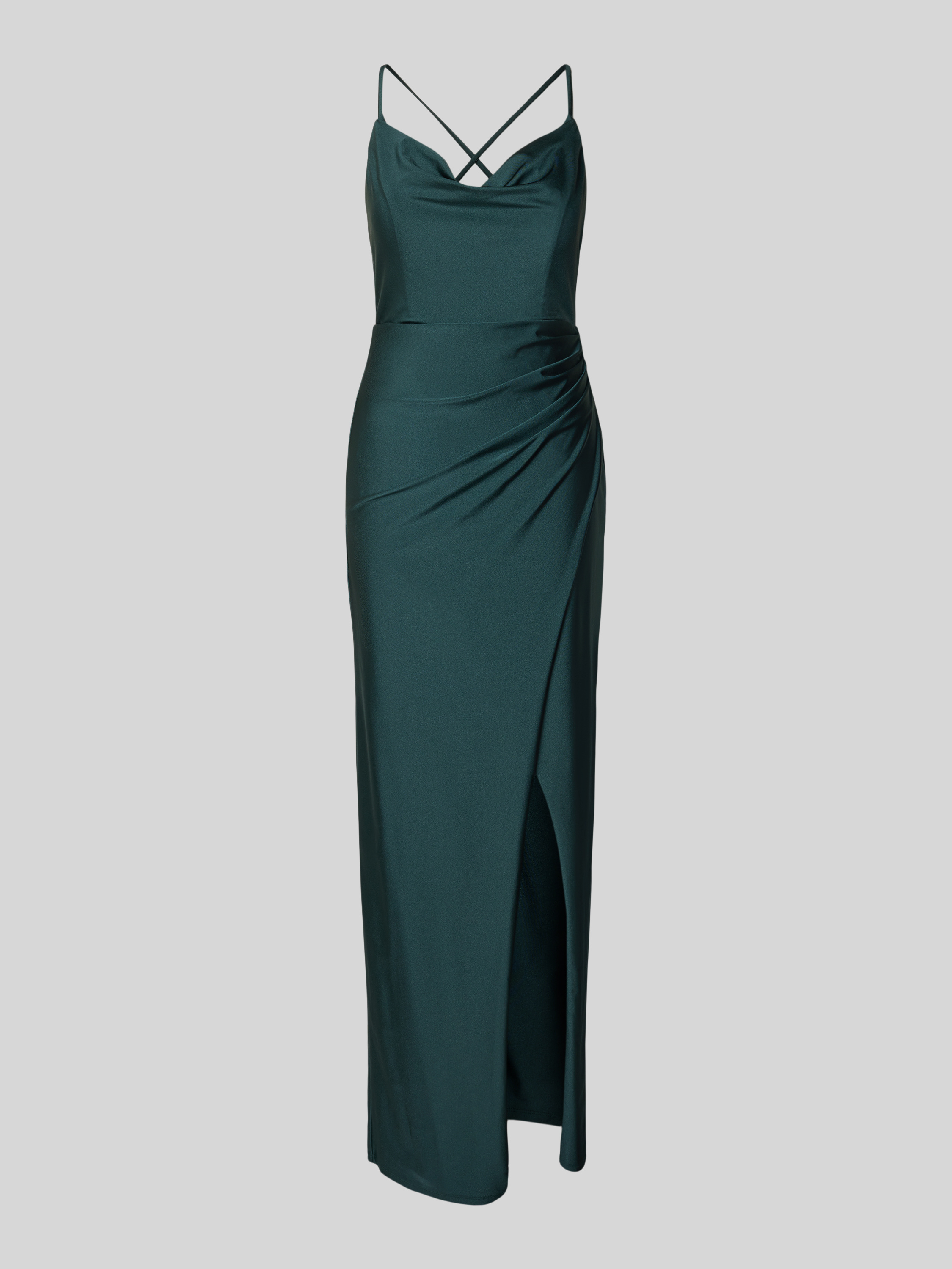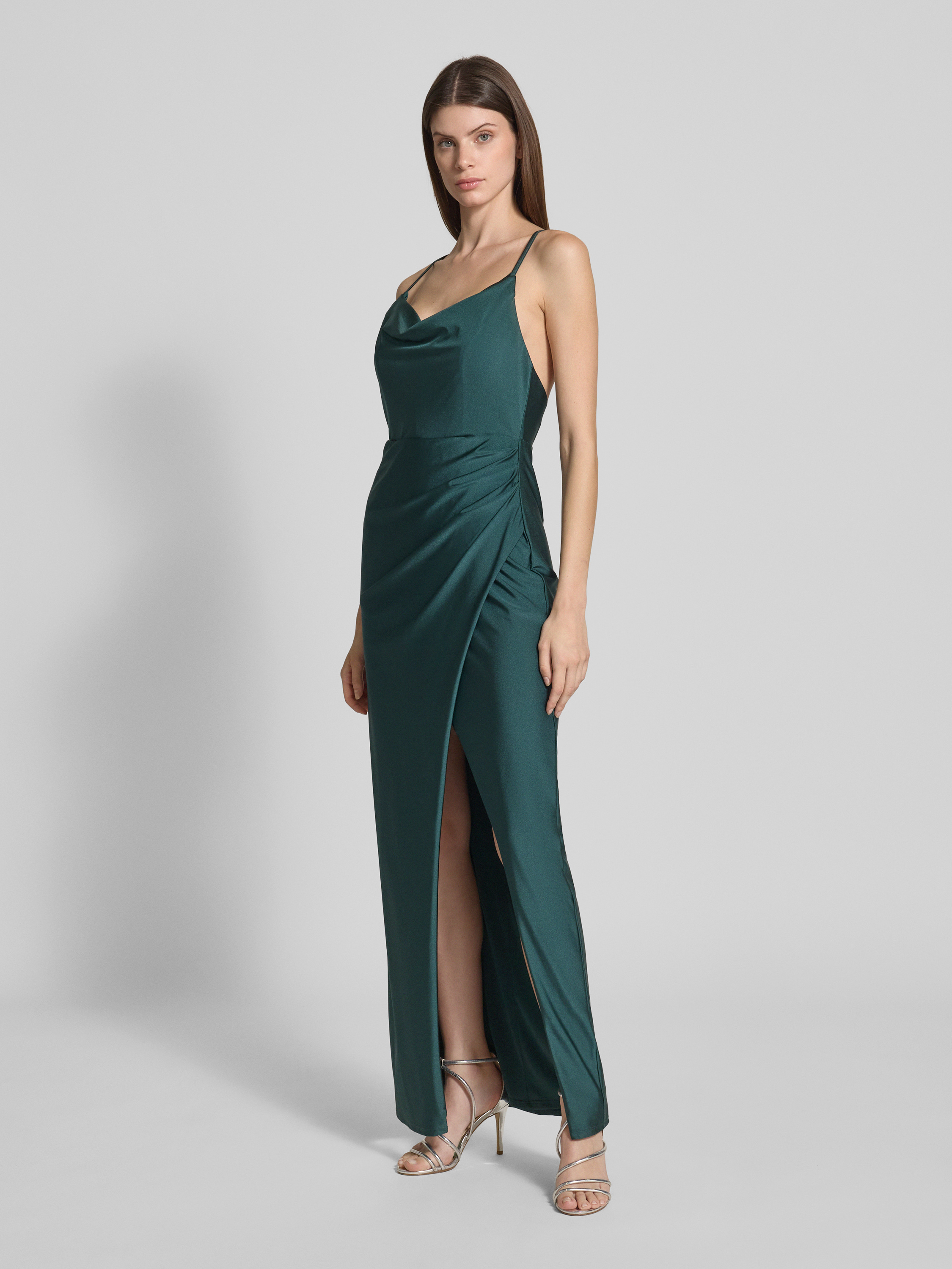 Sukienka wieczorowa z lejącym dekoltem i rozcięciem - ciemnozielony
