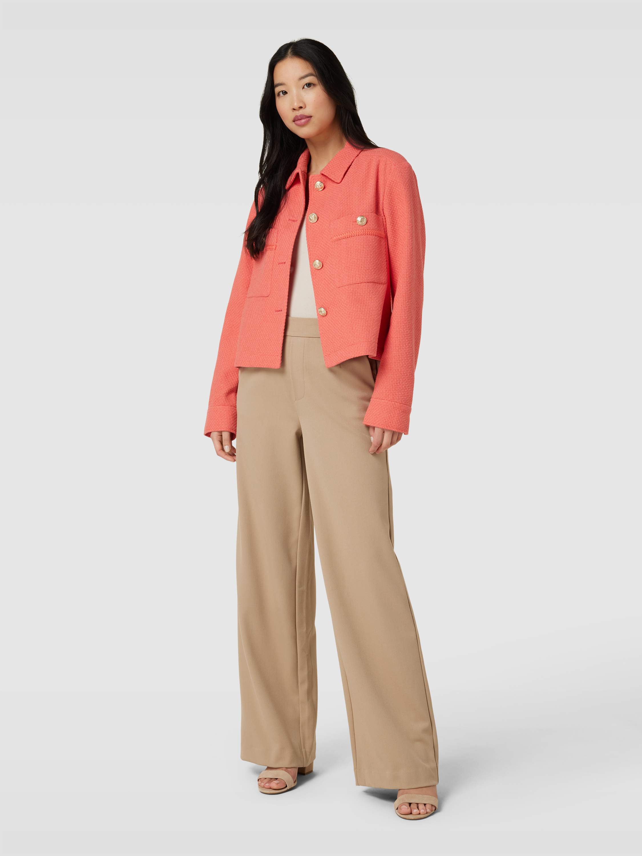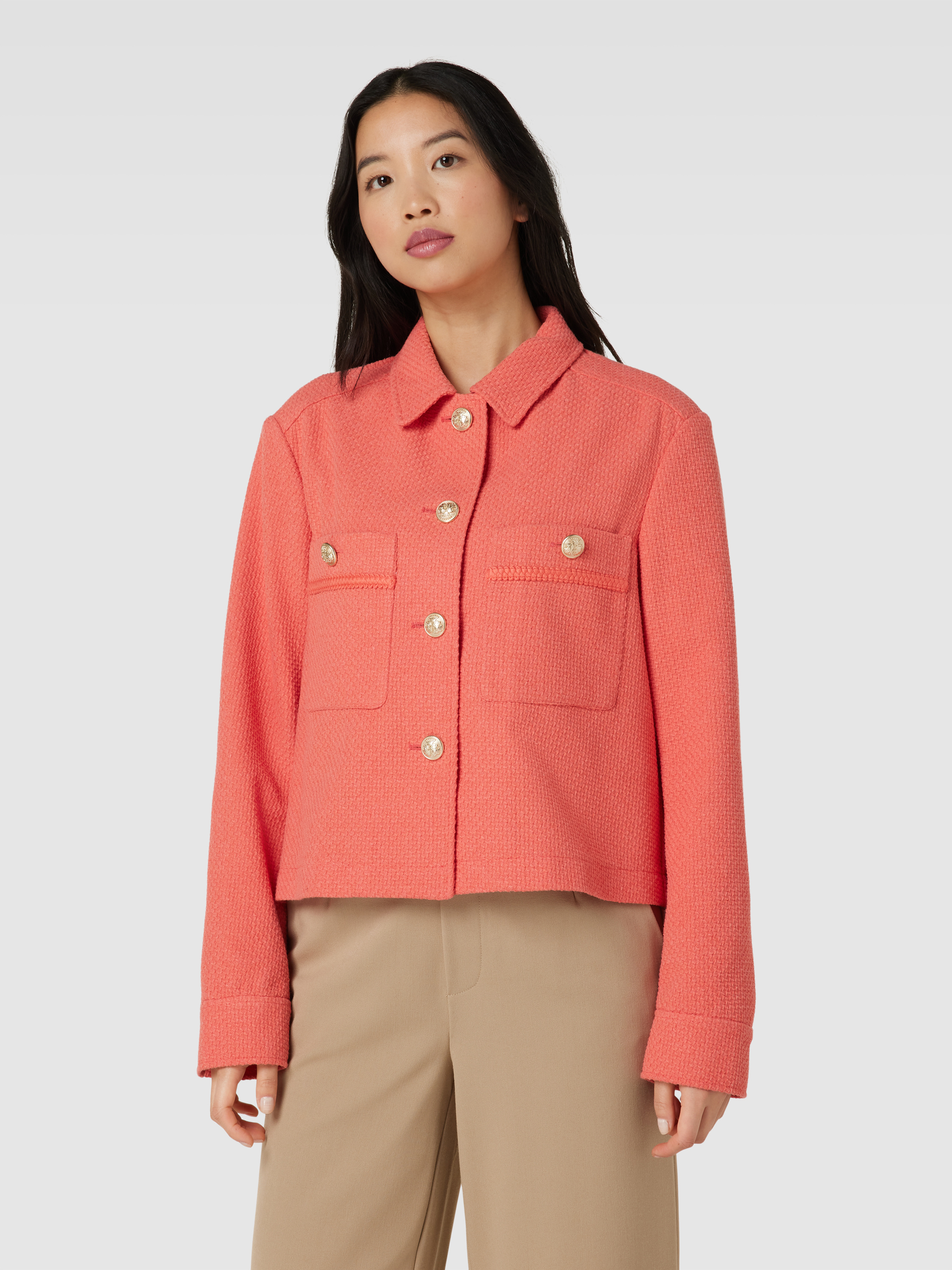 Żakiet z kieszeniami na piersi - koralowy