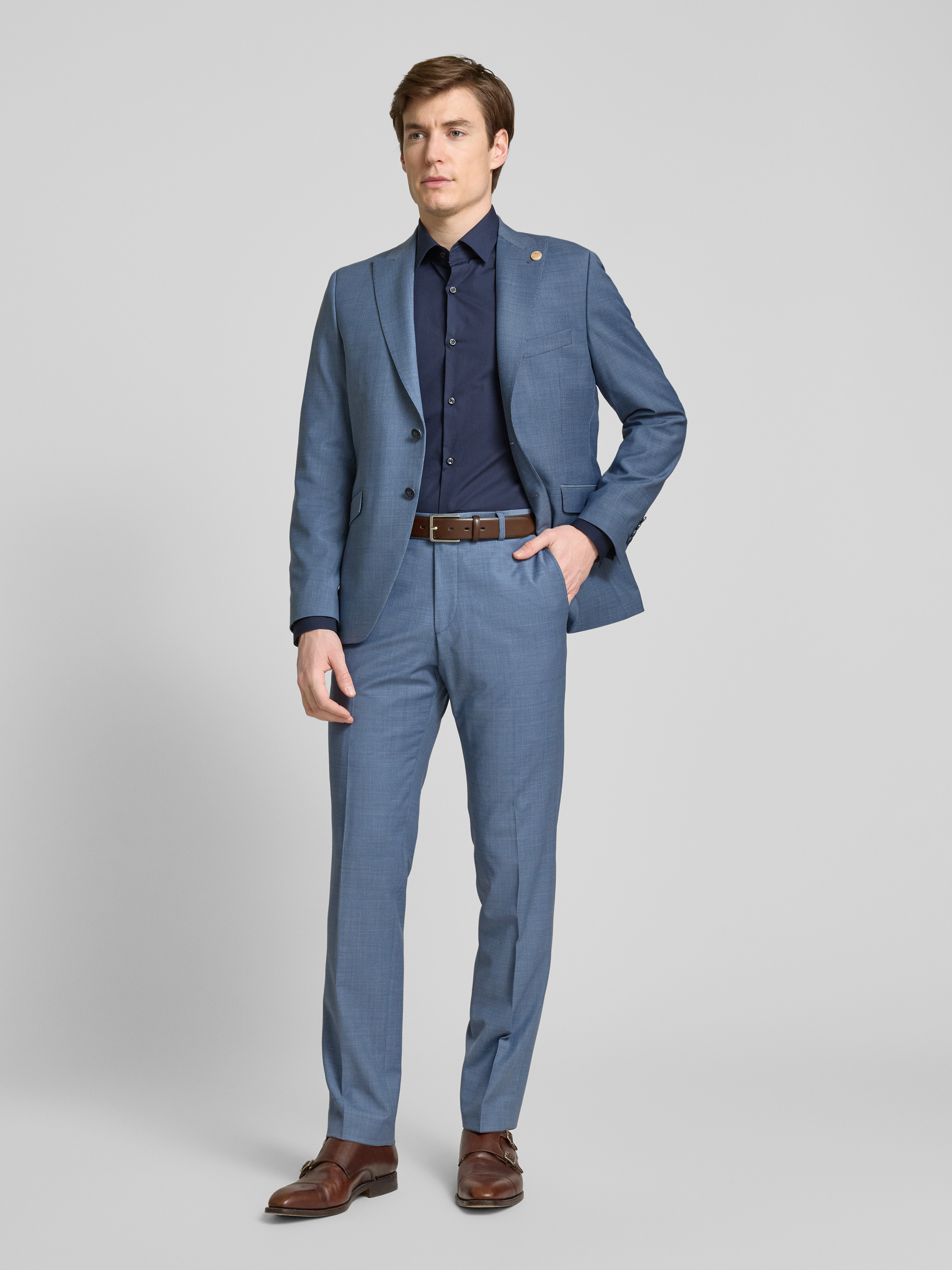 Spodnie do garnituru o kroju slim fit w kant - morski