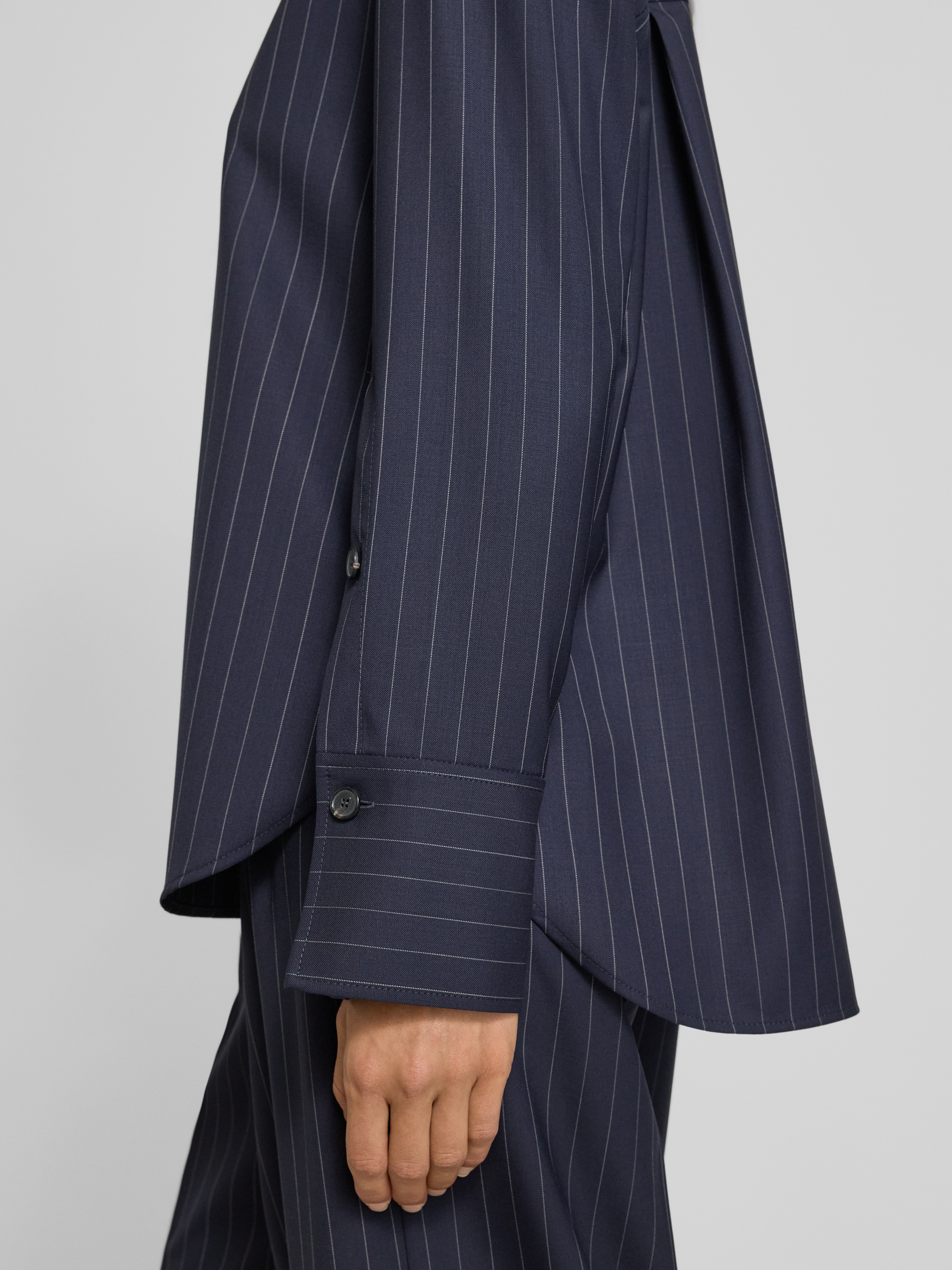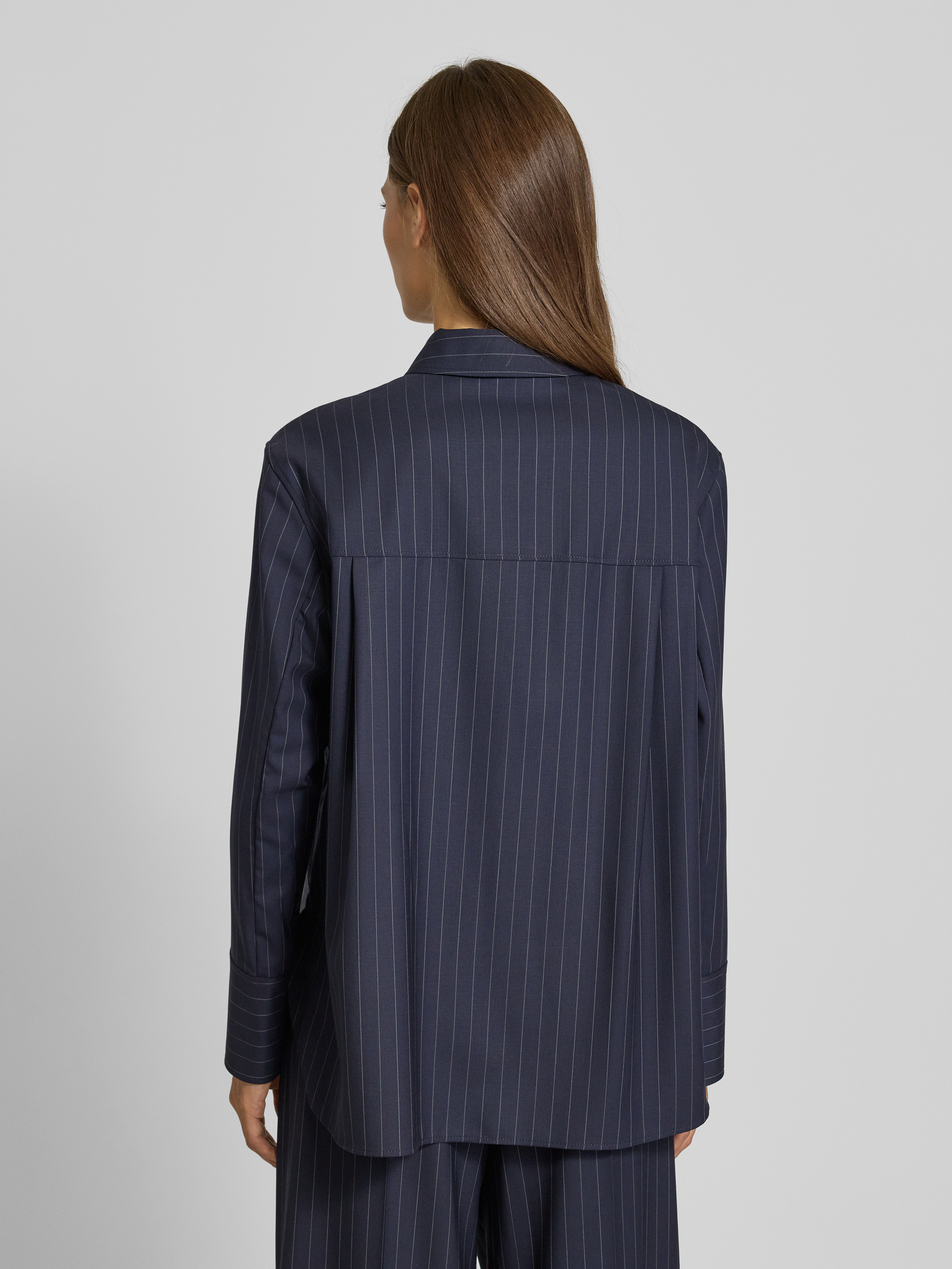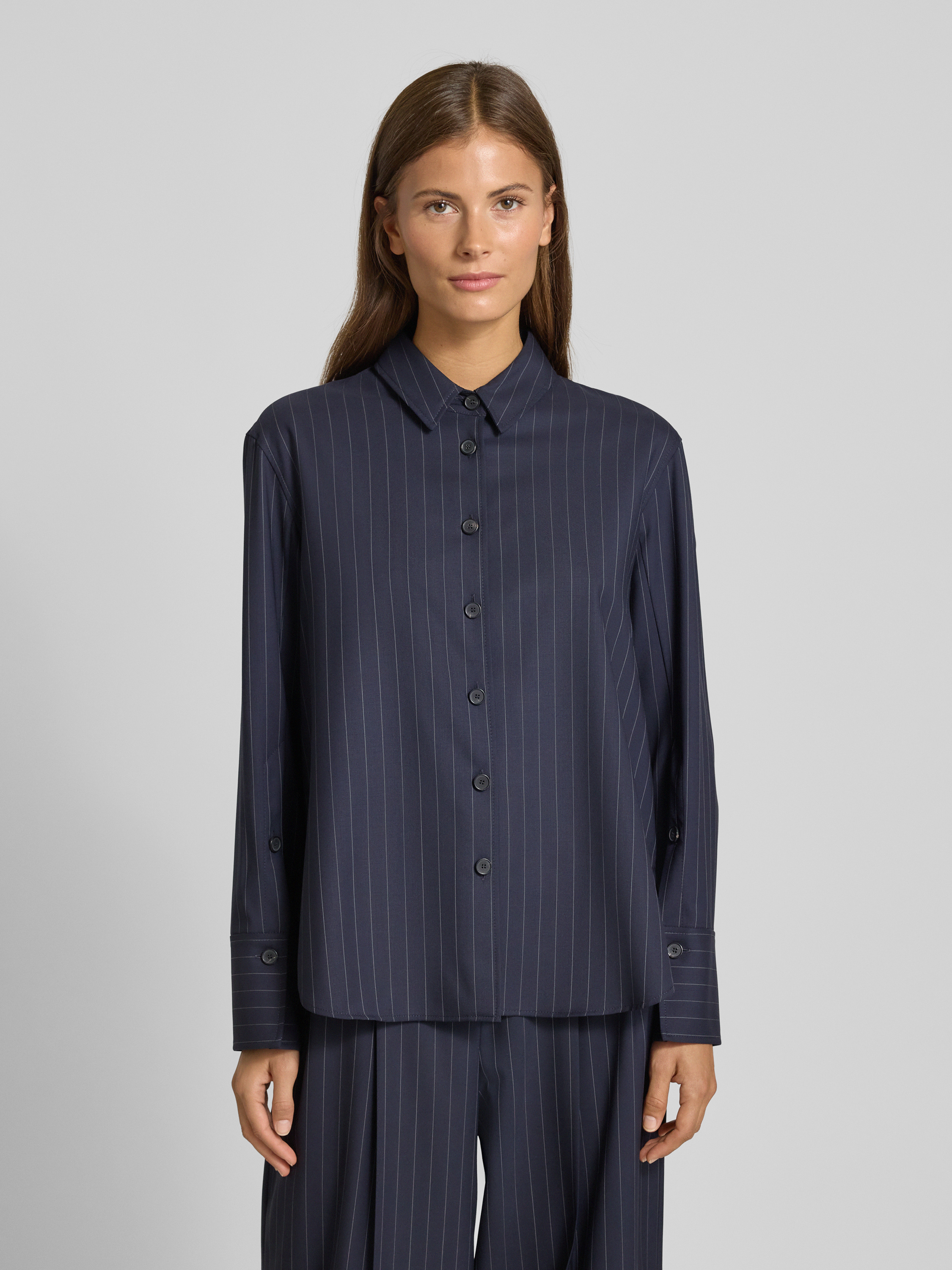 Bluzka koszulowa o kroju regular fit z wiskozy żywej wełny z listwą guzikową - granatowy