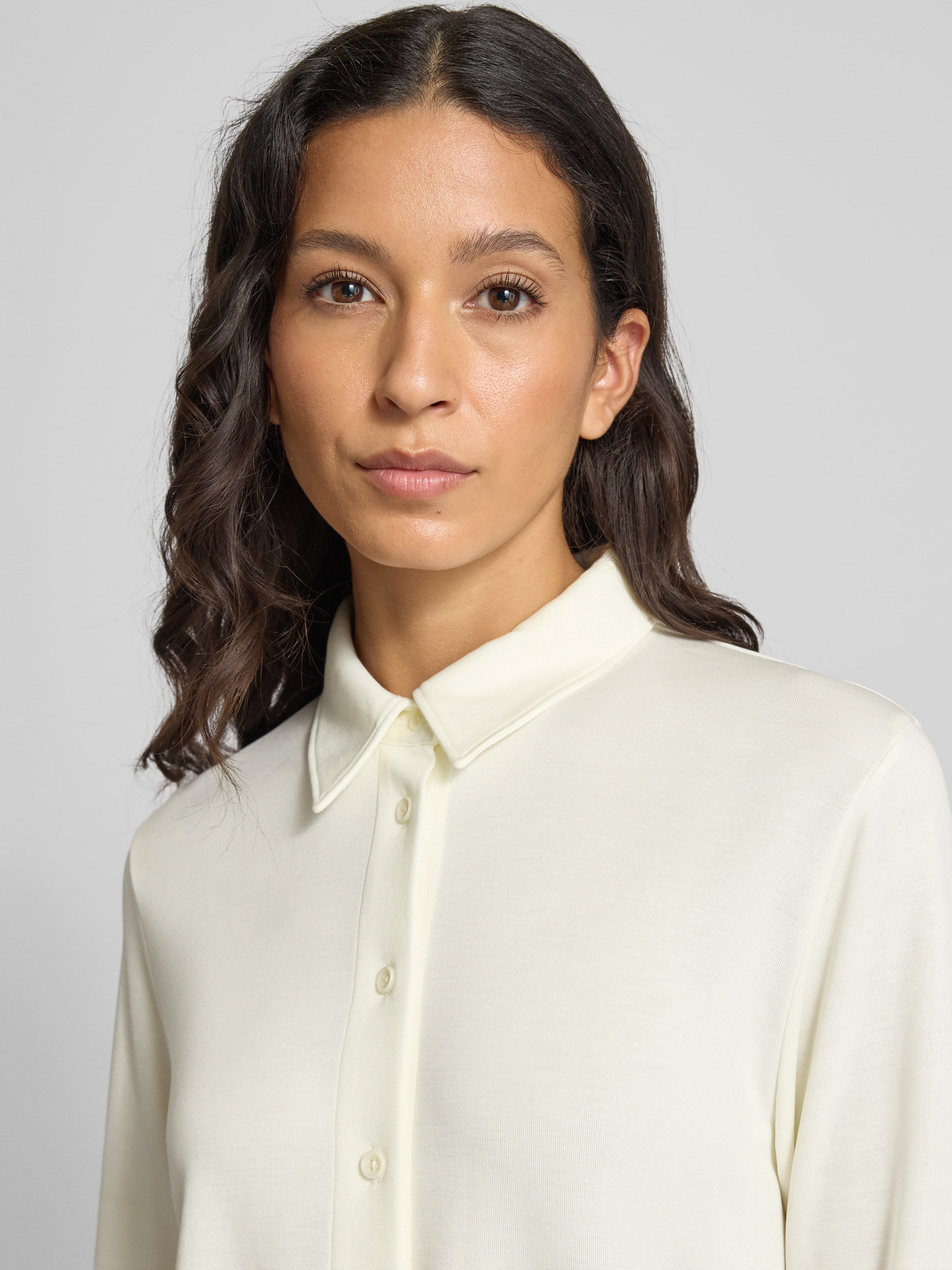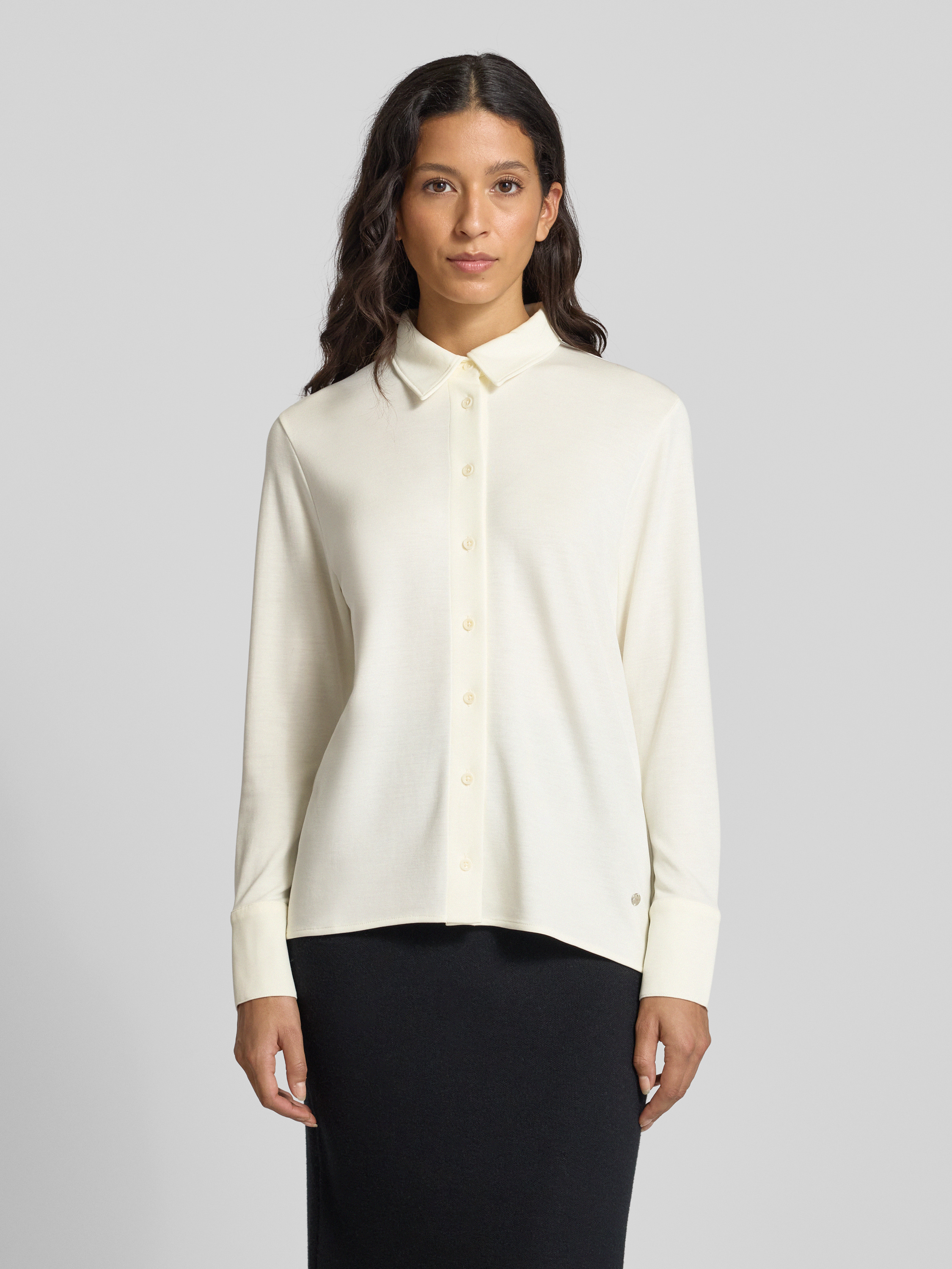 Bluzka o kroju regular fit z mieszanki lyocellu z detalem z logo - złamany biały