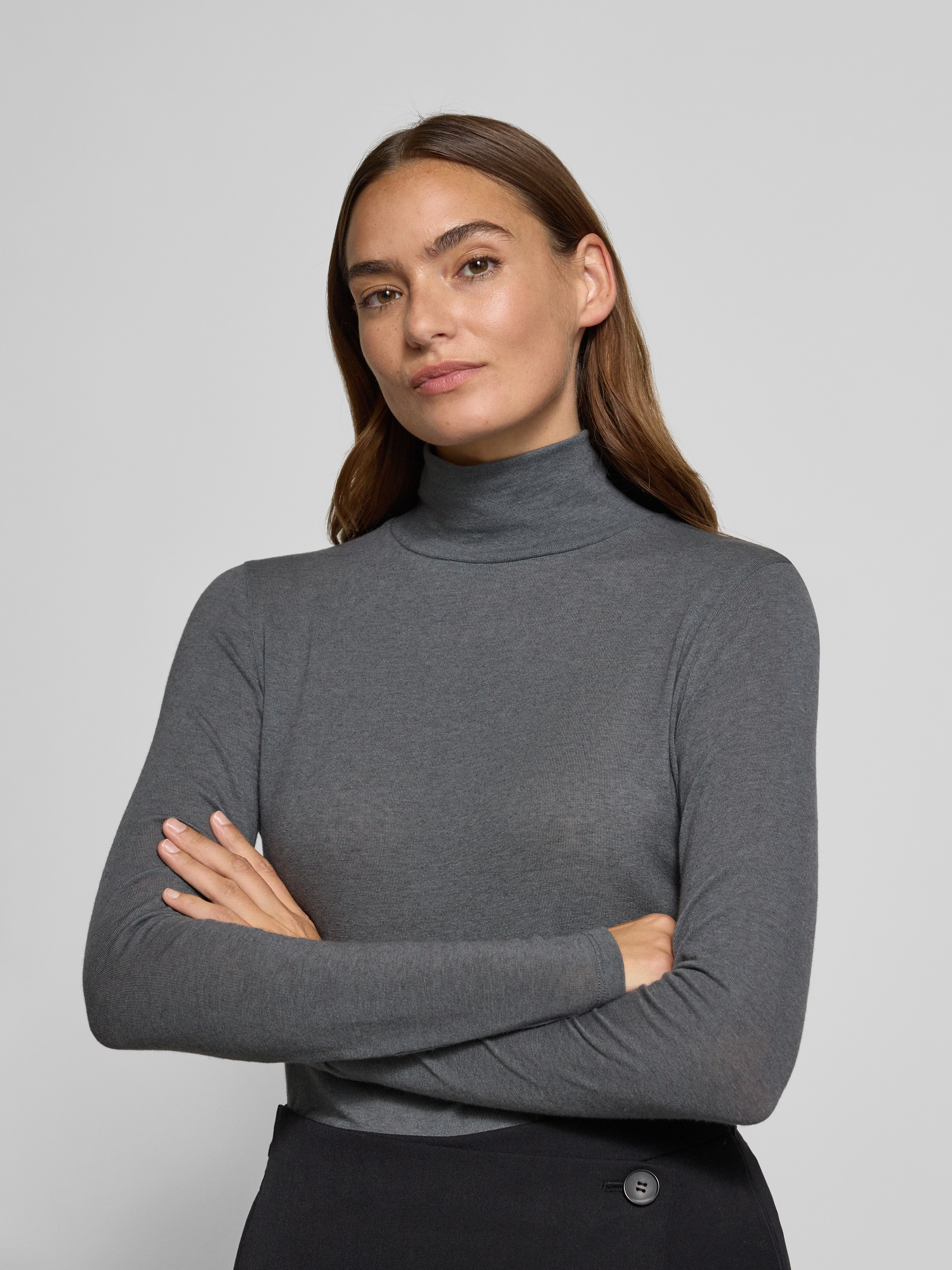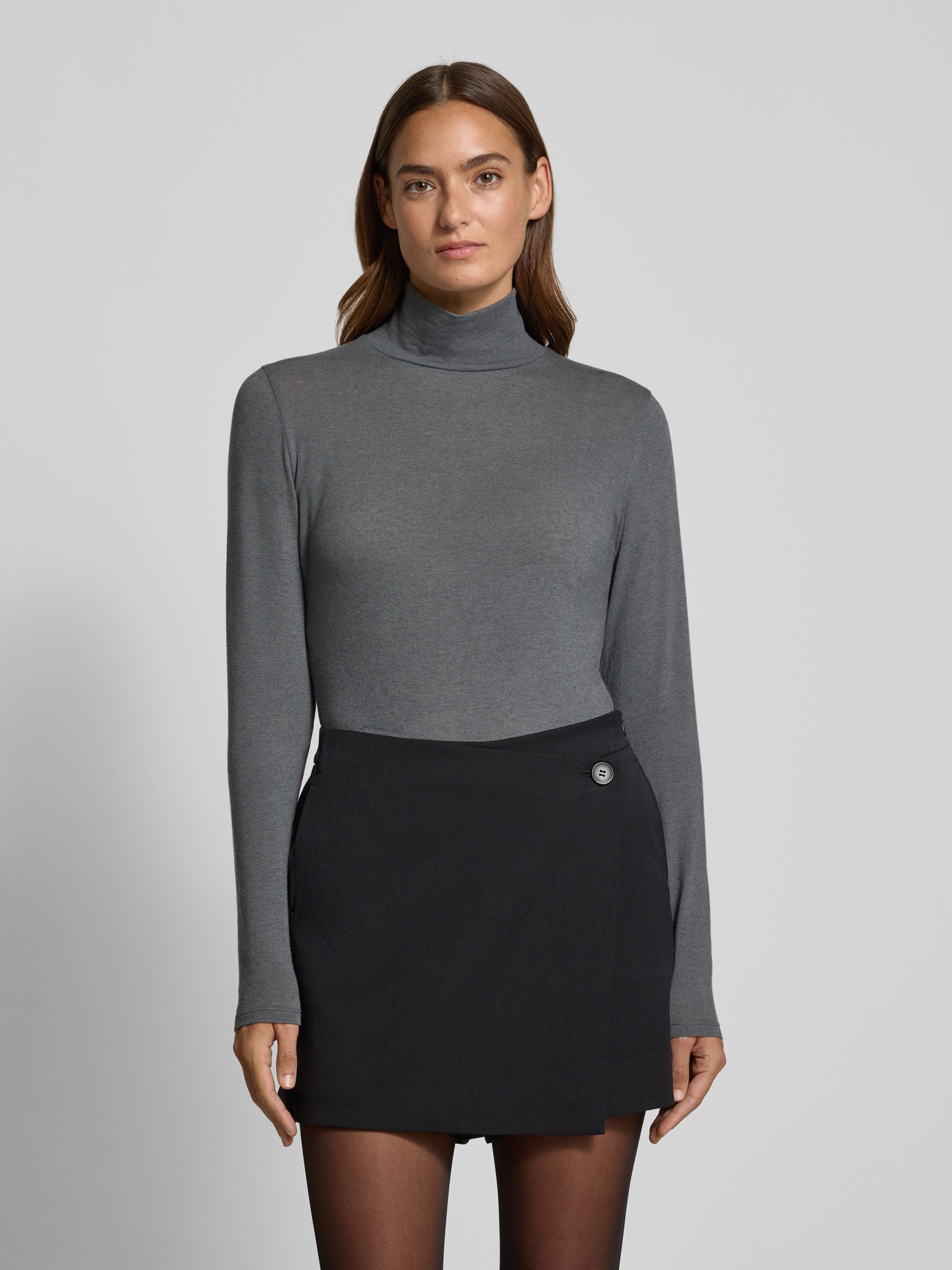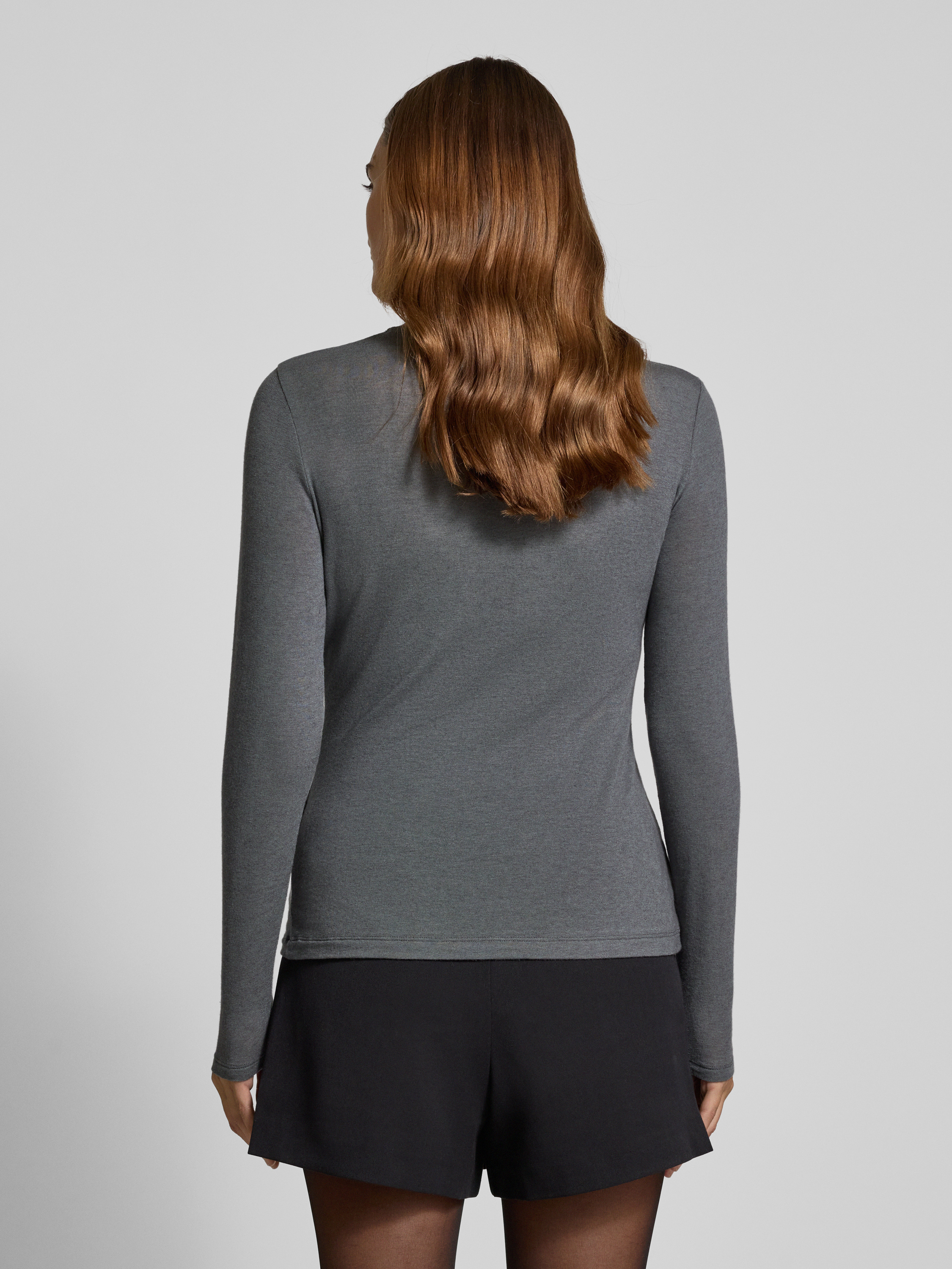 Bluzka z długim rękawem i prążkowaną stójka - jasnoszary