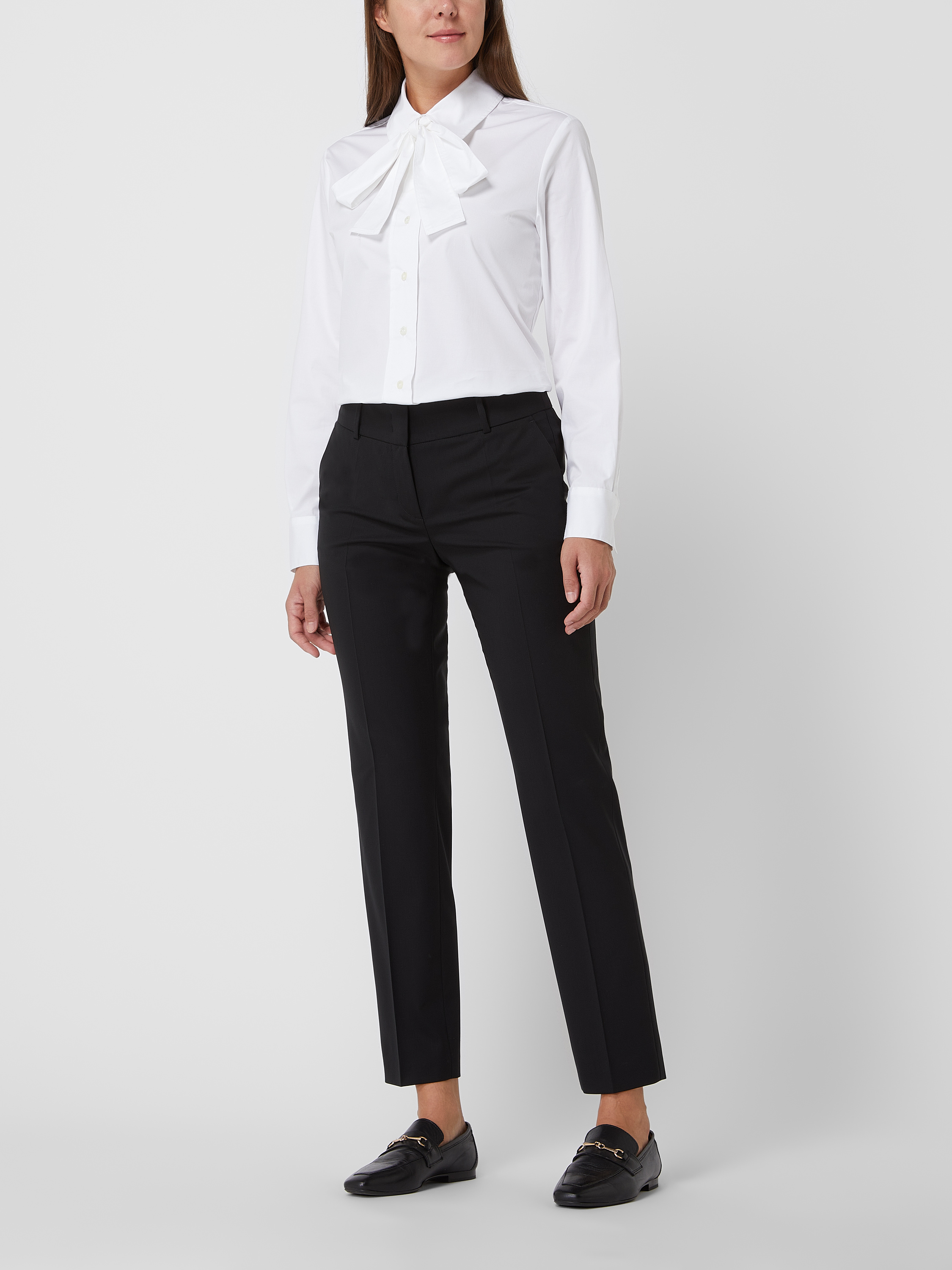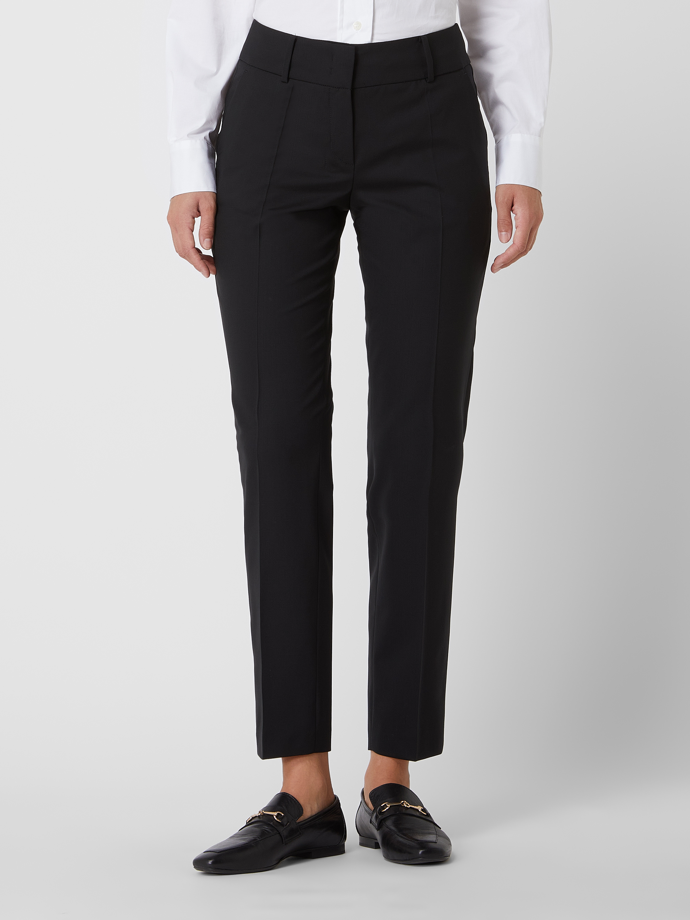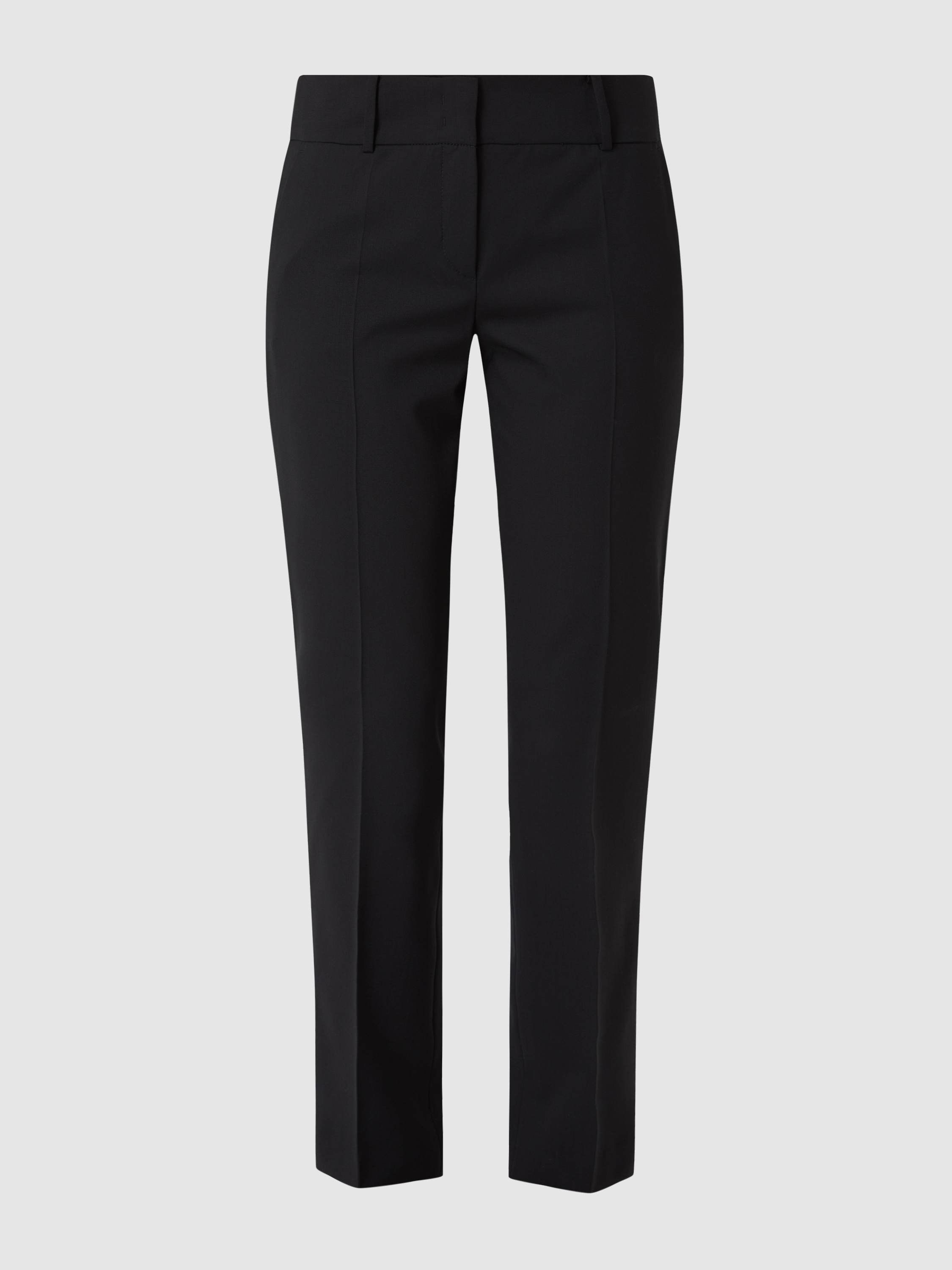 Spodnie materiałowe o kroju slim fit z mieszanki żywej wełny - czarny