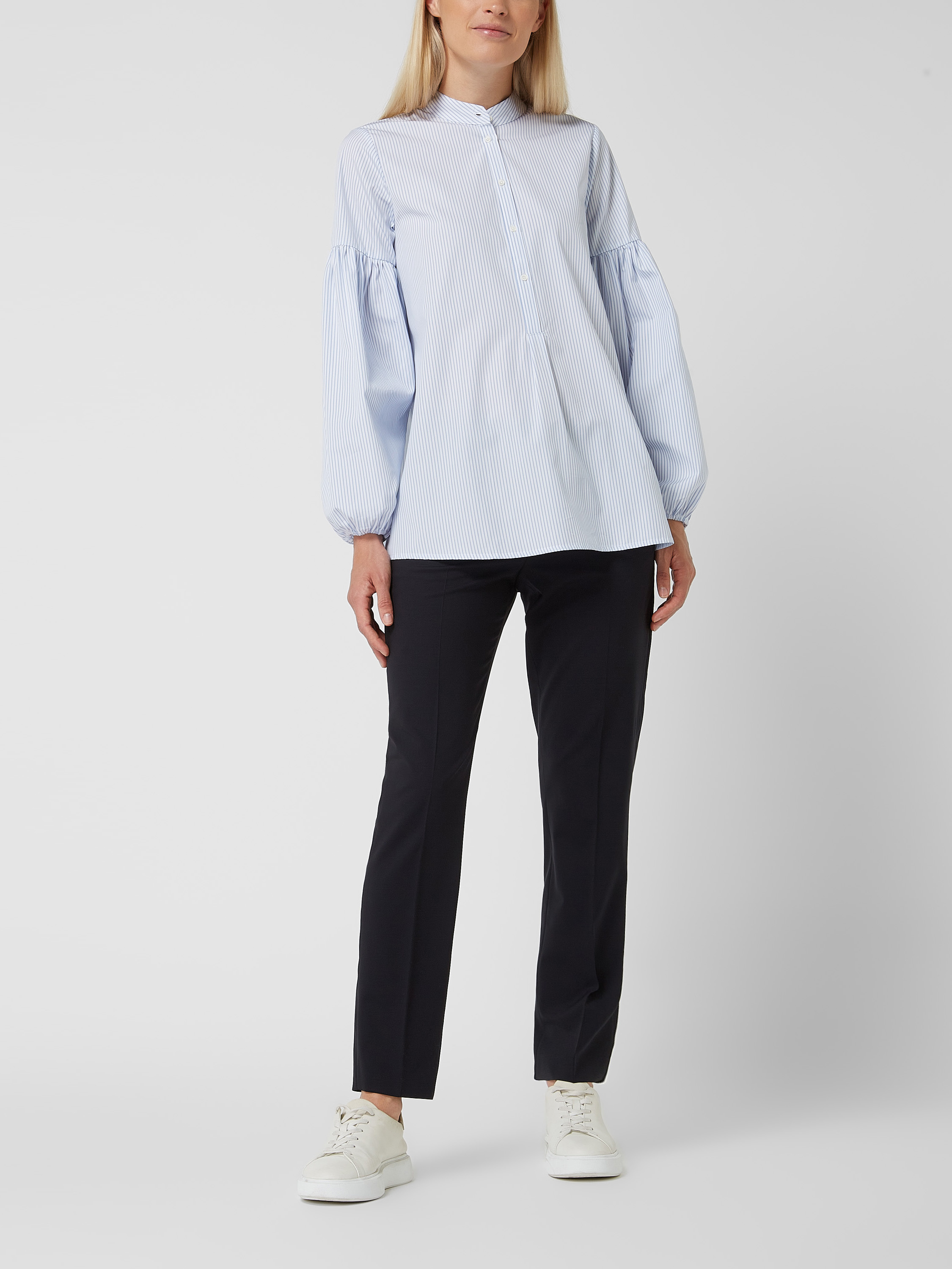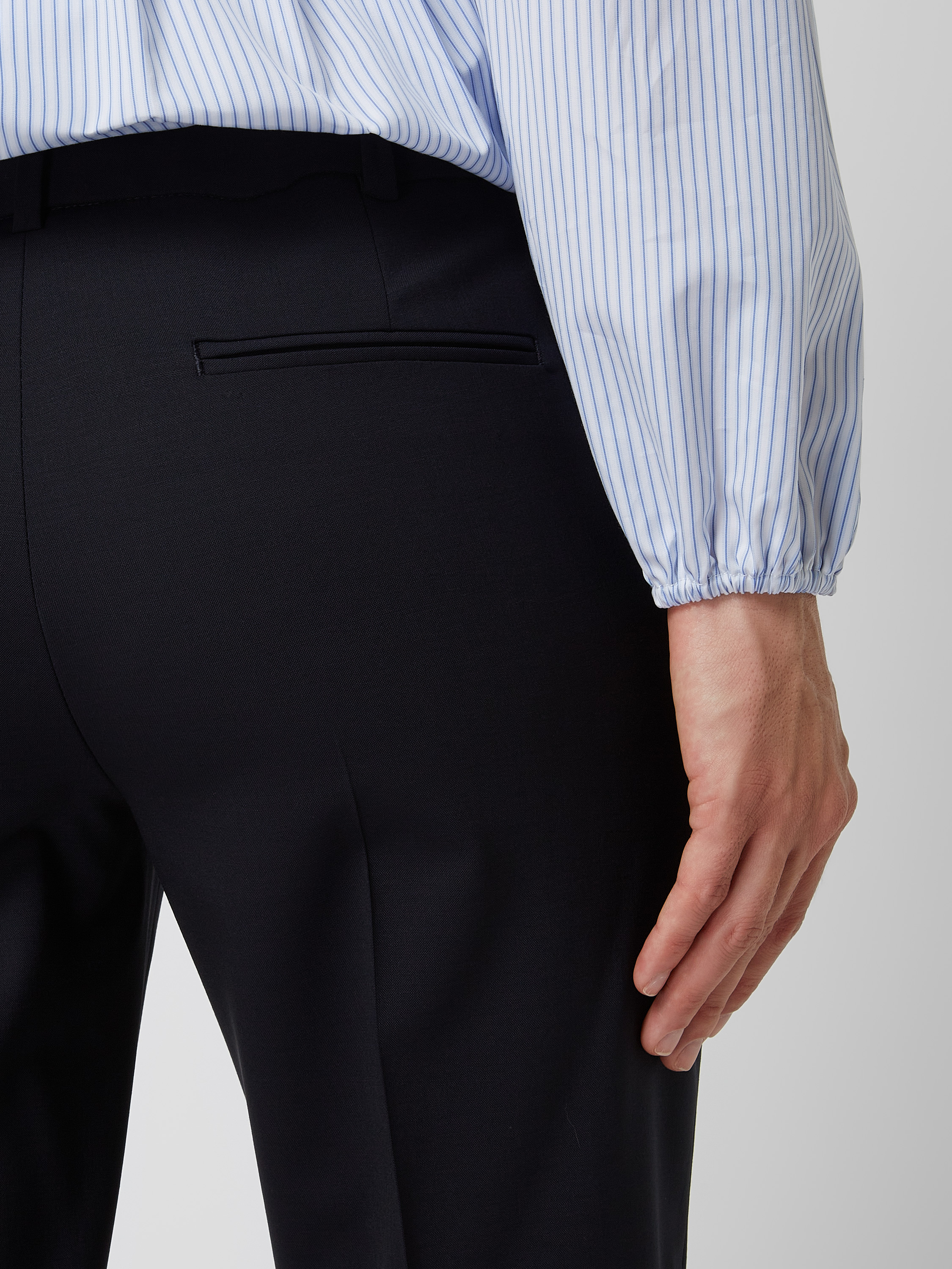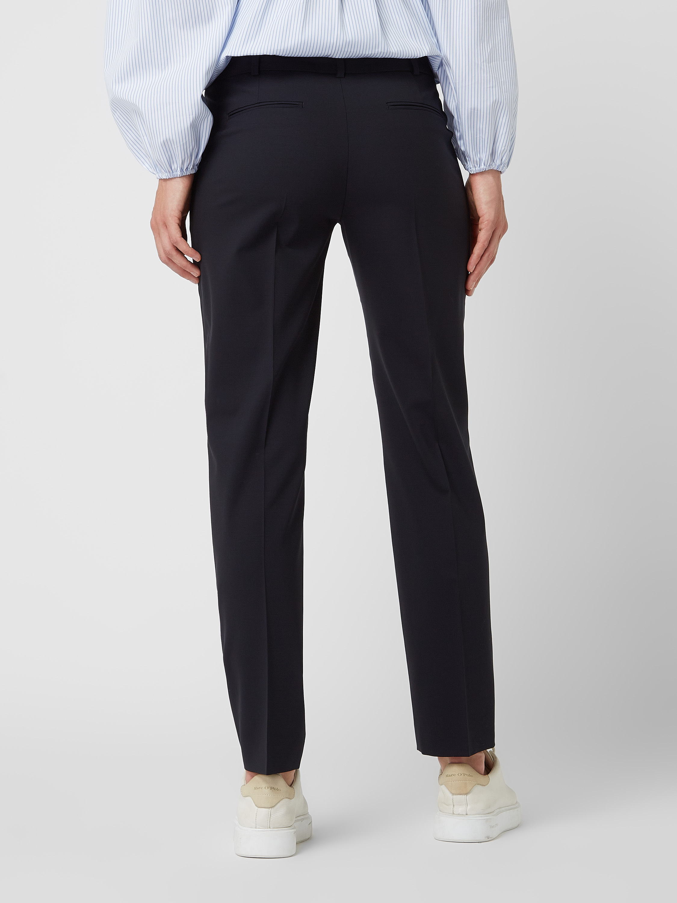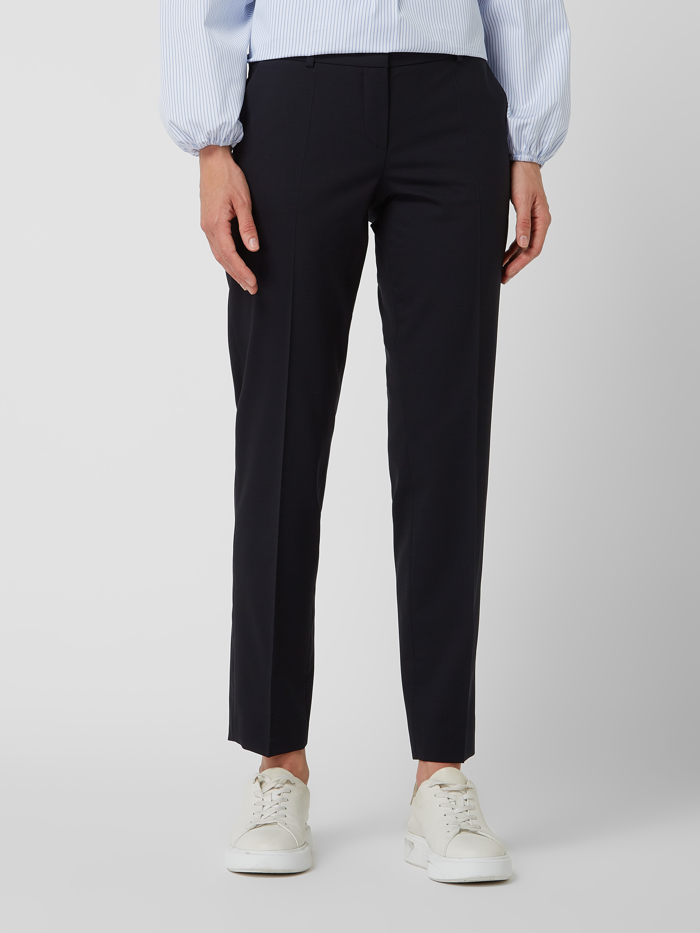 Spodnie materiałowe o kroju slim fit z mieszanki żywej wełny - granatowy