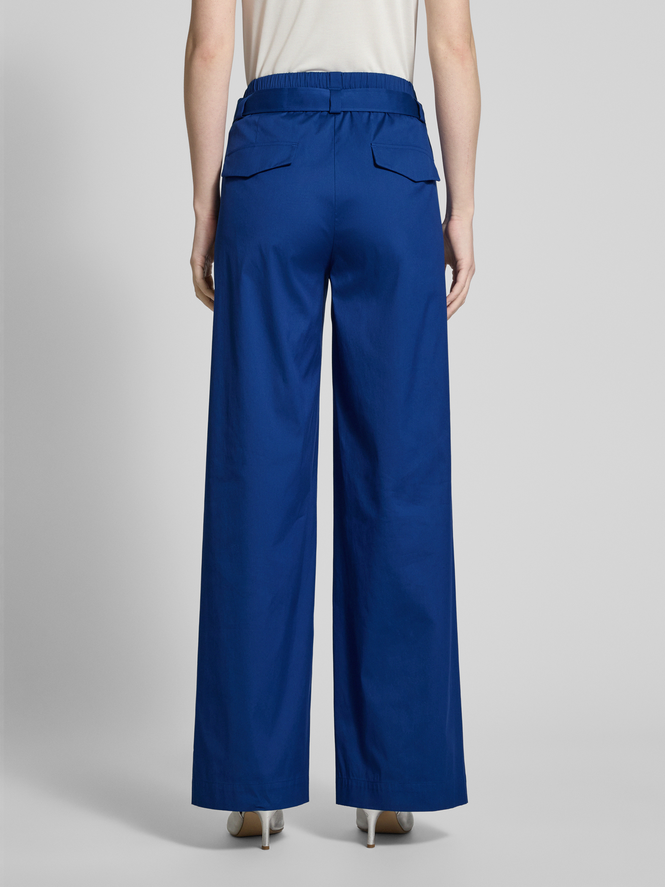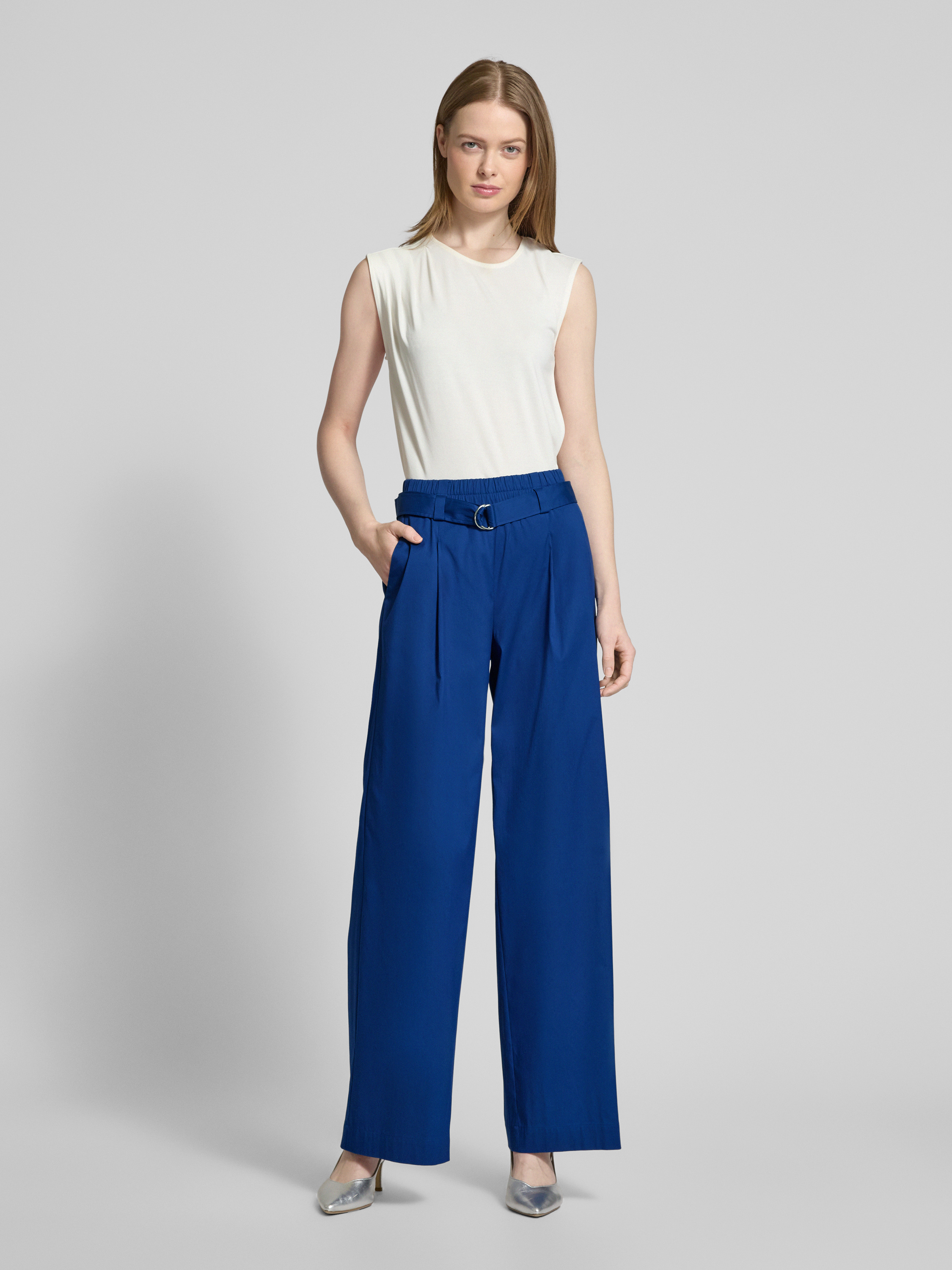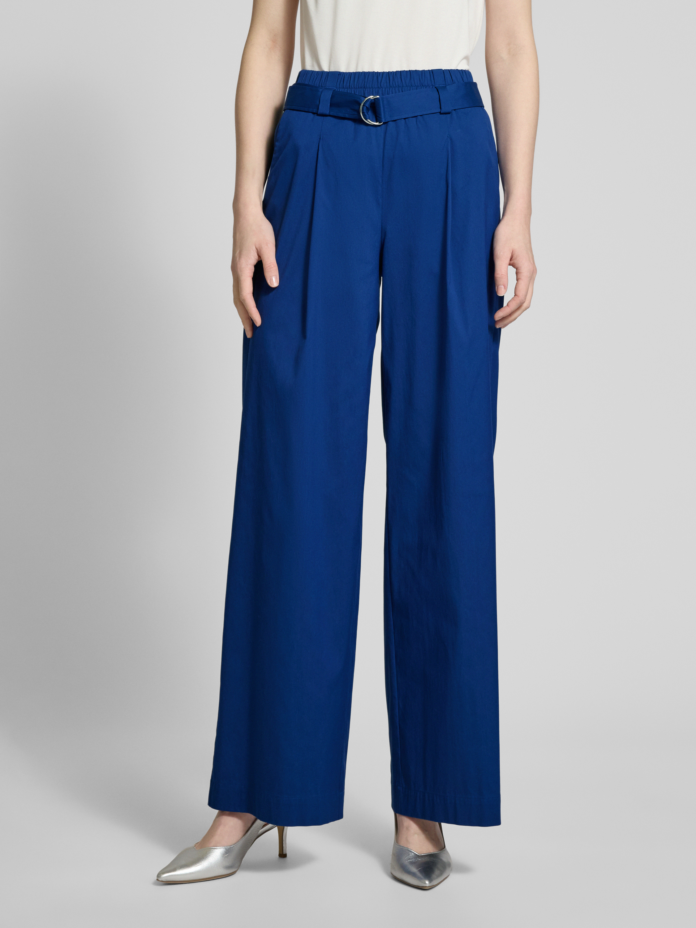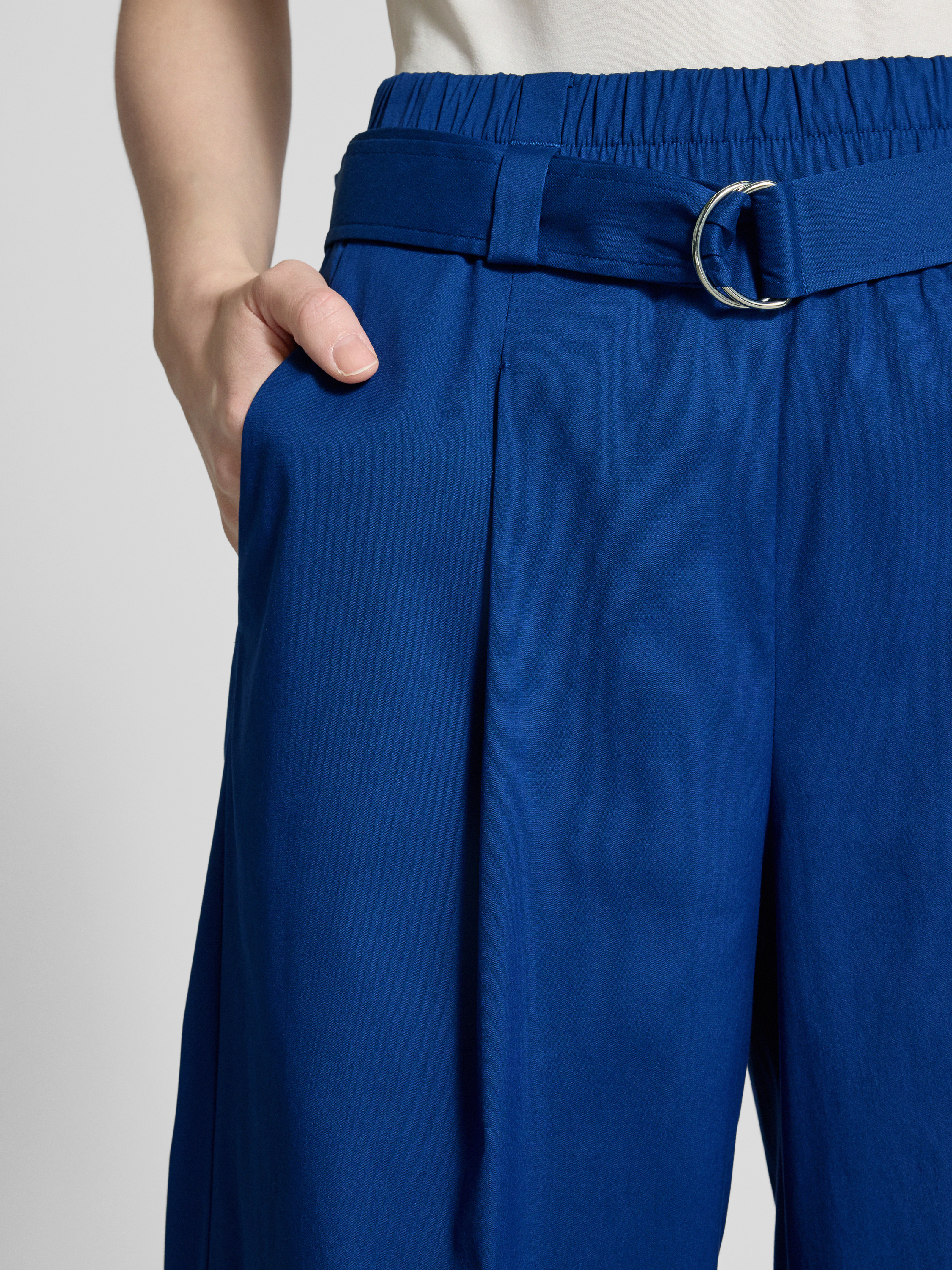Spodnie materiałowe z szerokimi nogawkami i paskiem - królewski niebieski