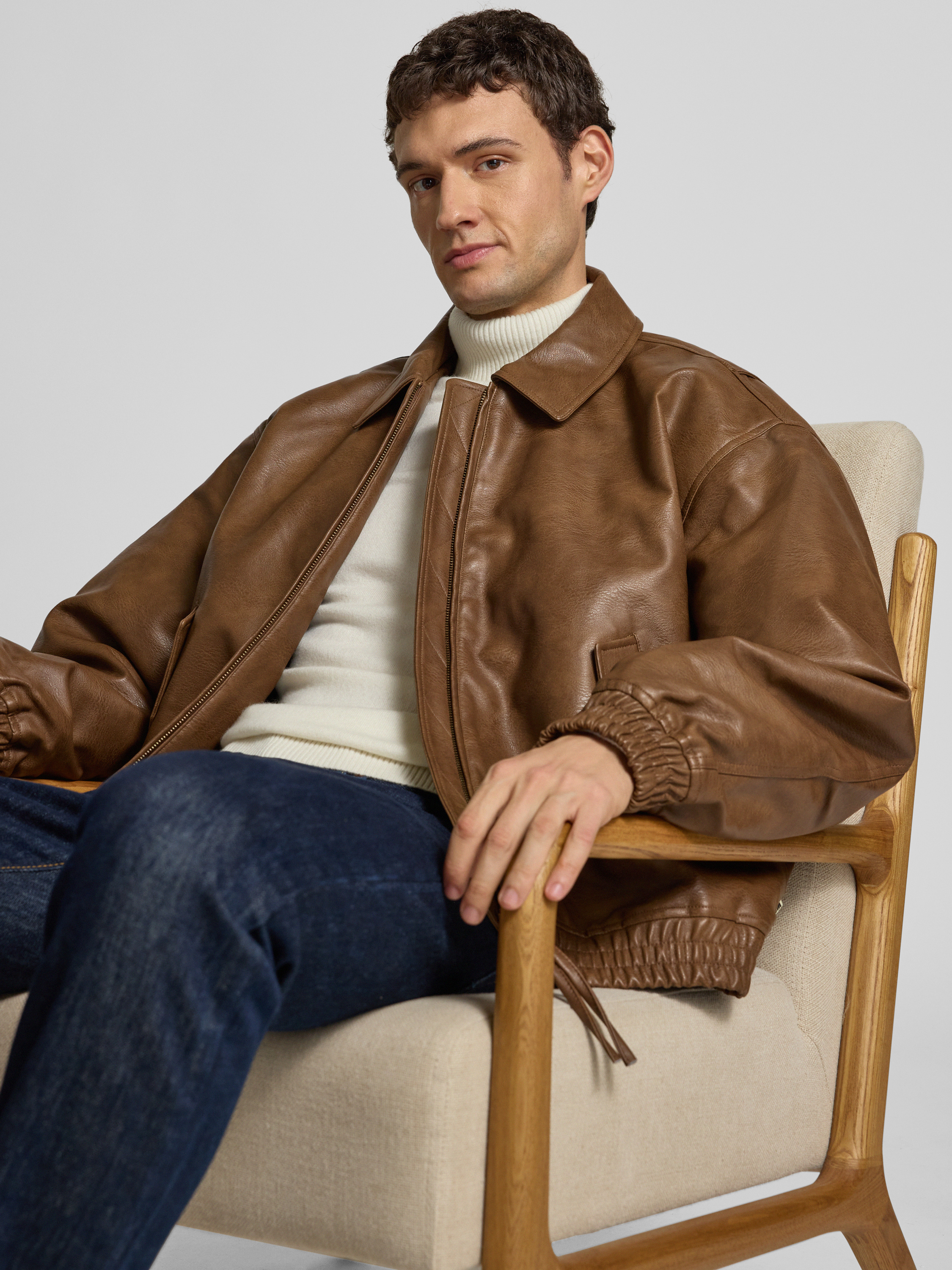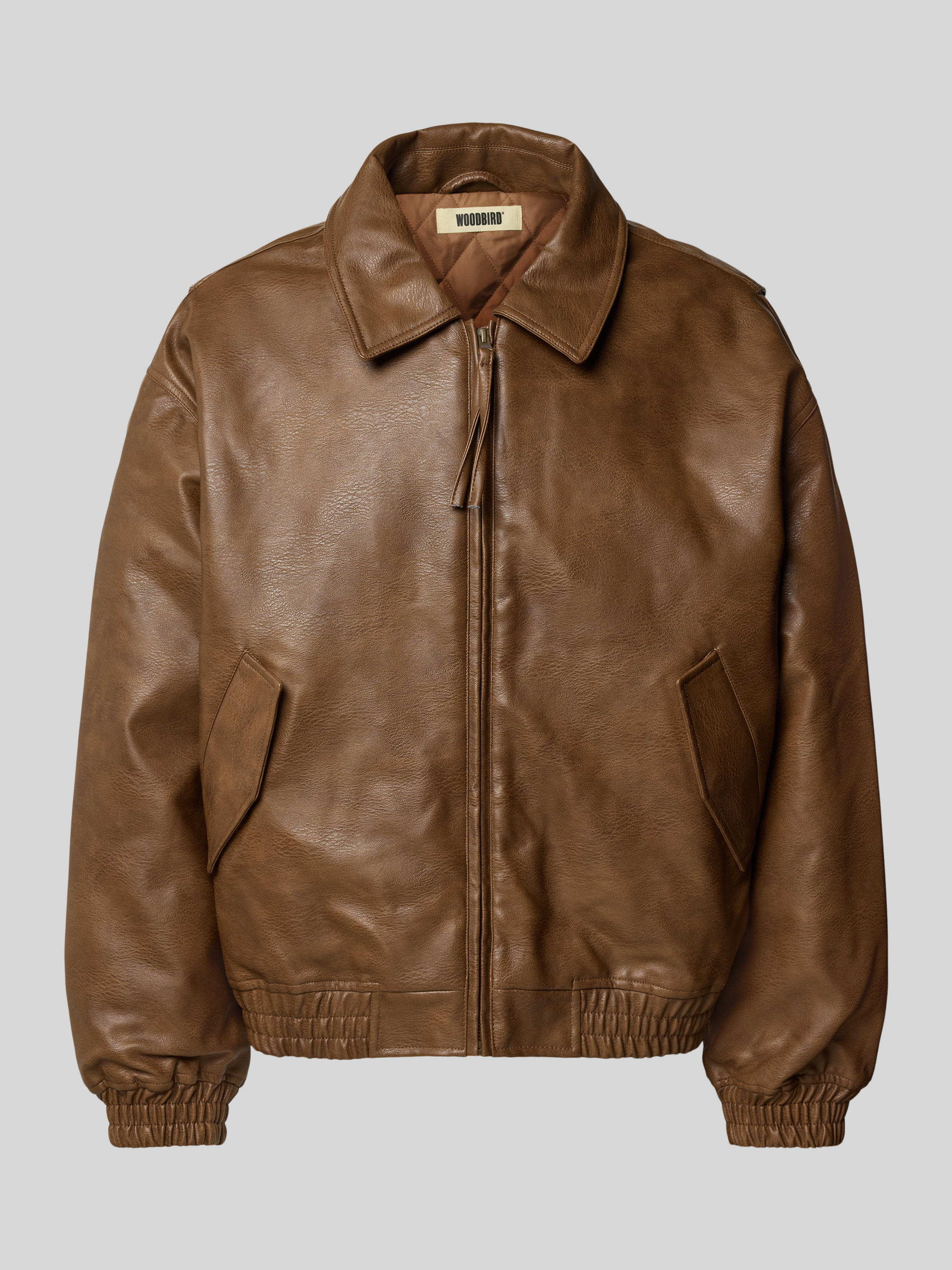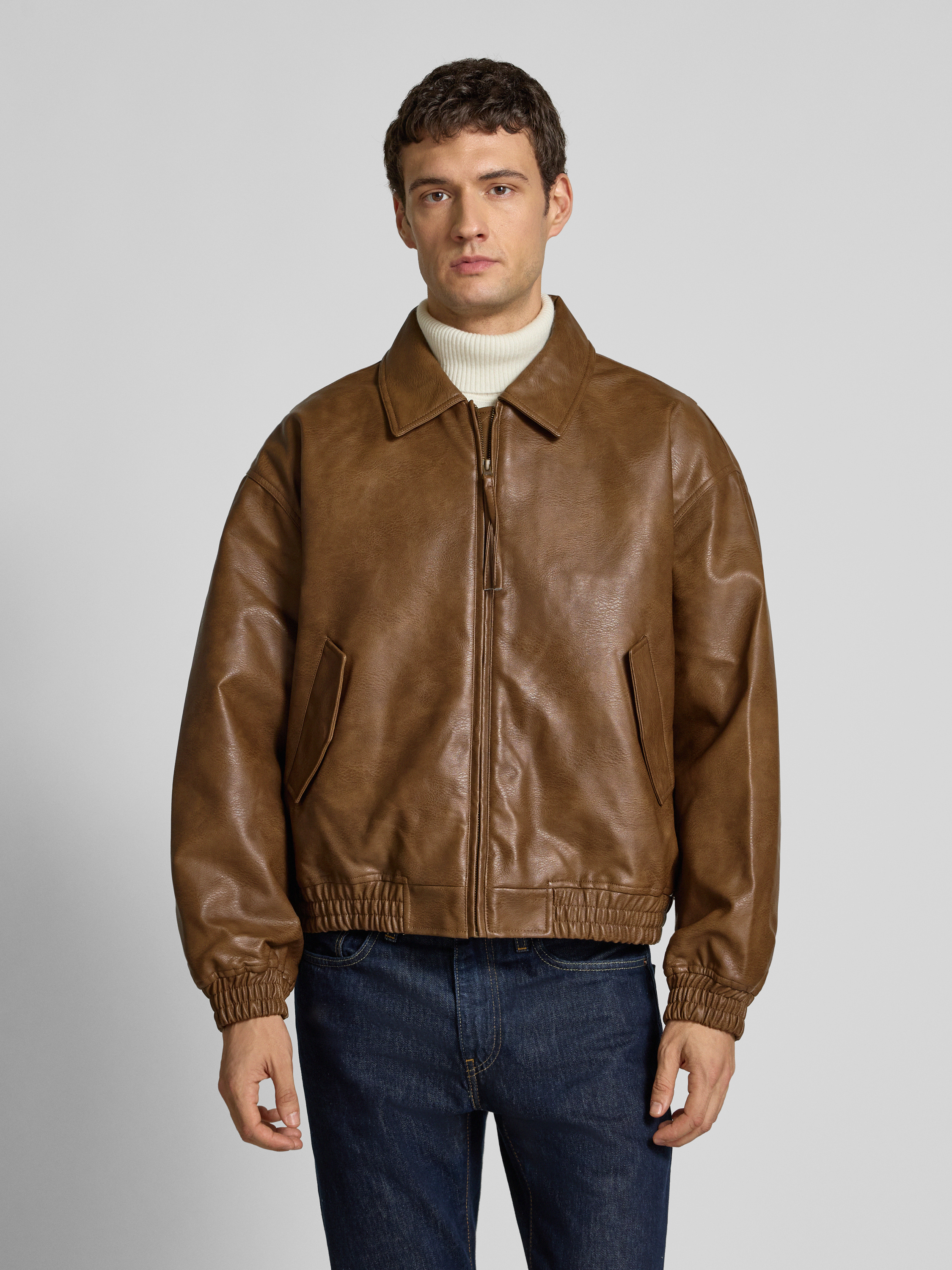 Kurtka z imitacji skóry model ‘Bao’ - ciemnobrązowy