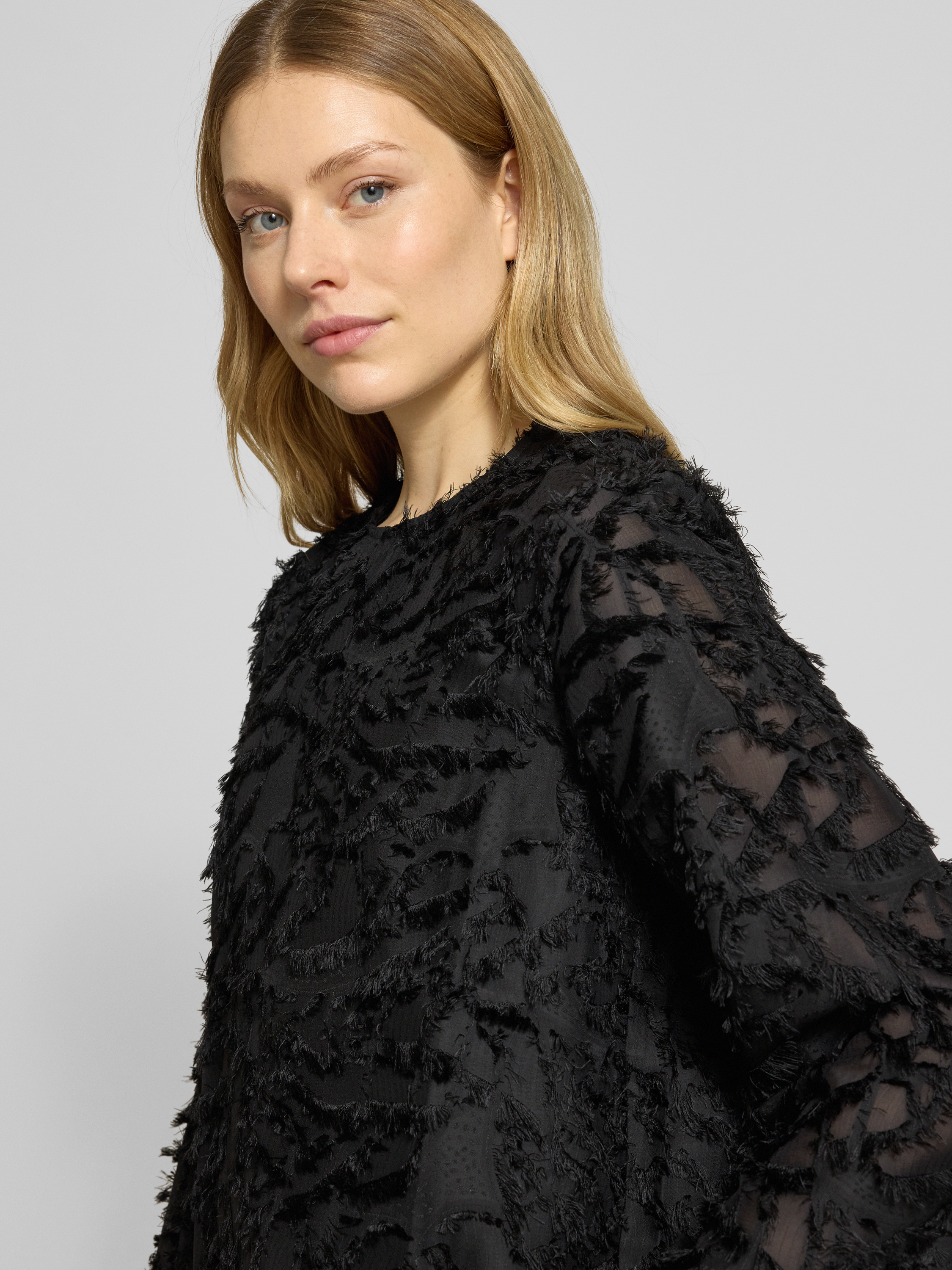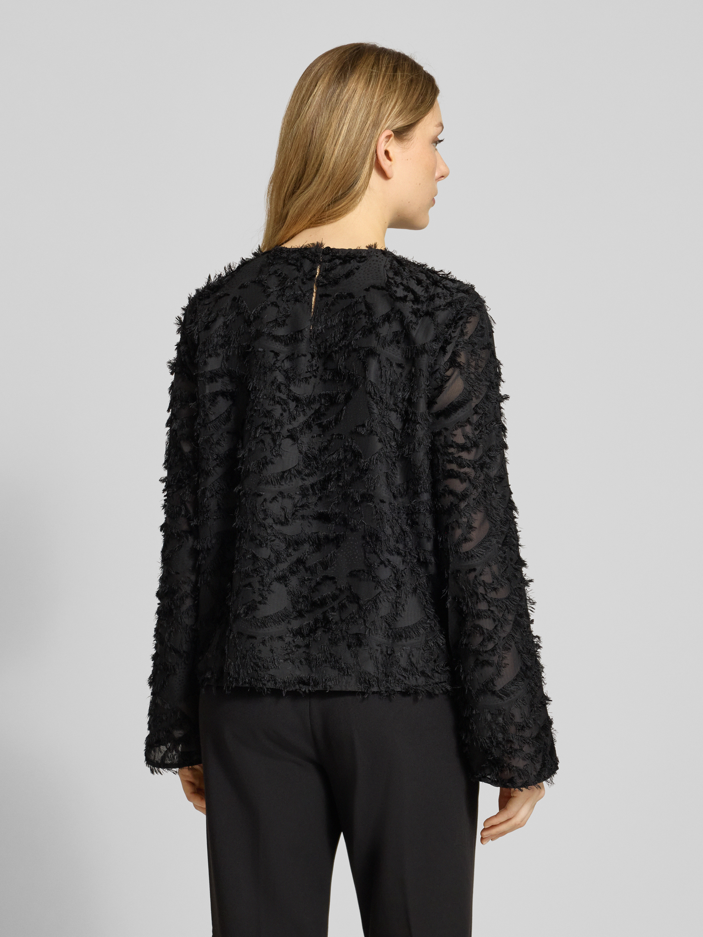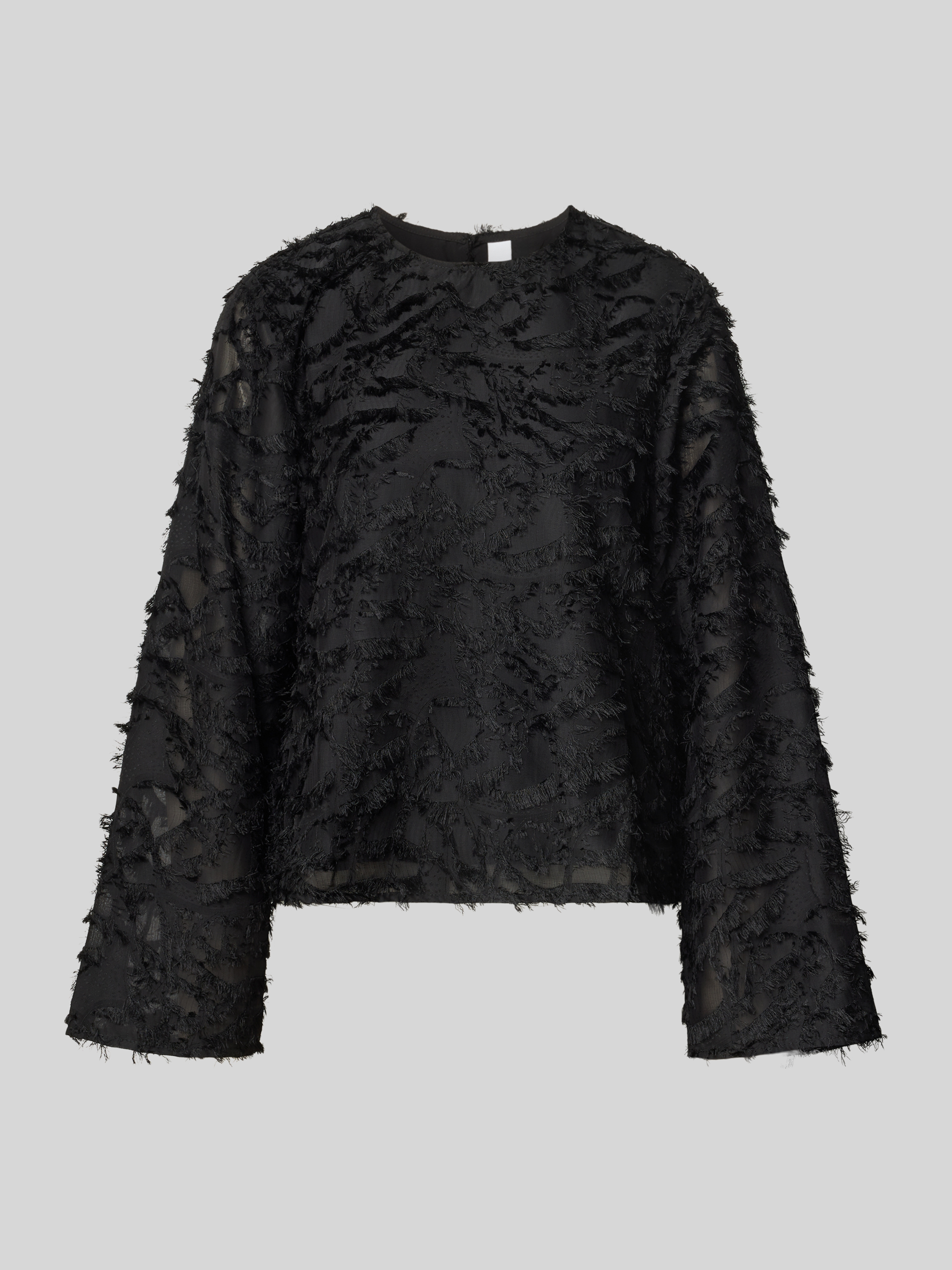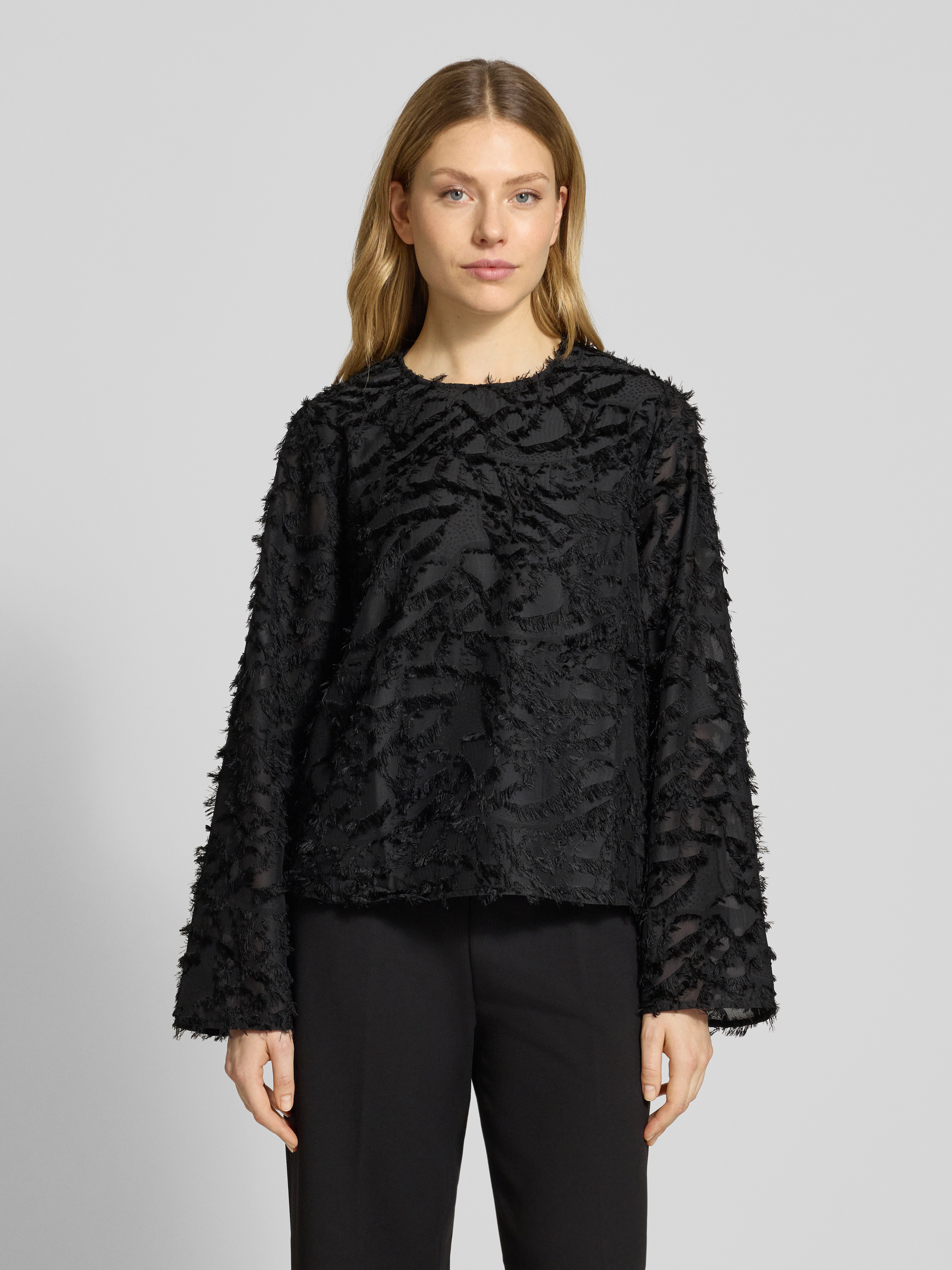 Bluzka z długim rękawem i okrągłym dekoltem model ‘PARIA’ - czarny