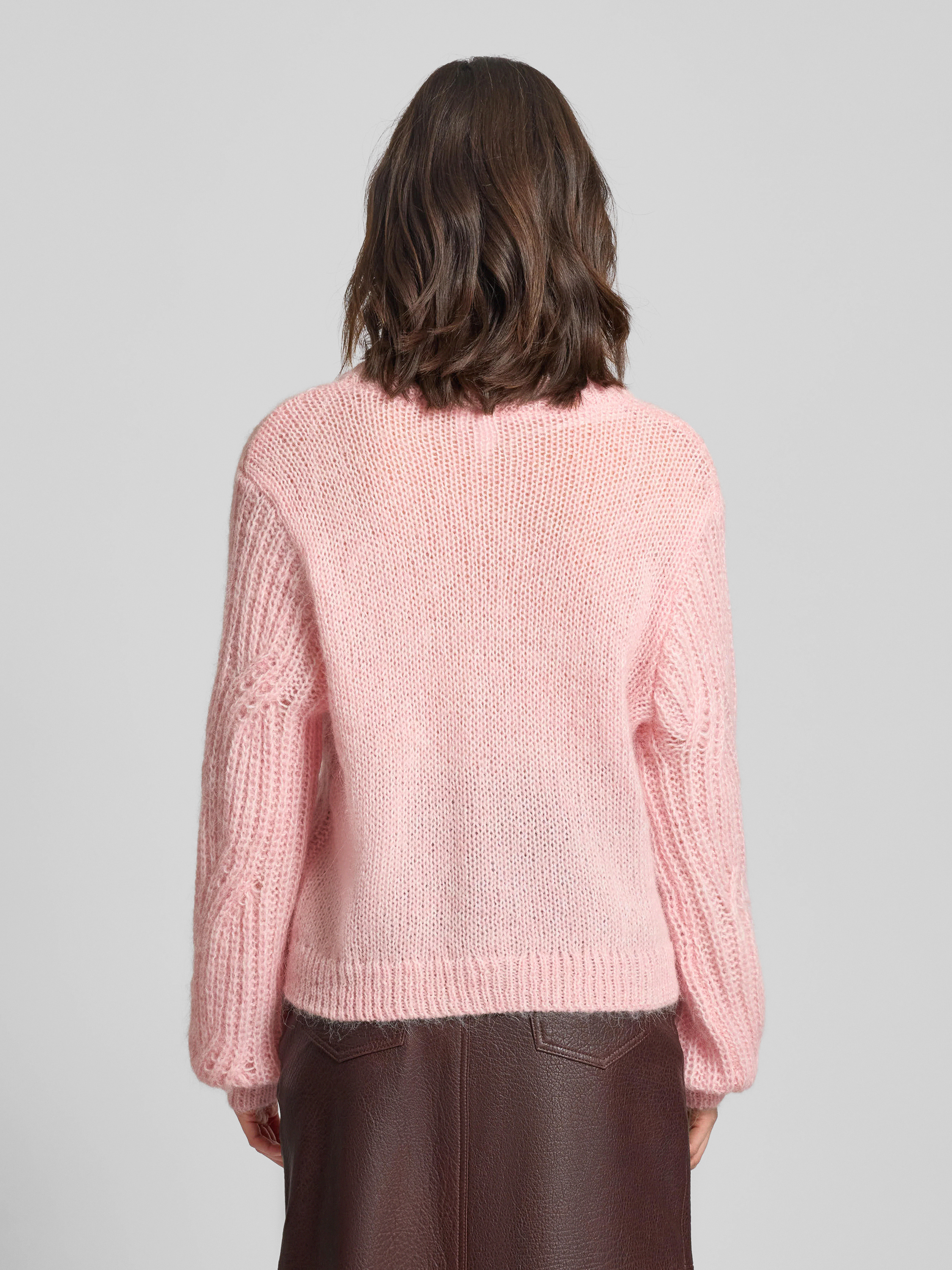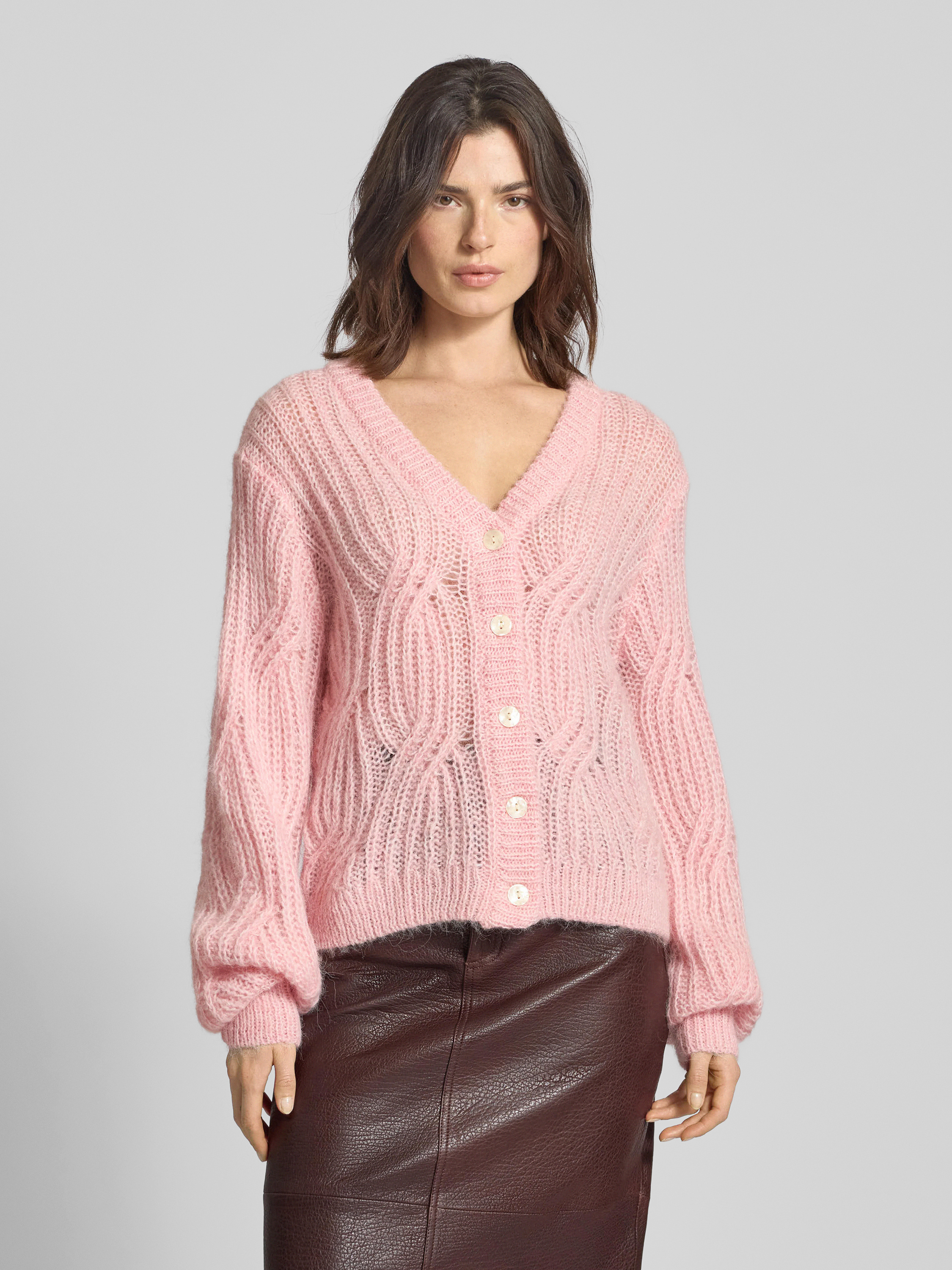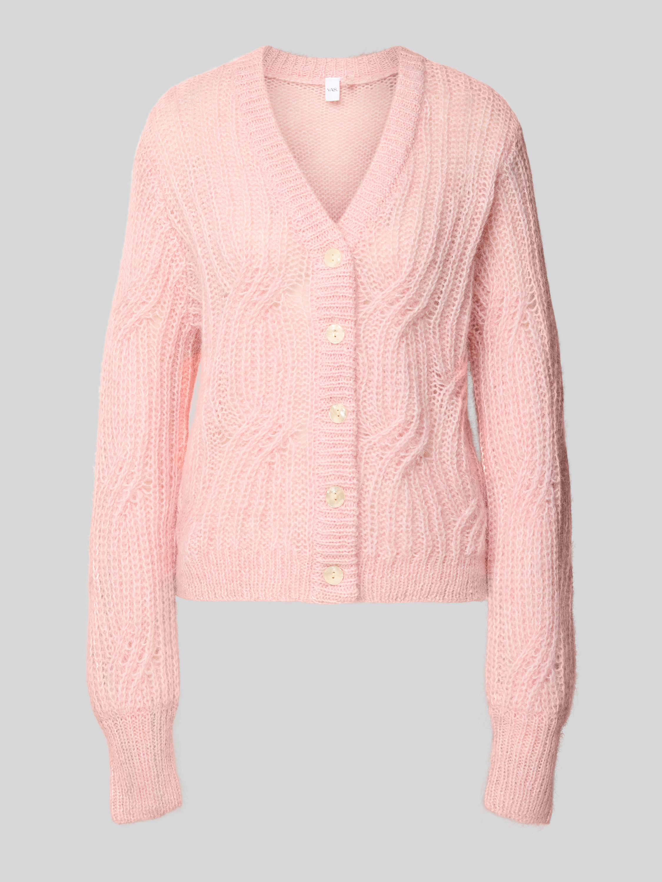 Kardigan z dekoltem w serek i dodatkiem wełny z alpaki model ‘ZUMA’ - różowy