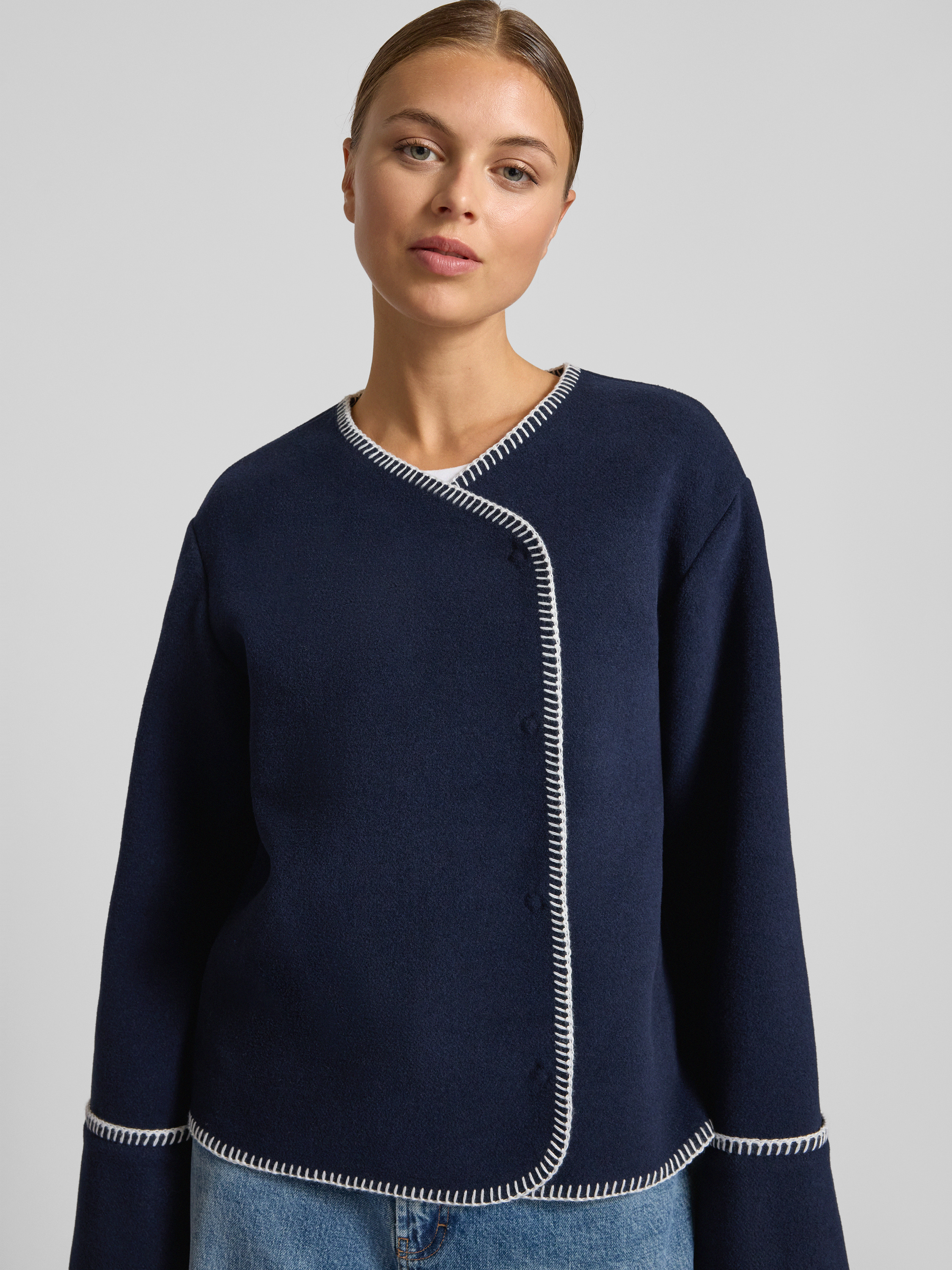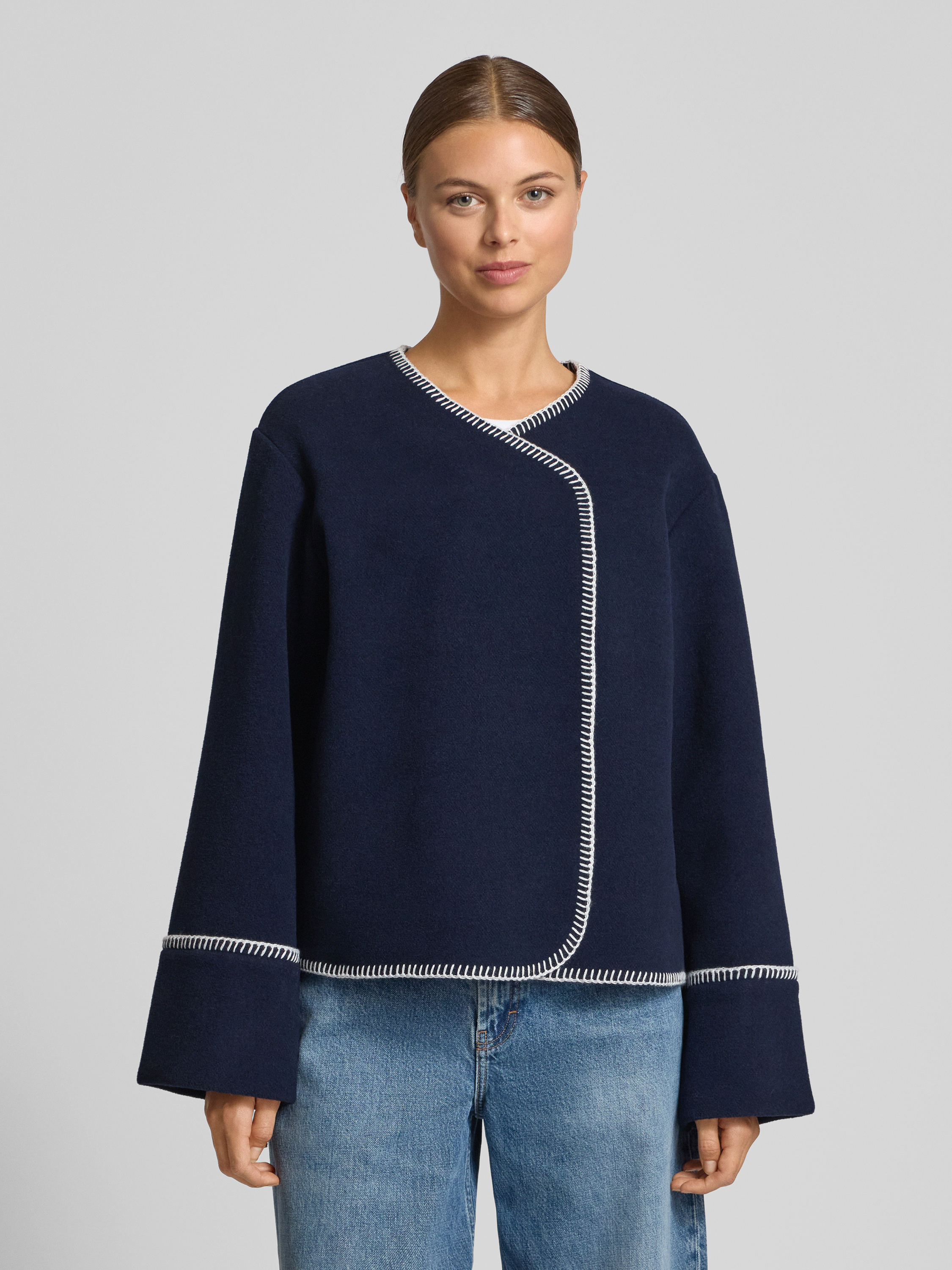 Kurtka o kroju relaxed fit z dodatkiem wełny model ‘VICCO’ - granatowy