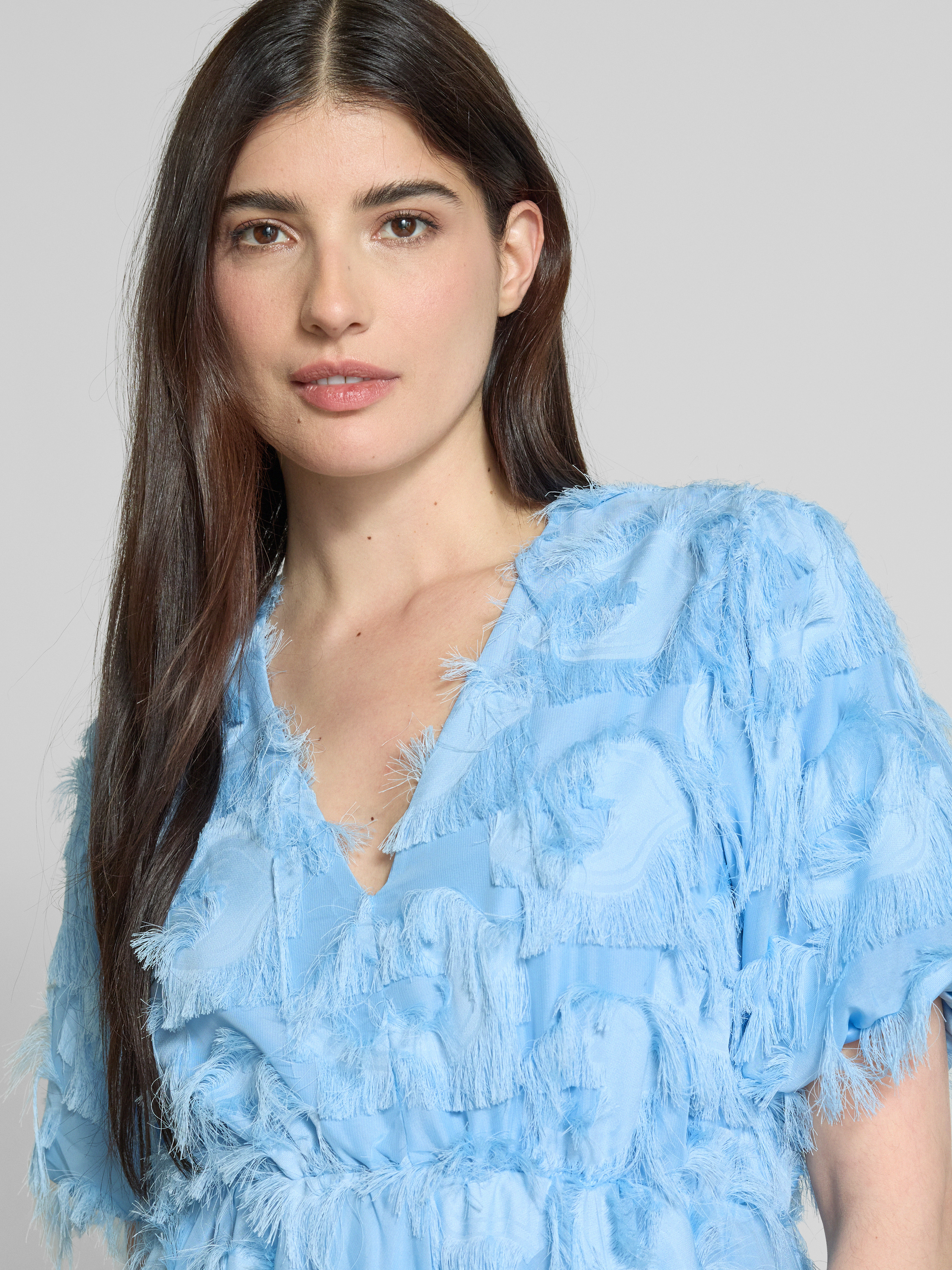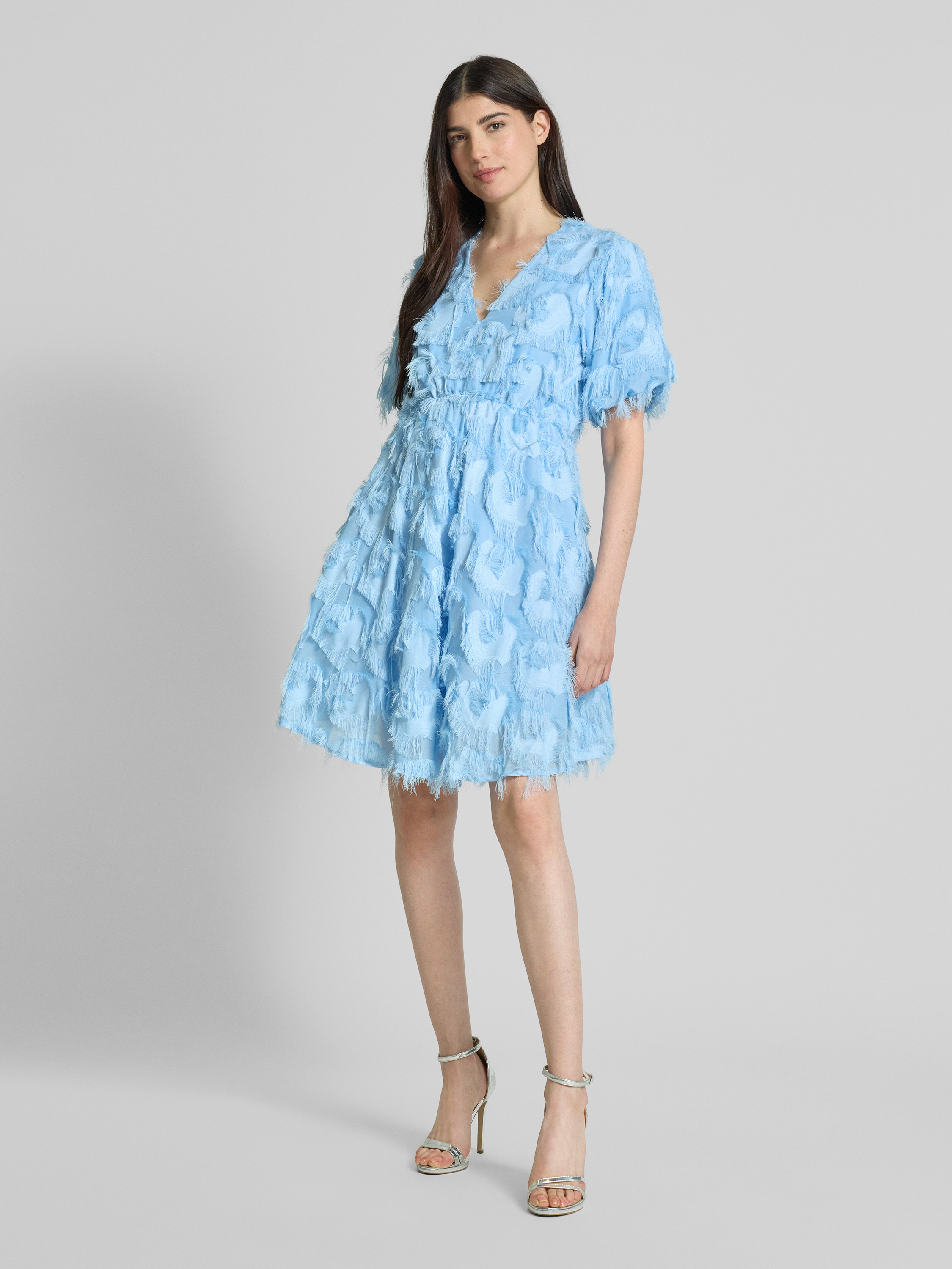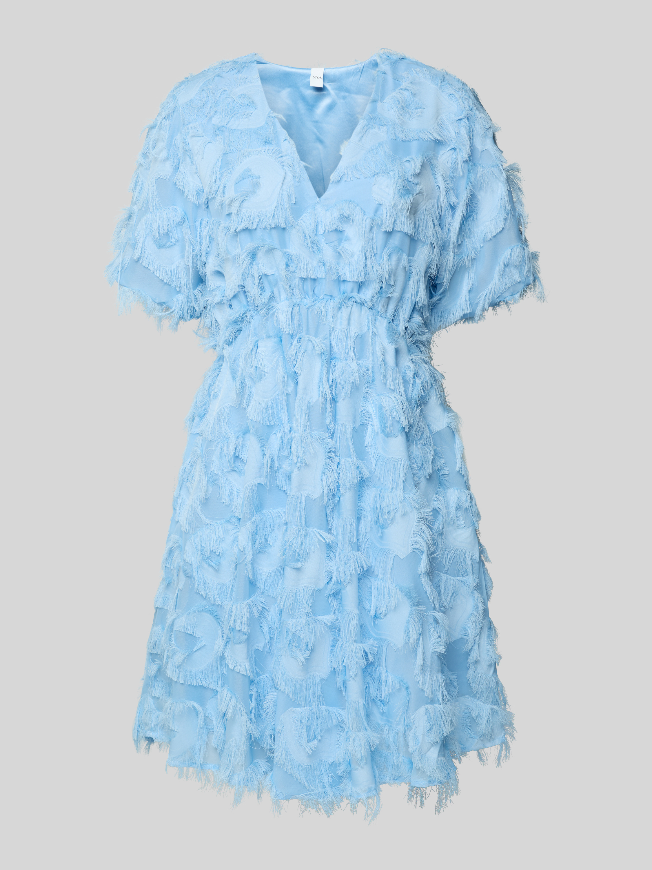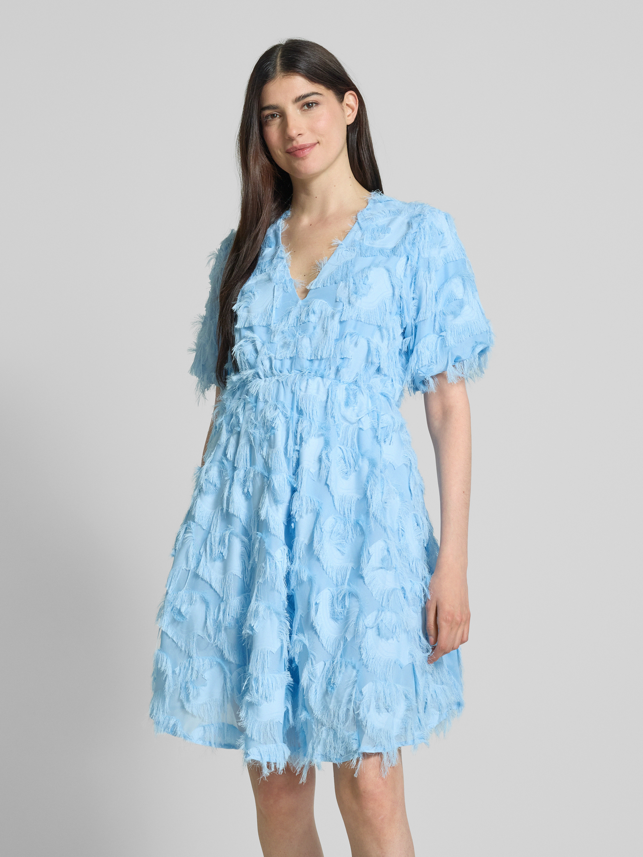 Sukienka koktajlowa o długości do kolan z dekoltem w serek model ‘PAZYLLA’ - jasnoniebieski