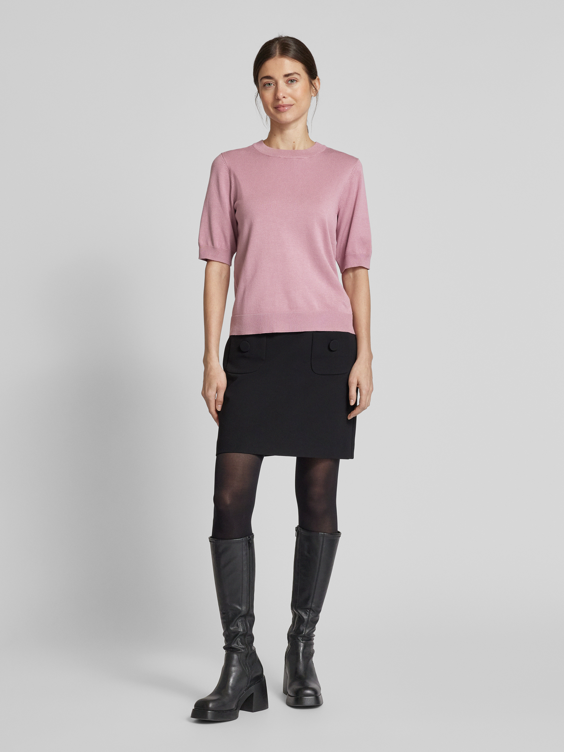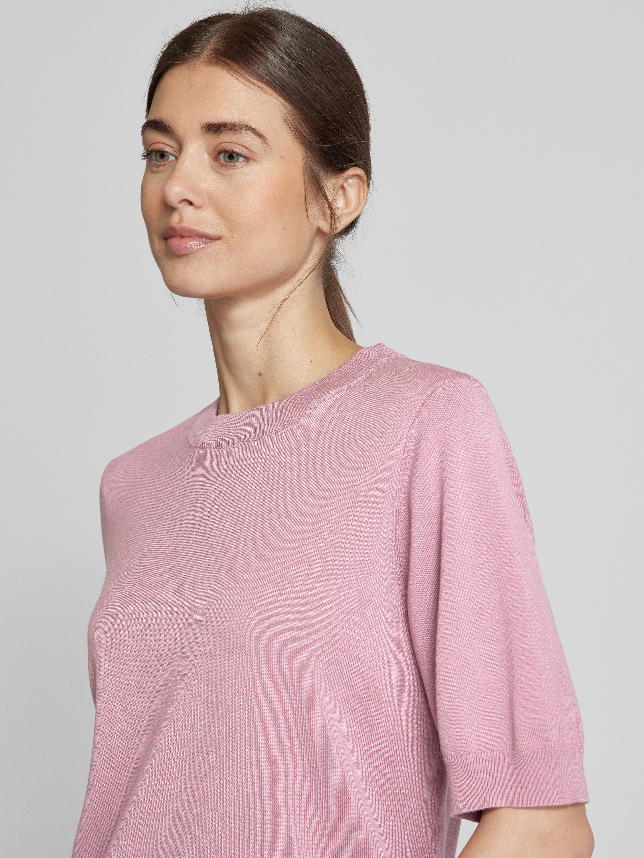 Sweter z dzianiny z rękawem o dł. 1/2 model ‘LENA’ - różowawy