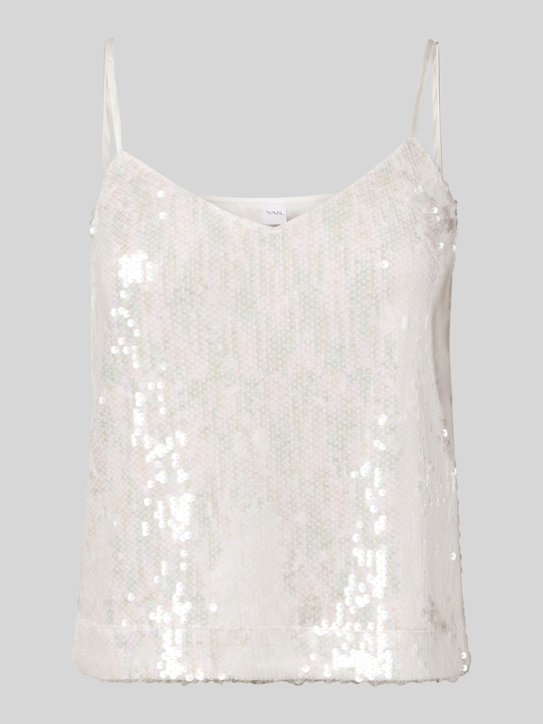 Top krótki na ramiączkach z cekinami model ‘SEQUINA’ - złamany biały