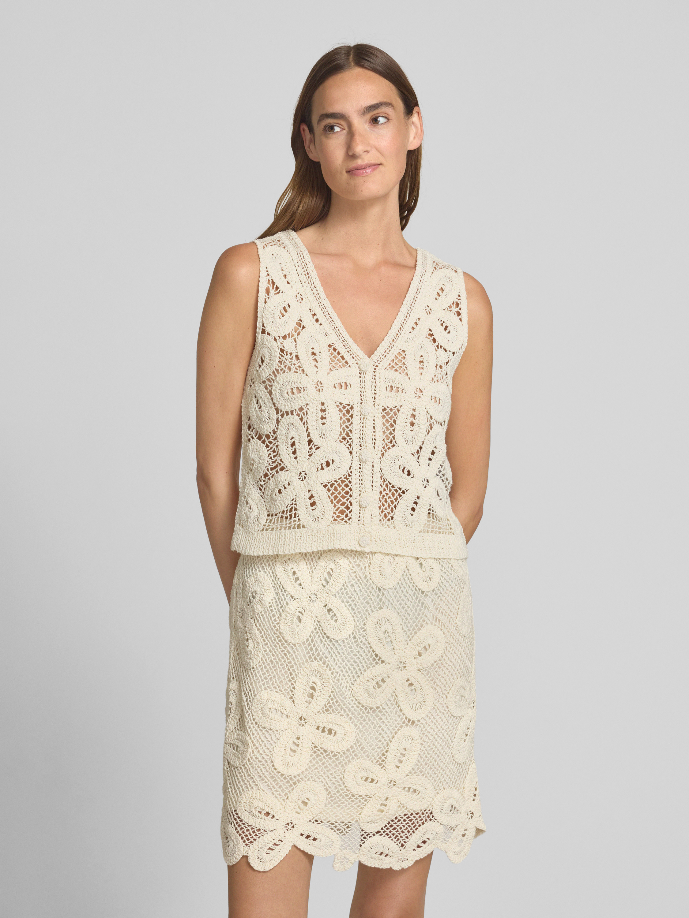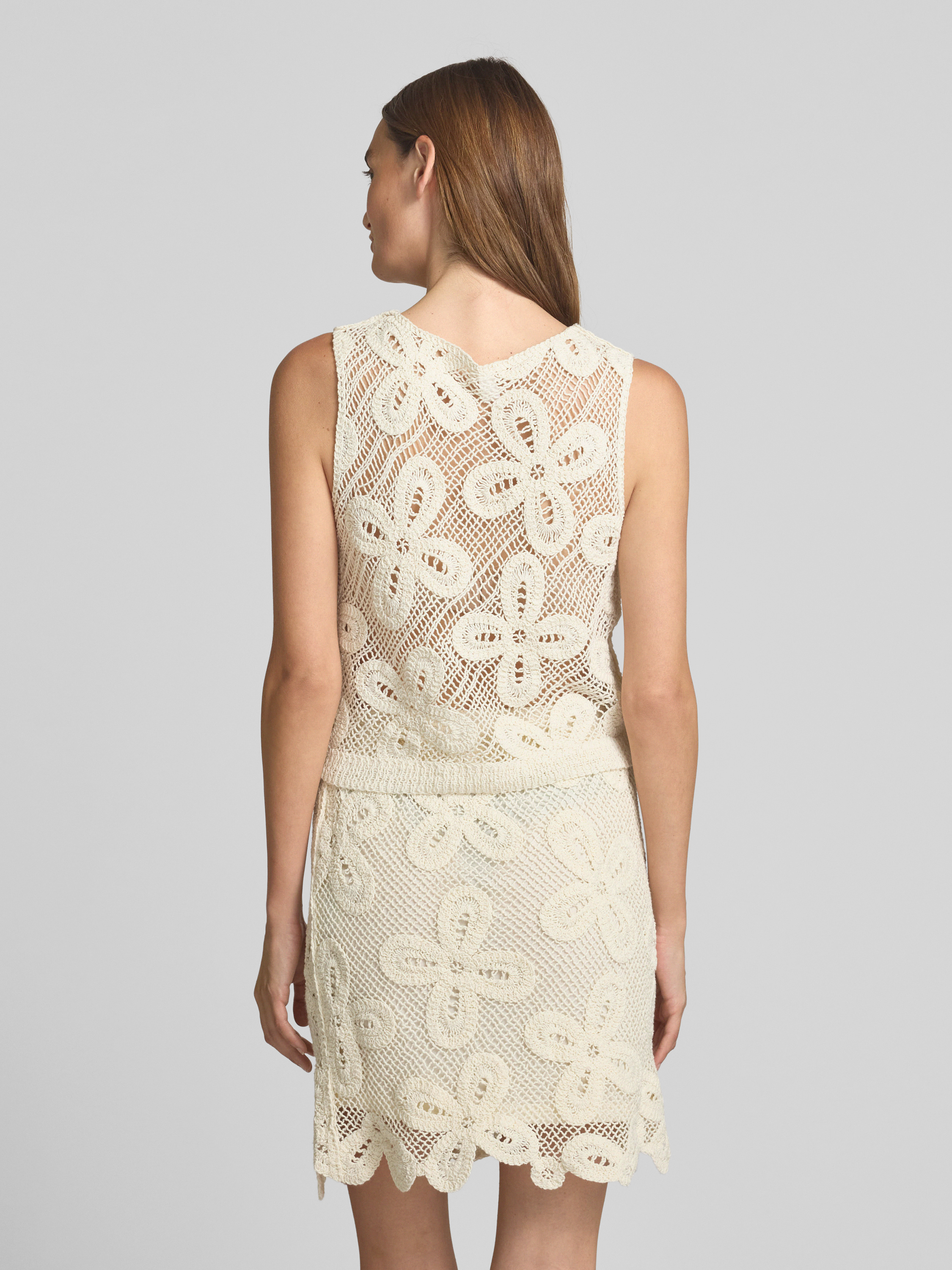 Top z imitacji dzianiny z ażurowym wzorem model ‘ANULA’ - złamany biały