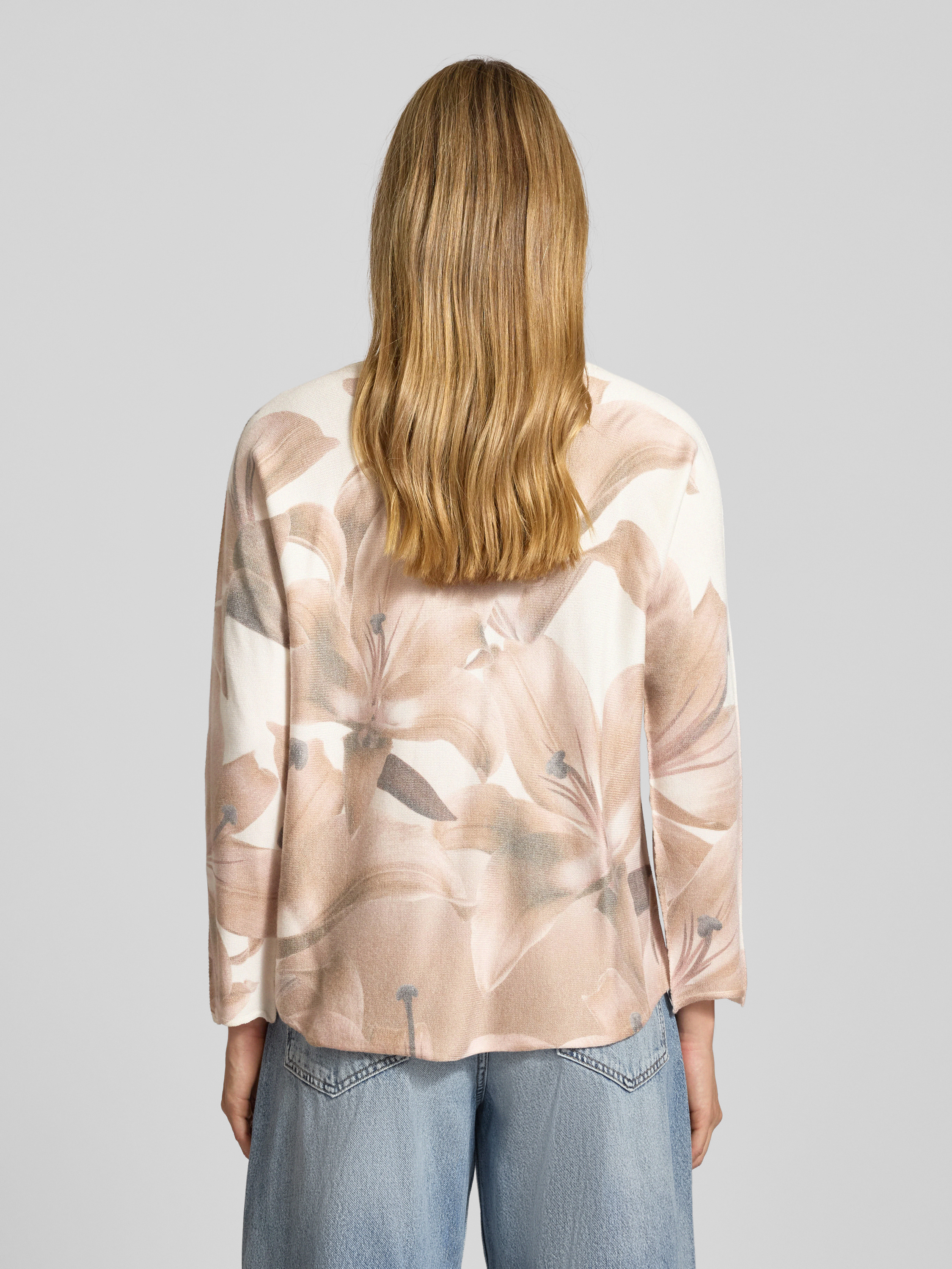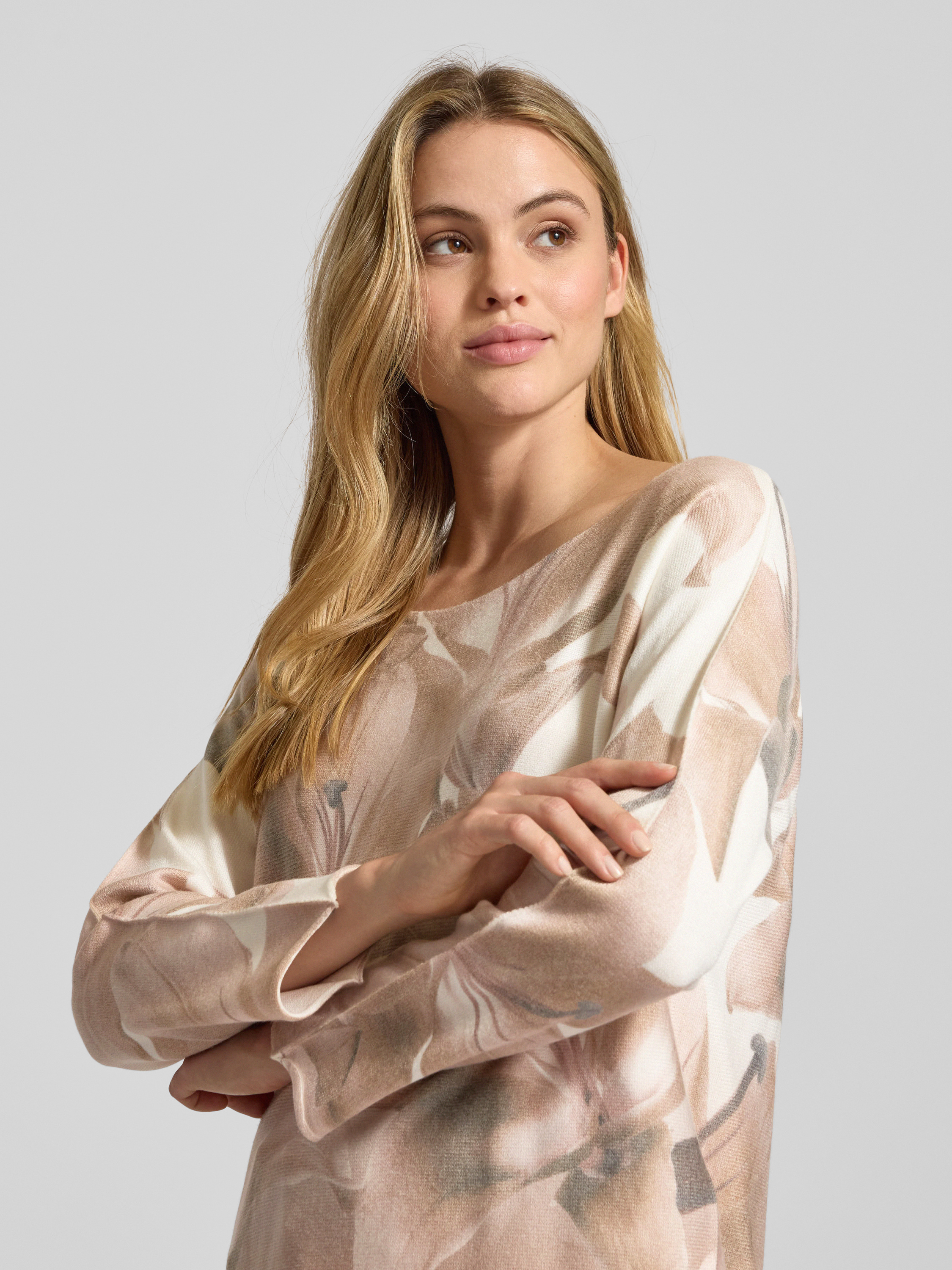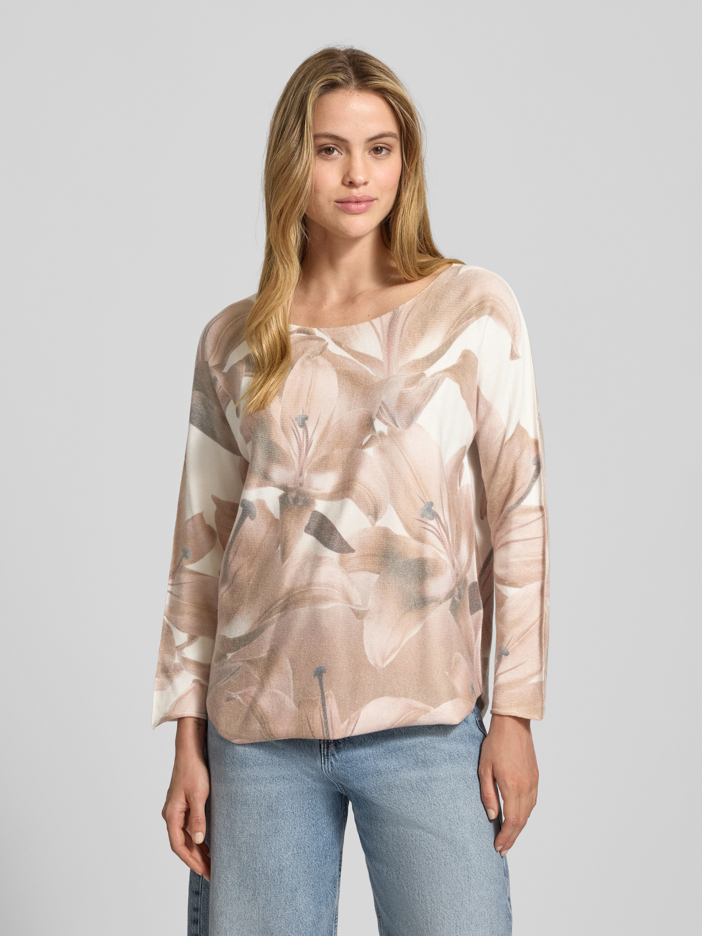 Bluzka z mieszanki wiskozy z długim rękawem i okrągłym dekoltem - szarobrązowy