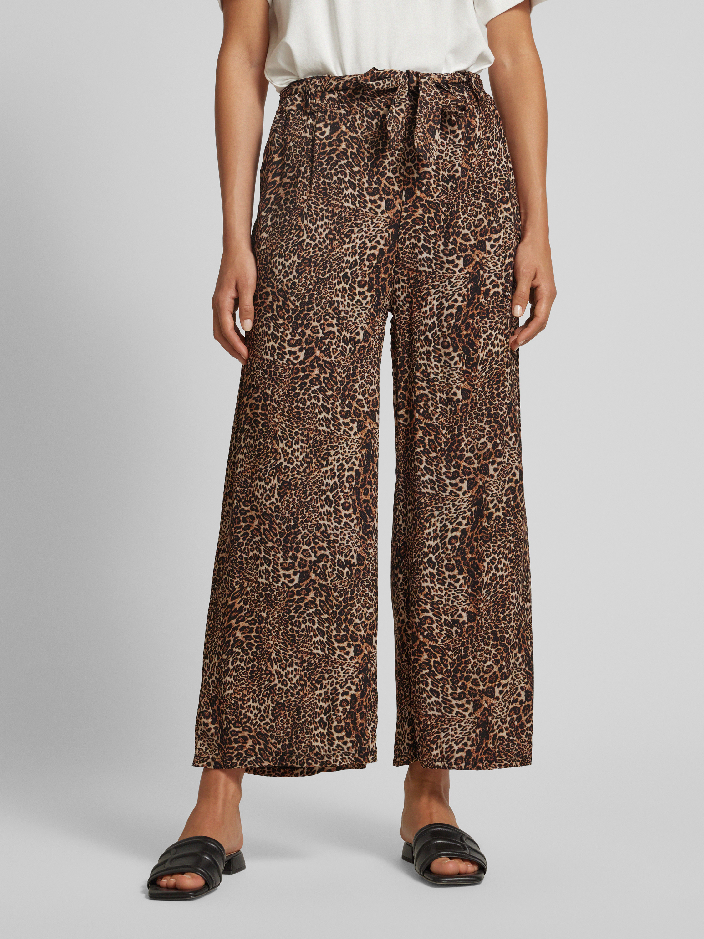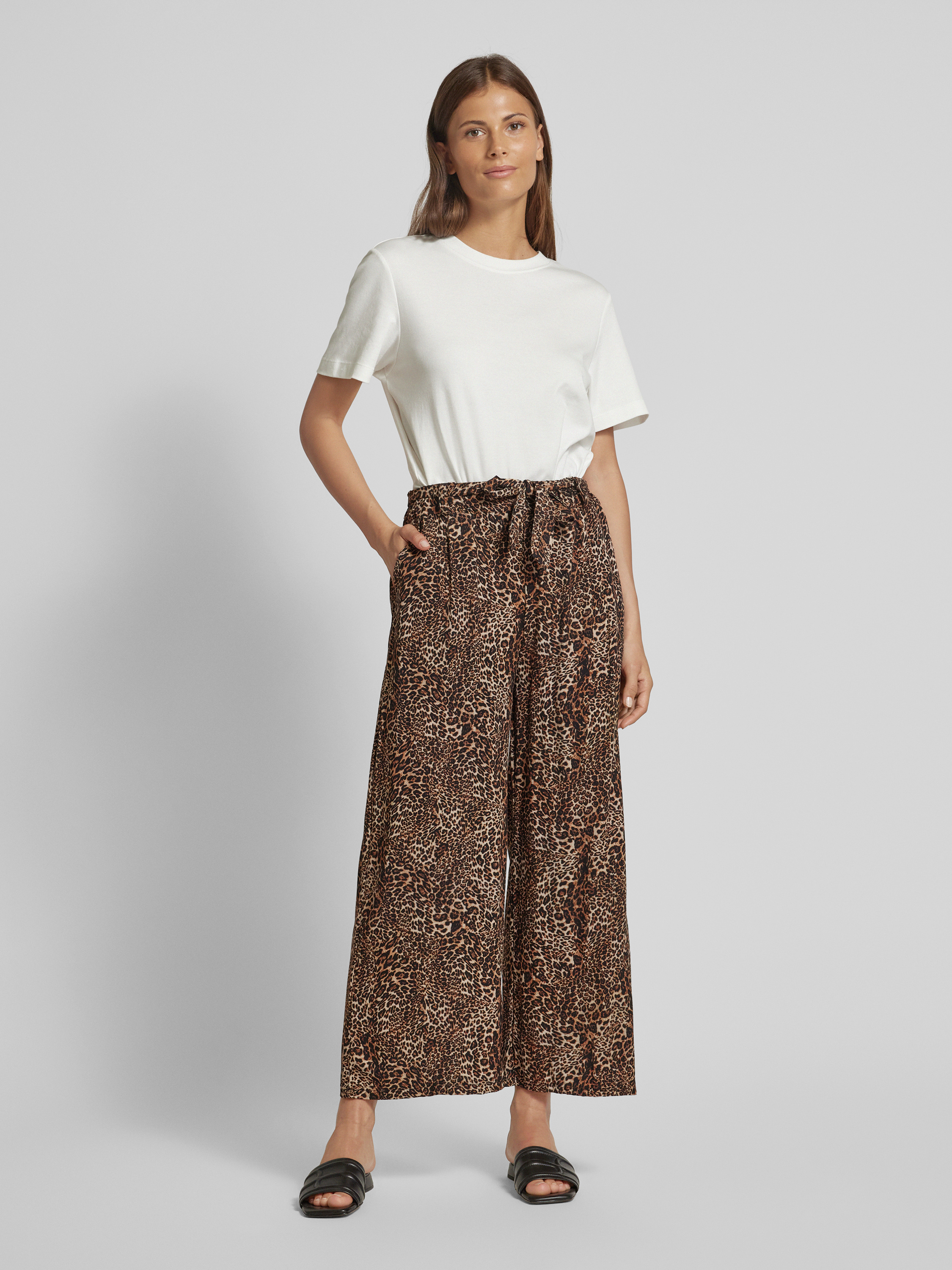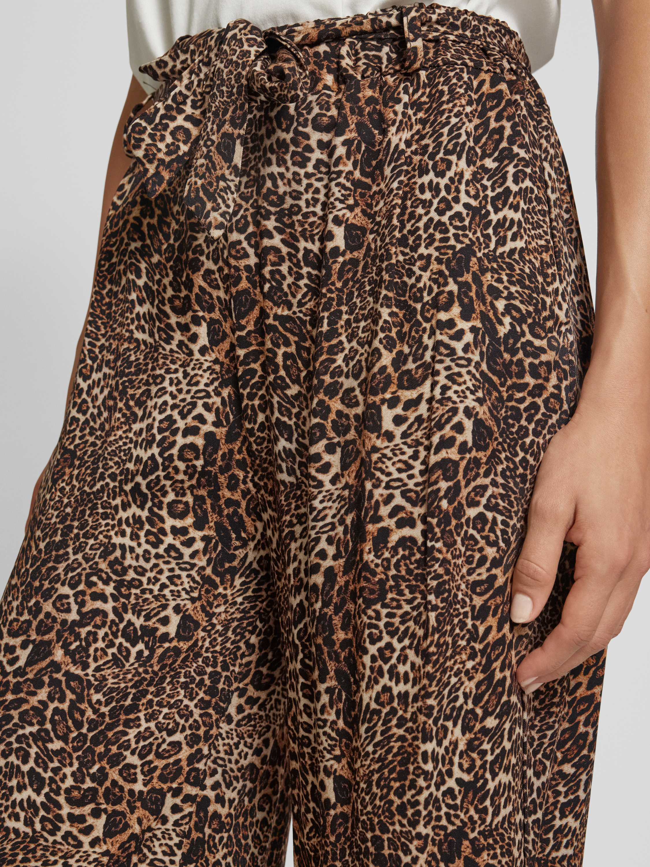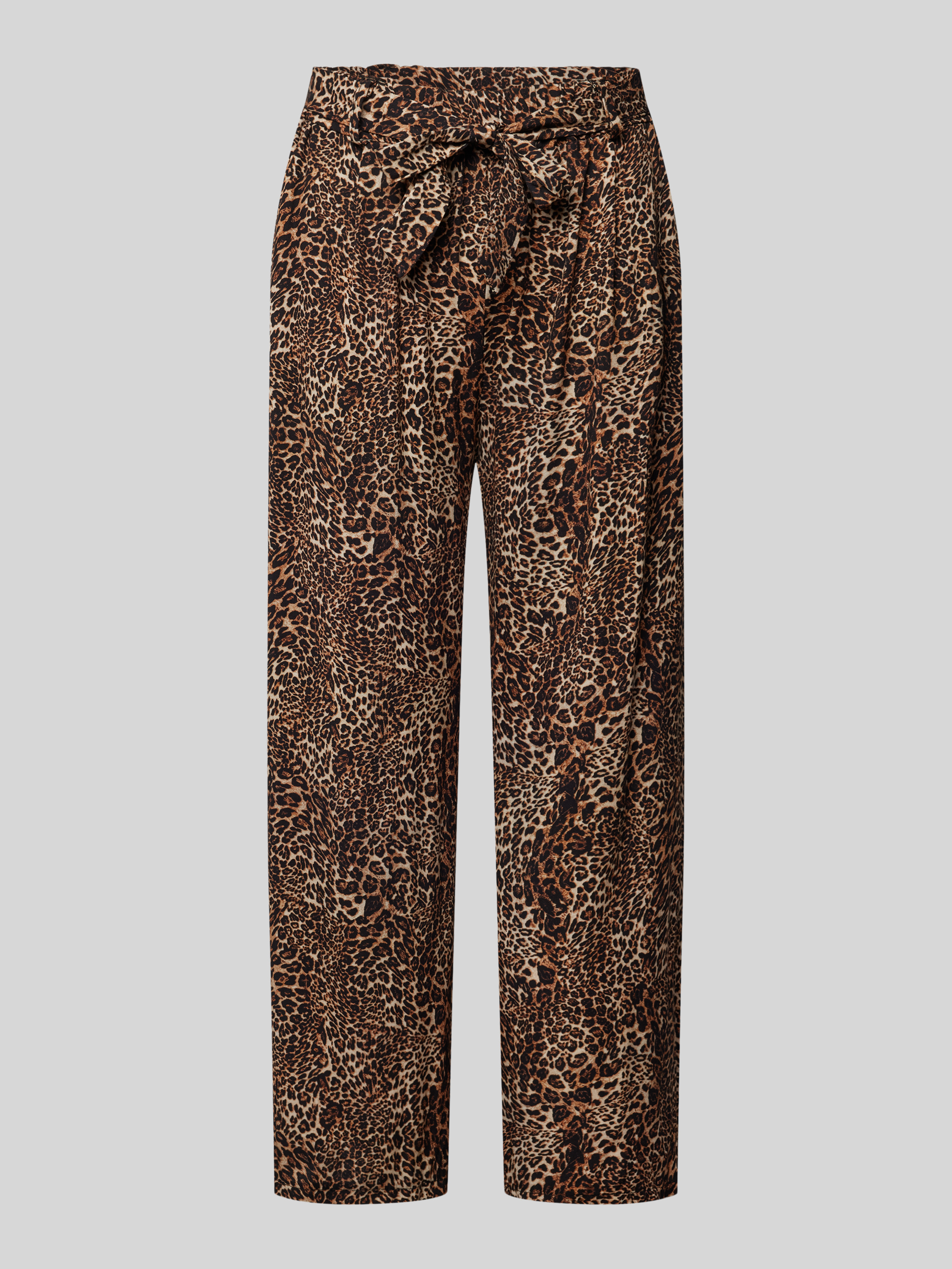 Spodnie materiałowe o kroju regular fit z wiązanym paskiem model ‘Is44a’ - beżowy