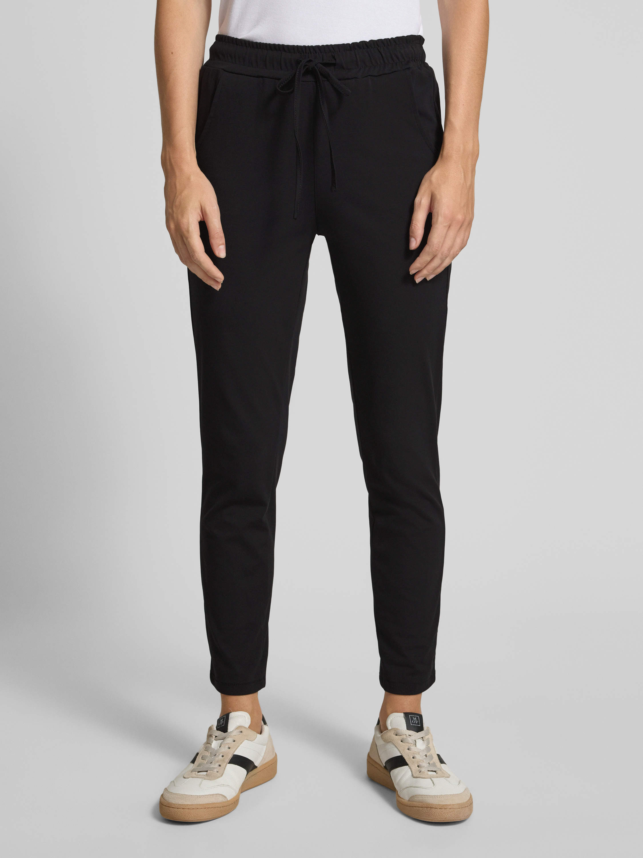 Spodnie materiałowe o kroju skinny fit z elastycznym pasem - czarny