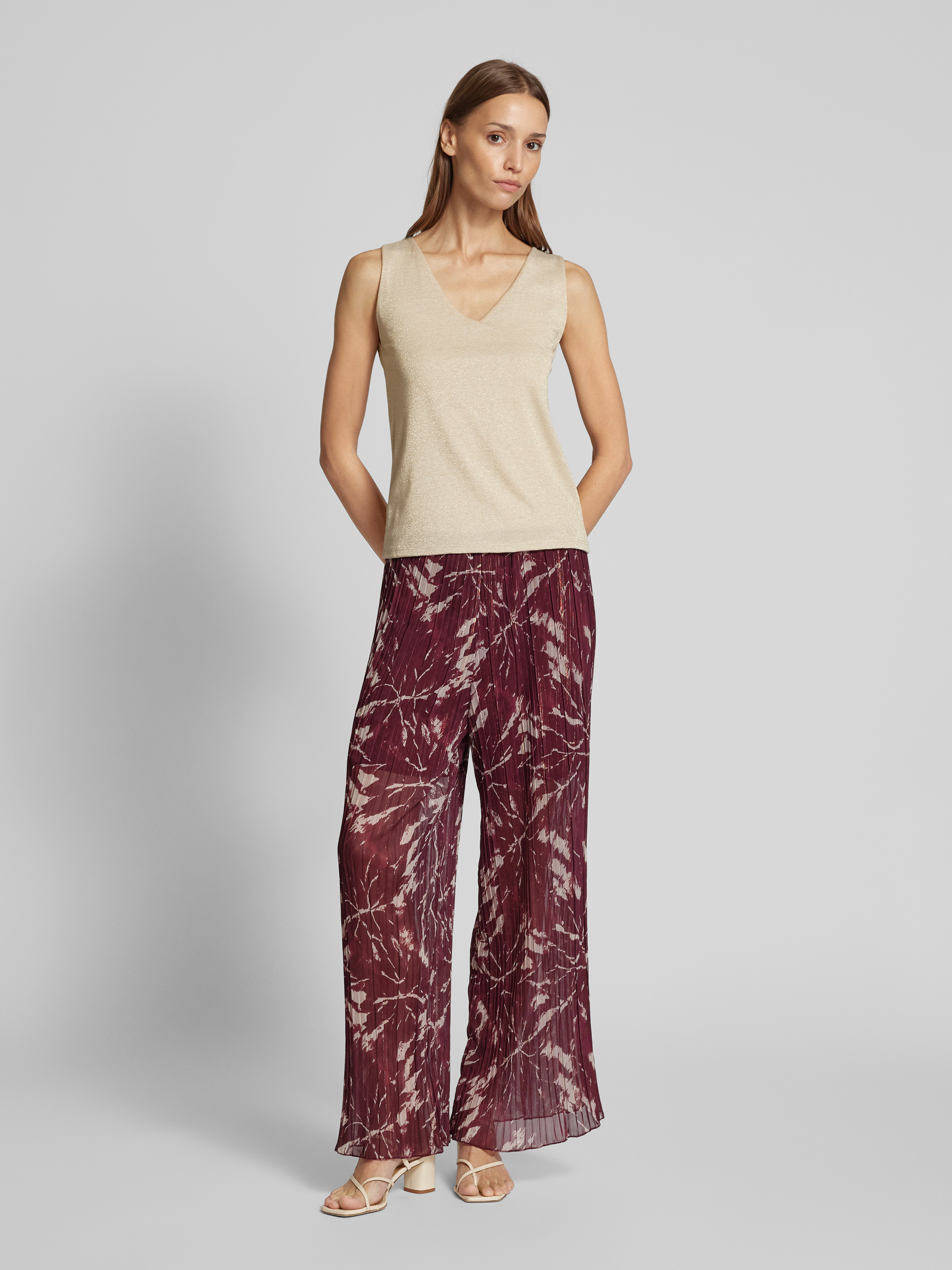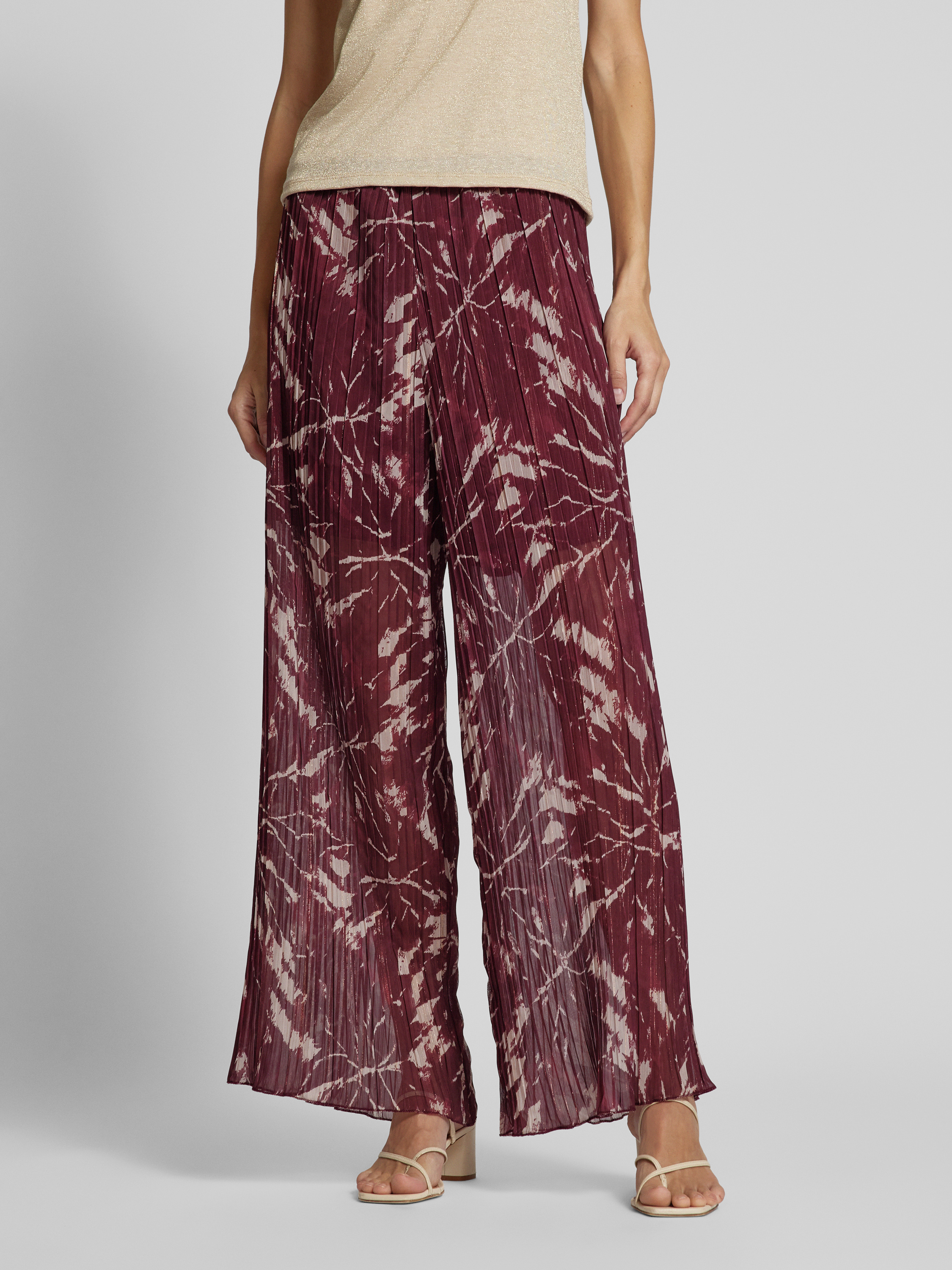Spodnie materiałowe o rozkloszowanym kroju z plisami - czerwony