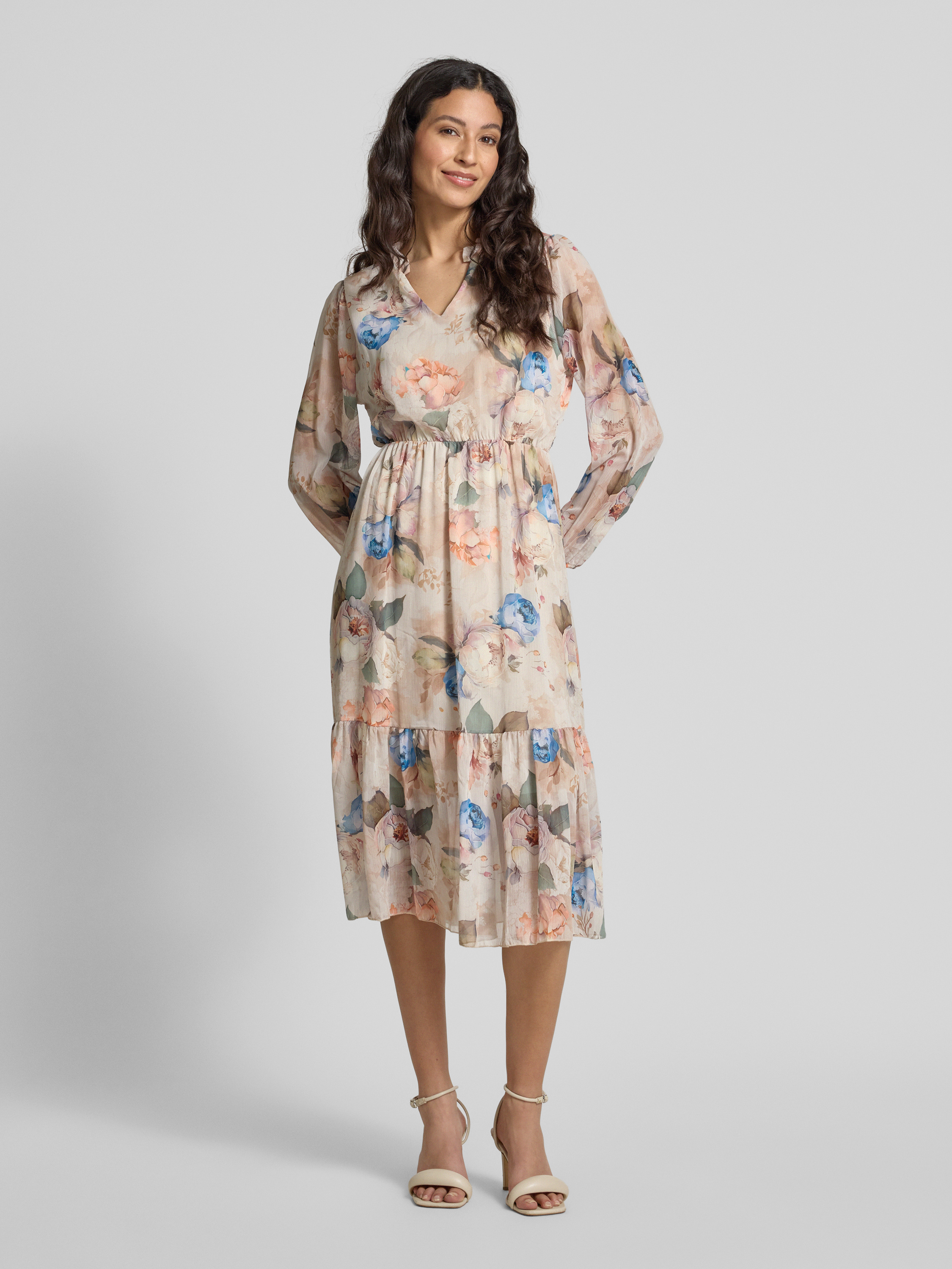Sukienka midi z efektem stopniowania - złamany biały