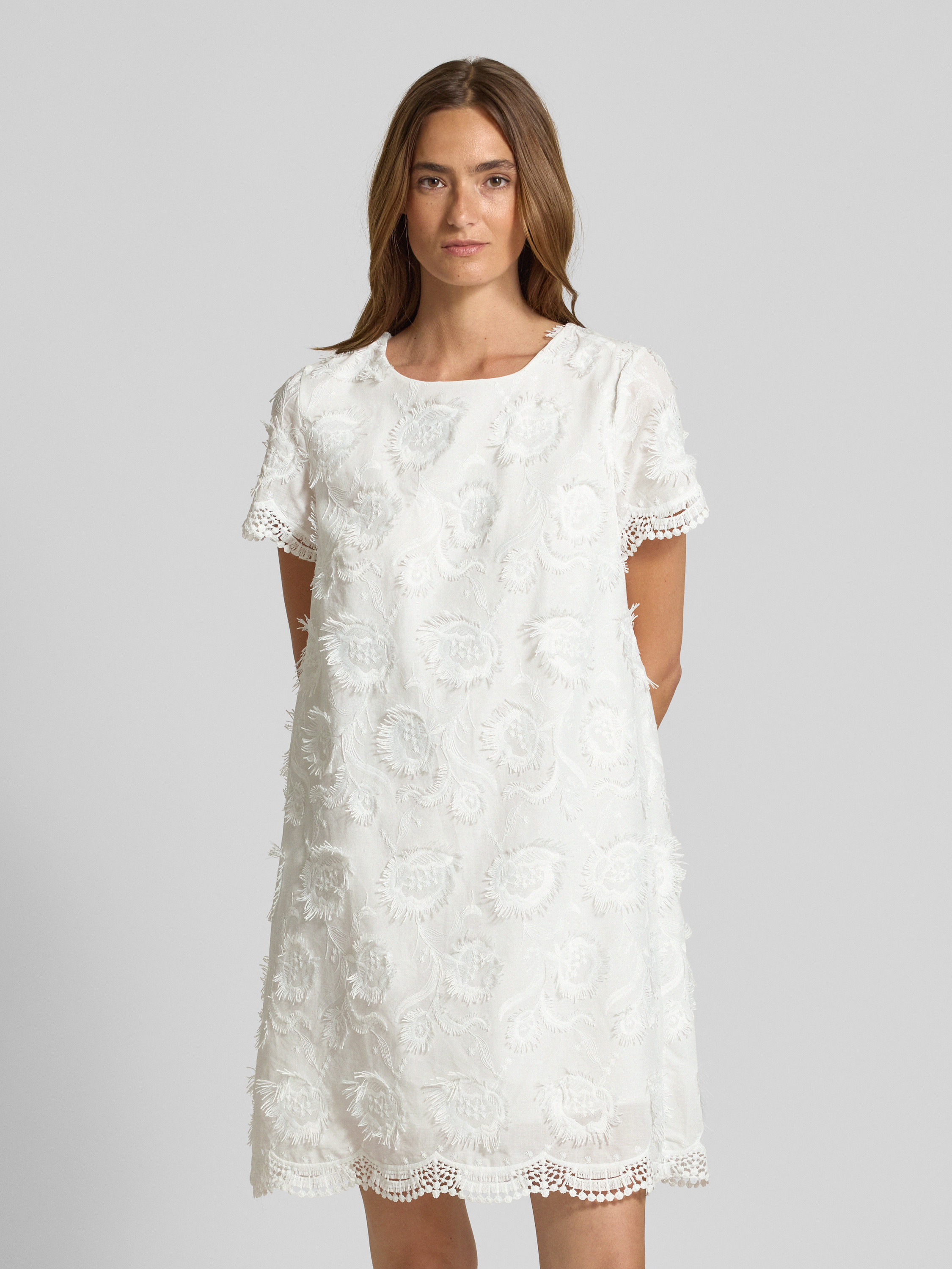 Sukienka mini z koronką szydełkową - biały