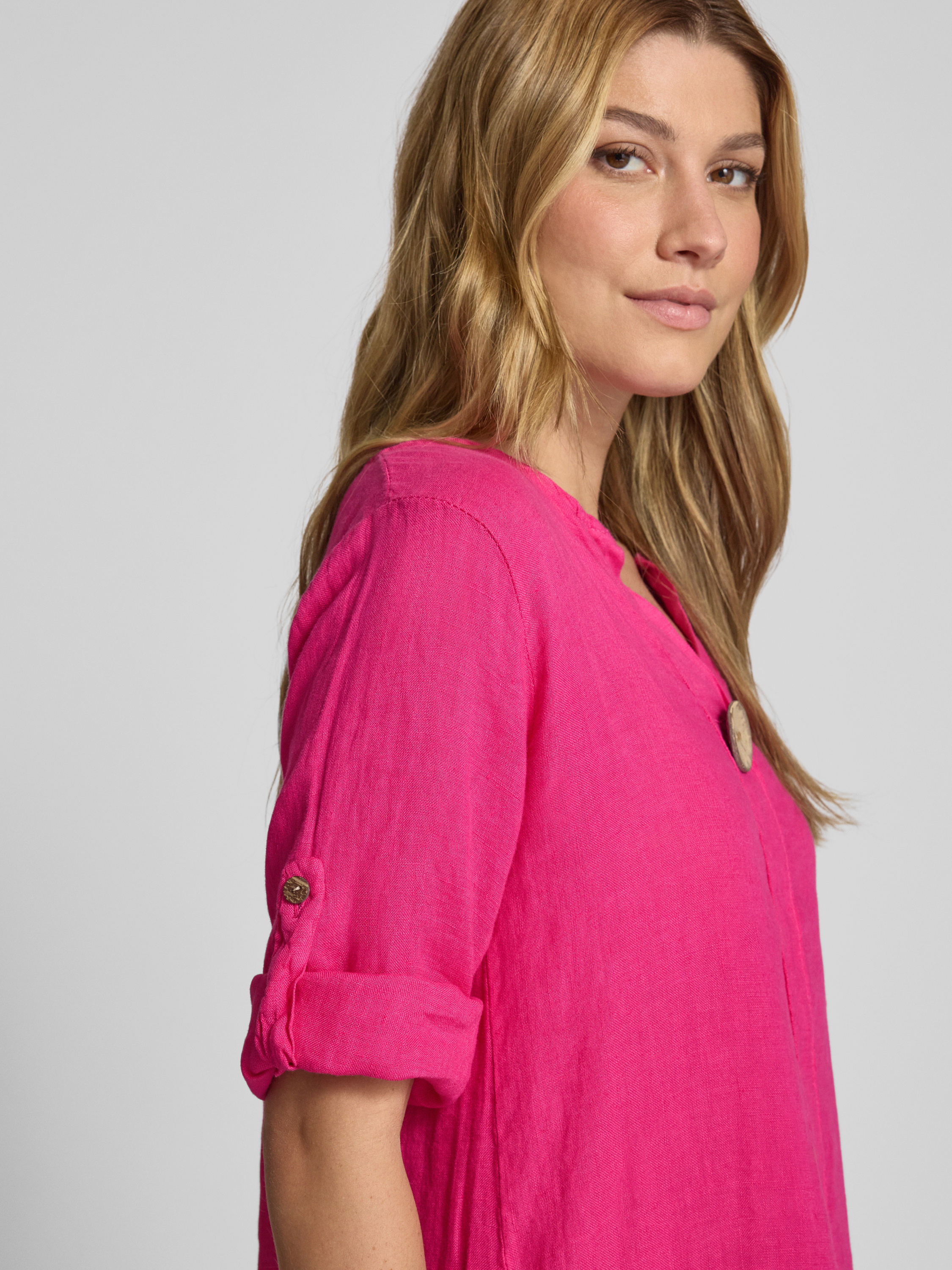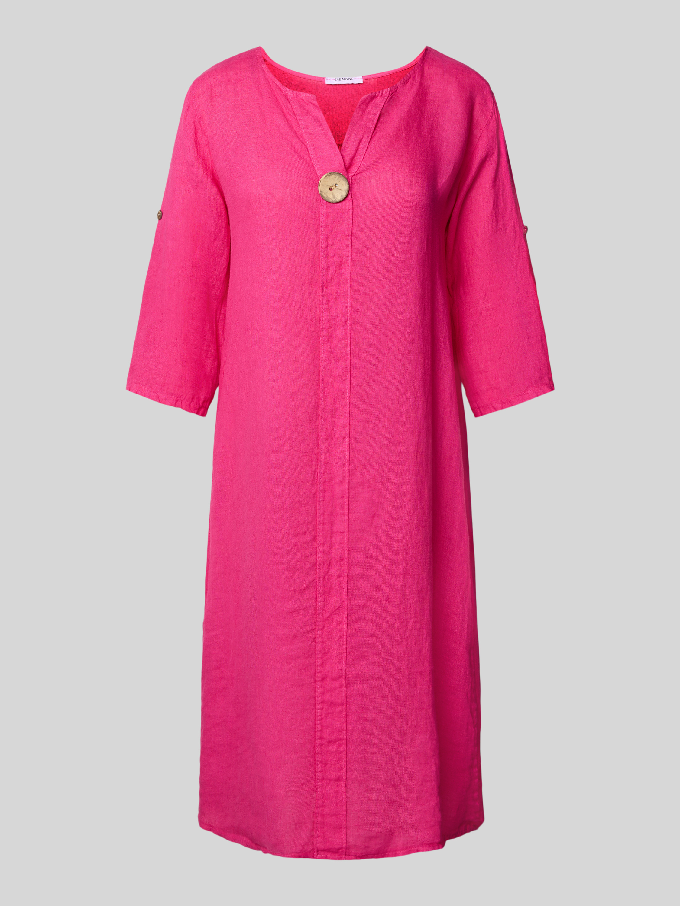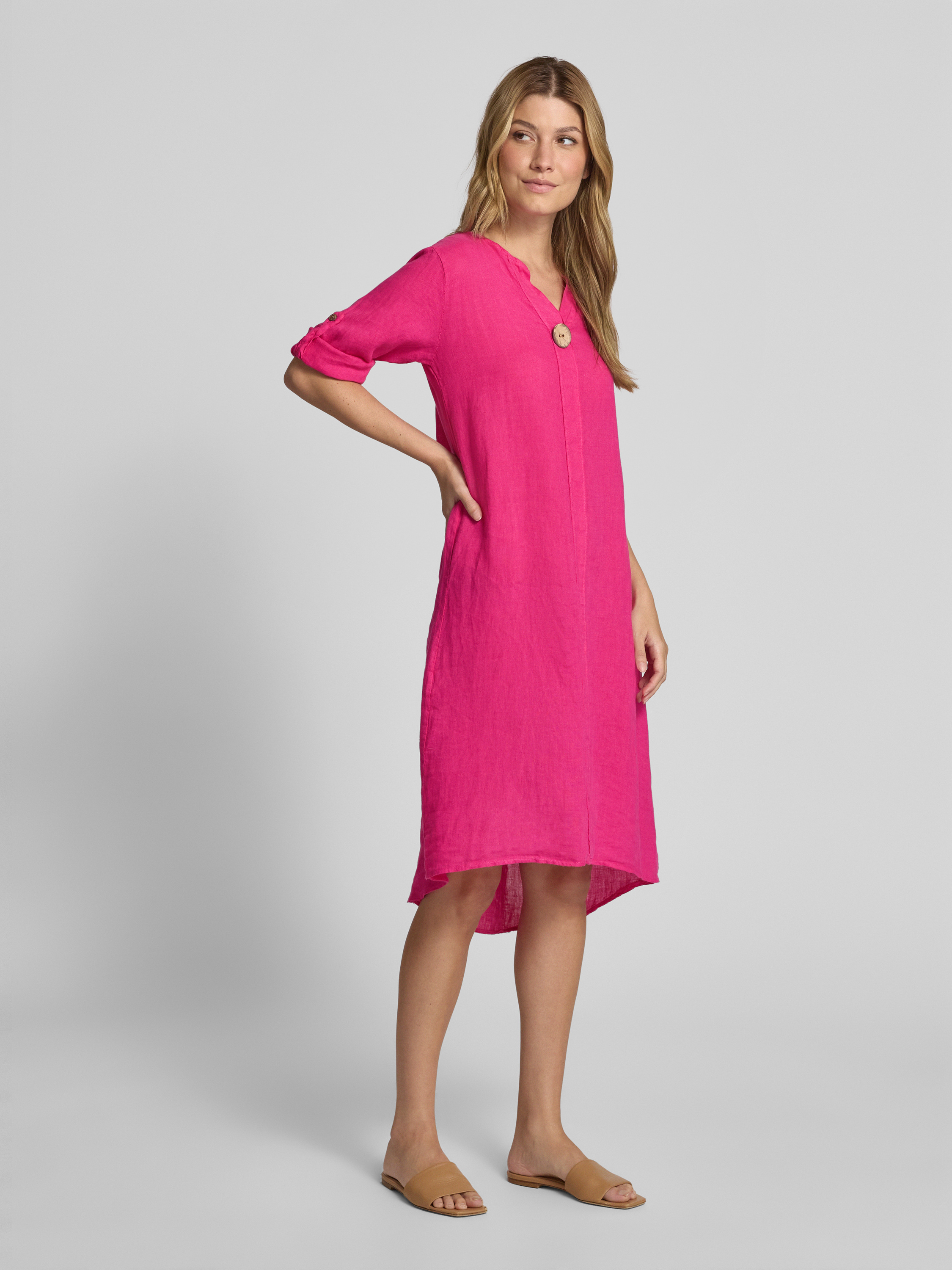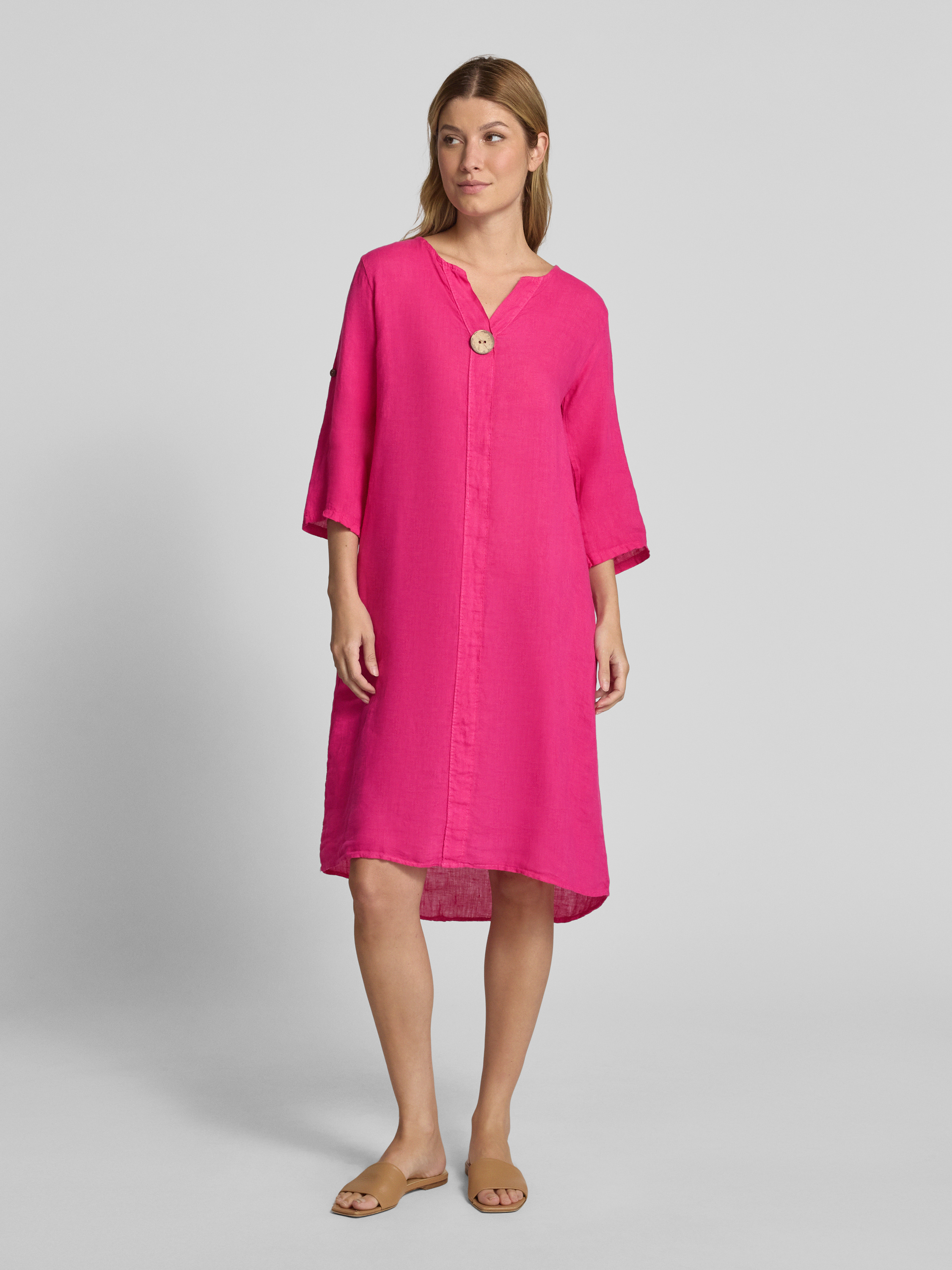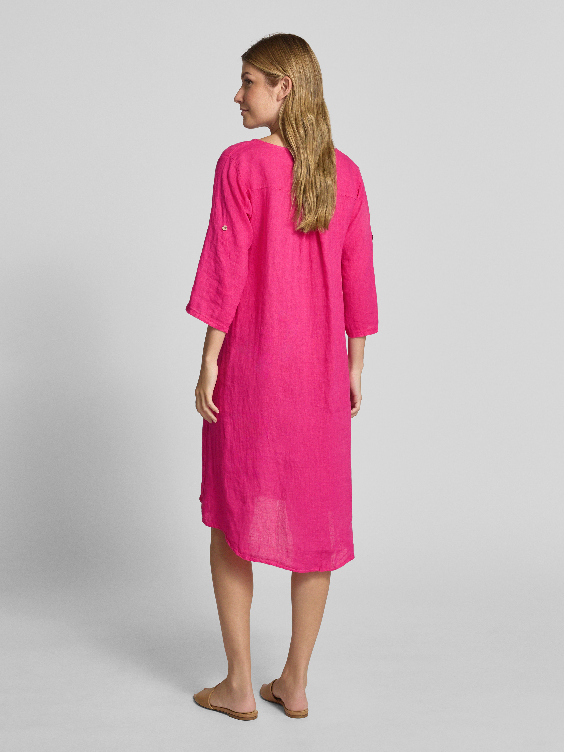 Sukienka o długości do kolan z czystego lnu - mocnoróżowy