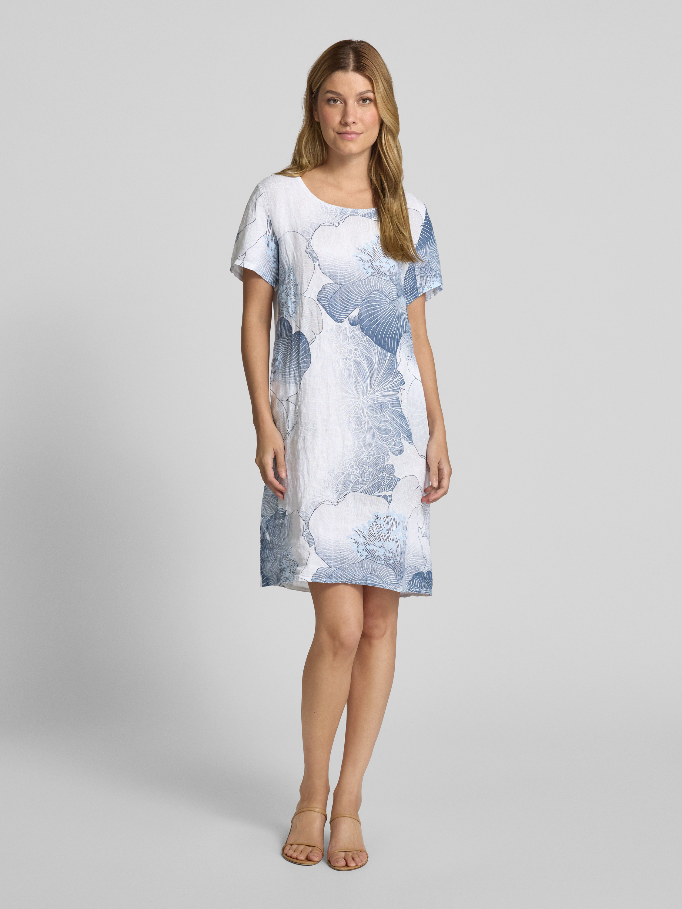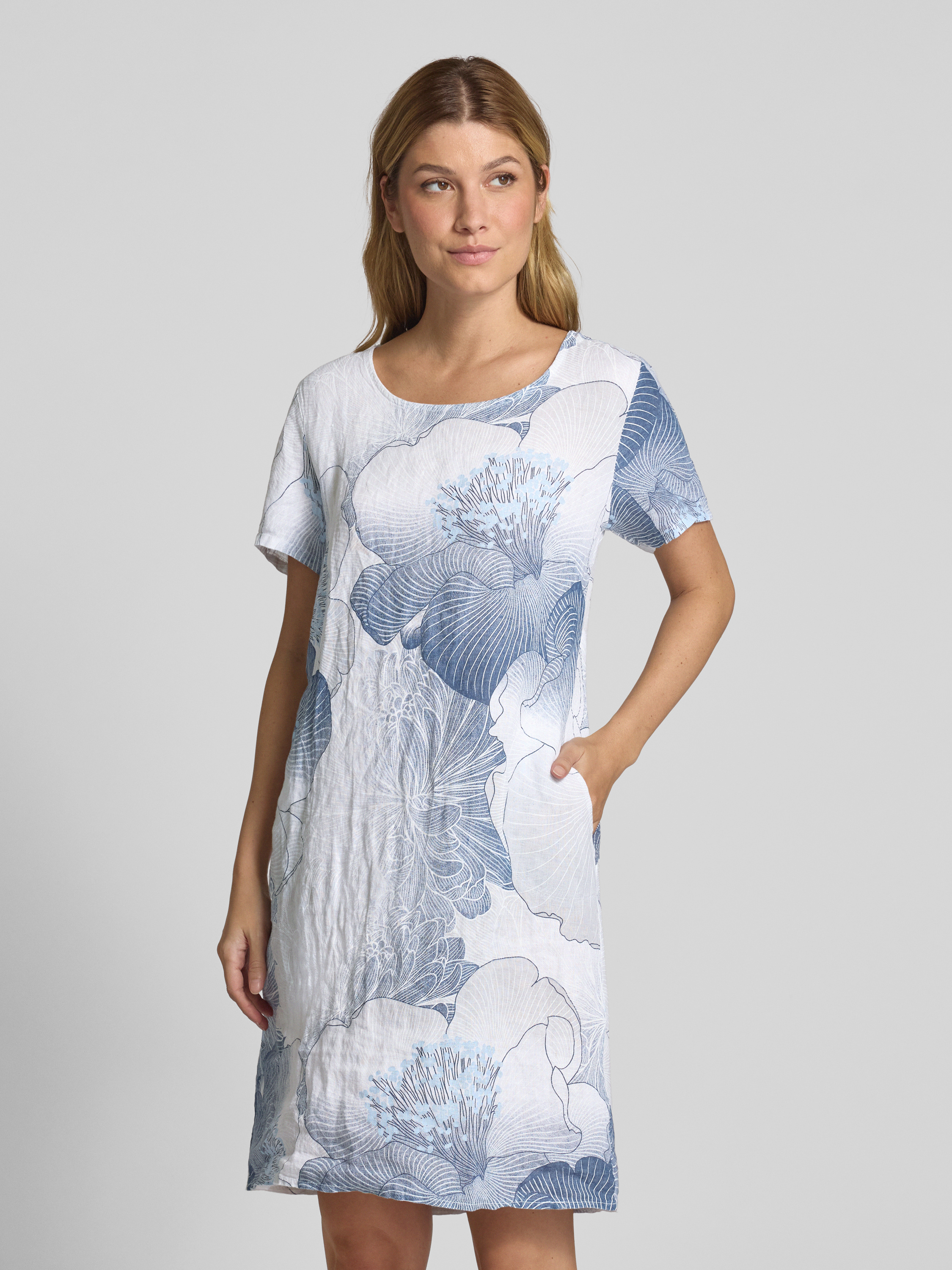 Sukienka o długości do kolan z okrągłym dekoltem - biały