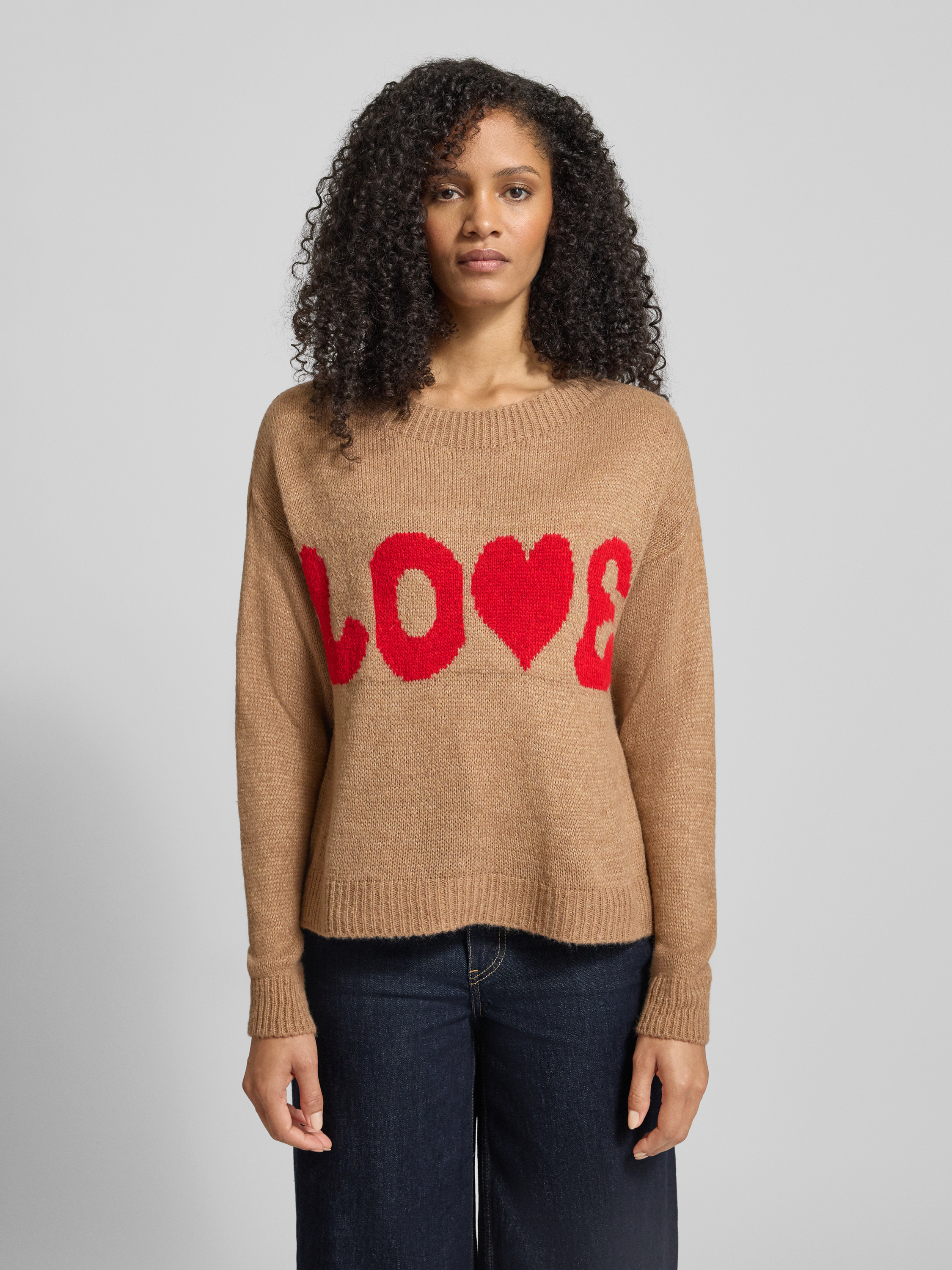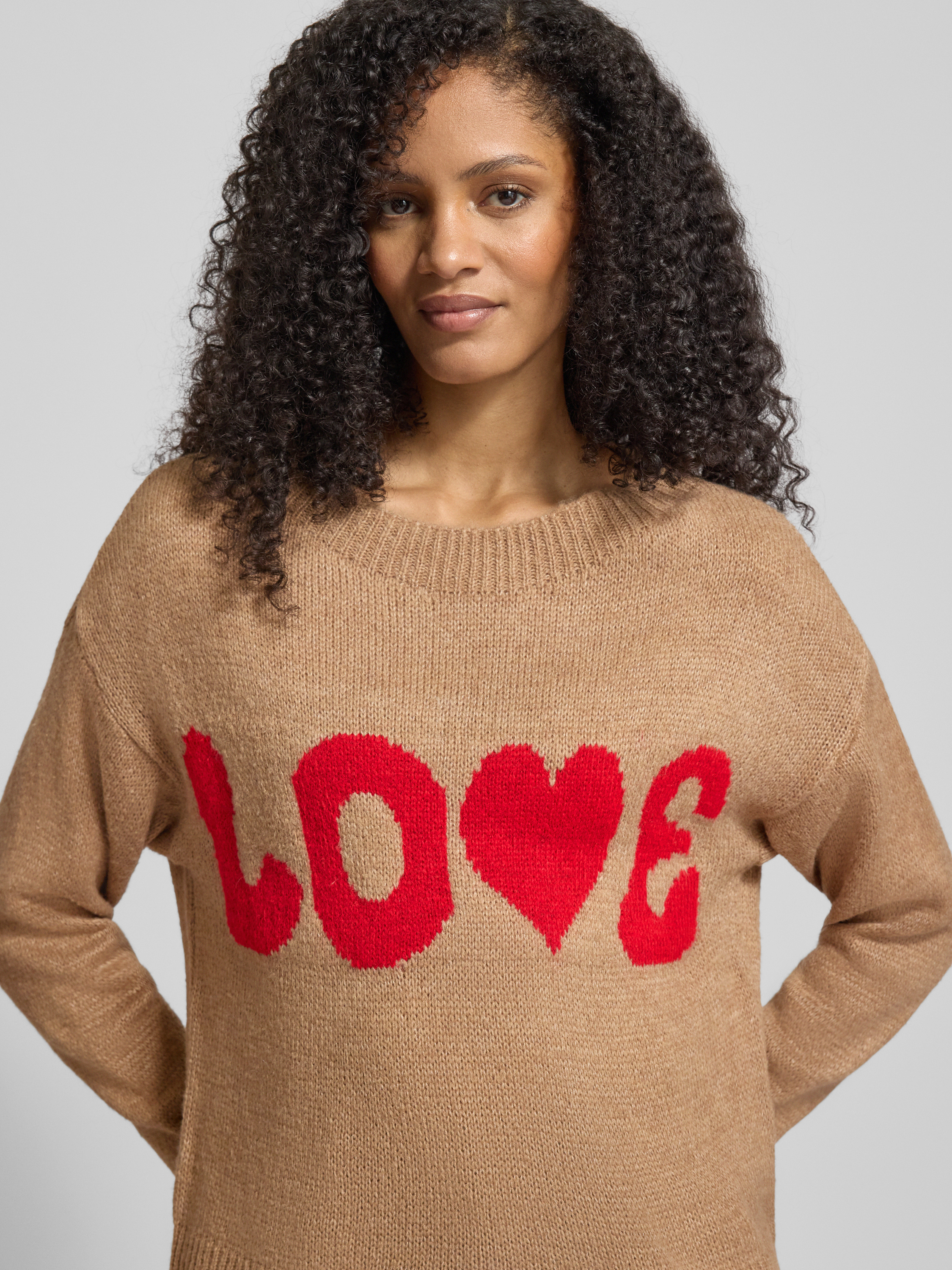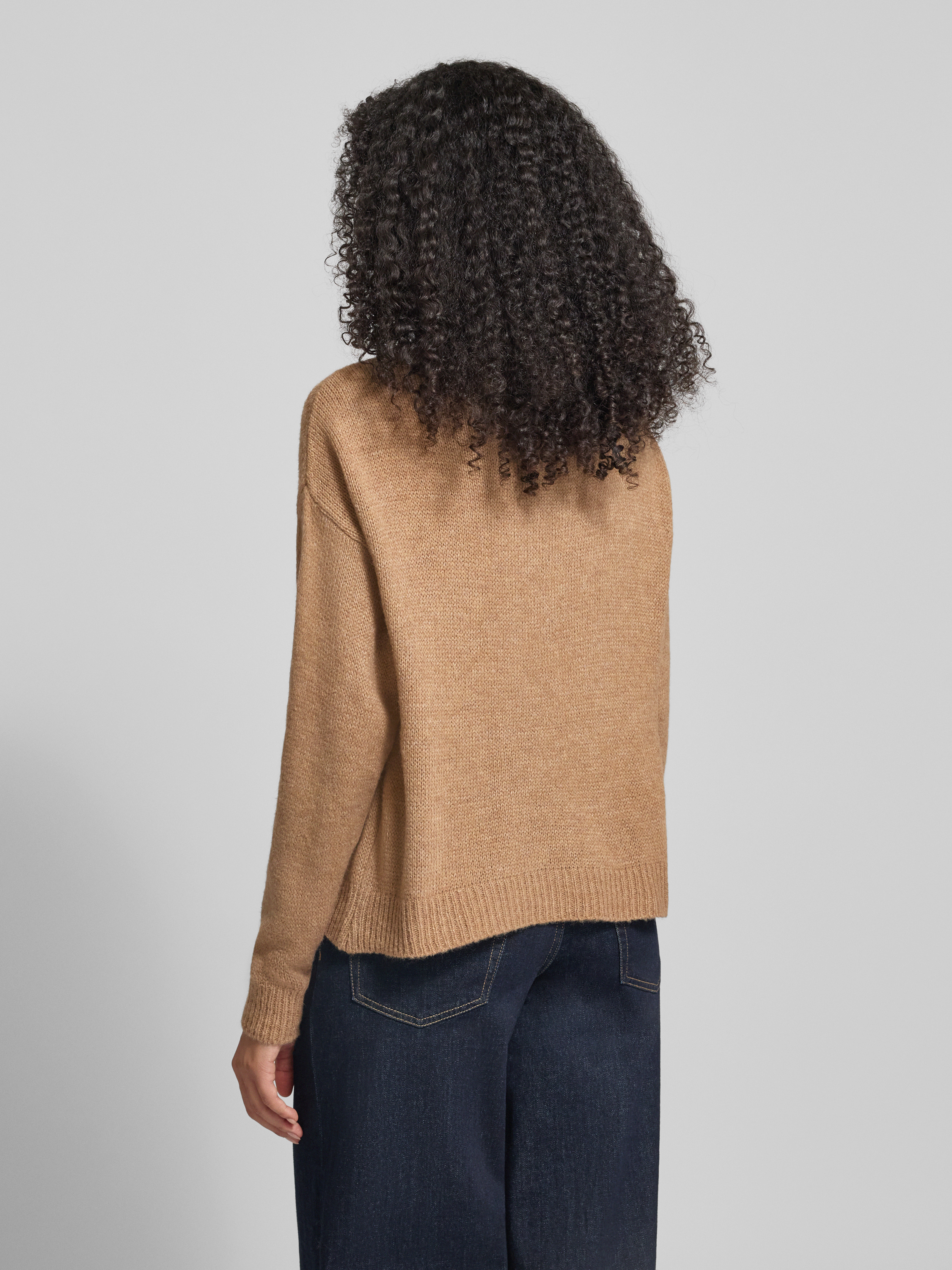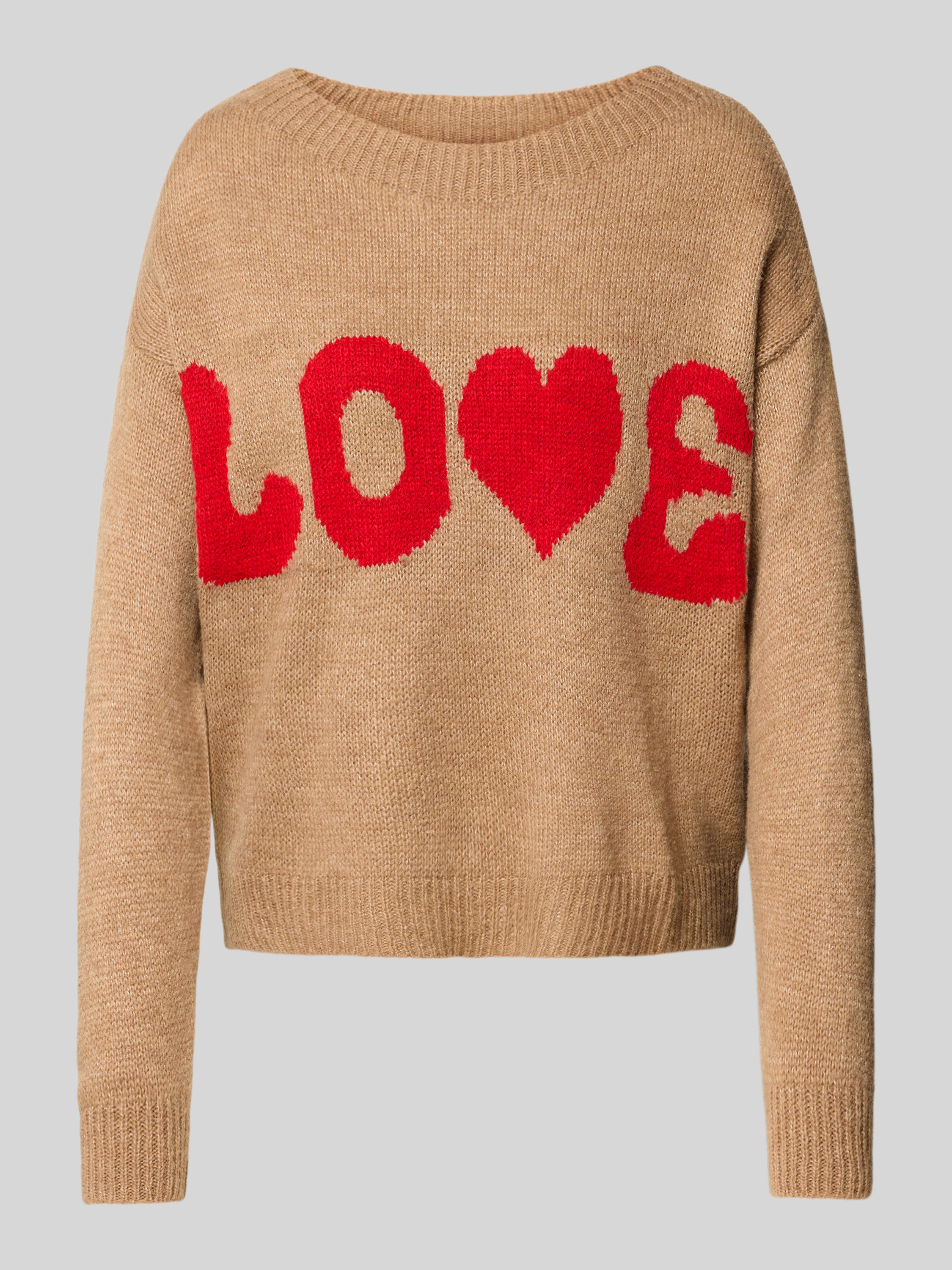 Sweter z dzianiny z dekoltem w łódkę - szarobrązowy
