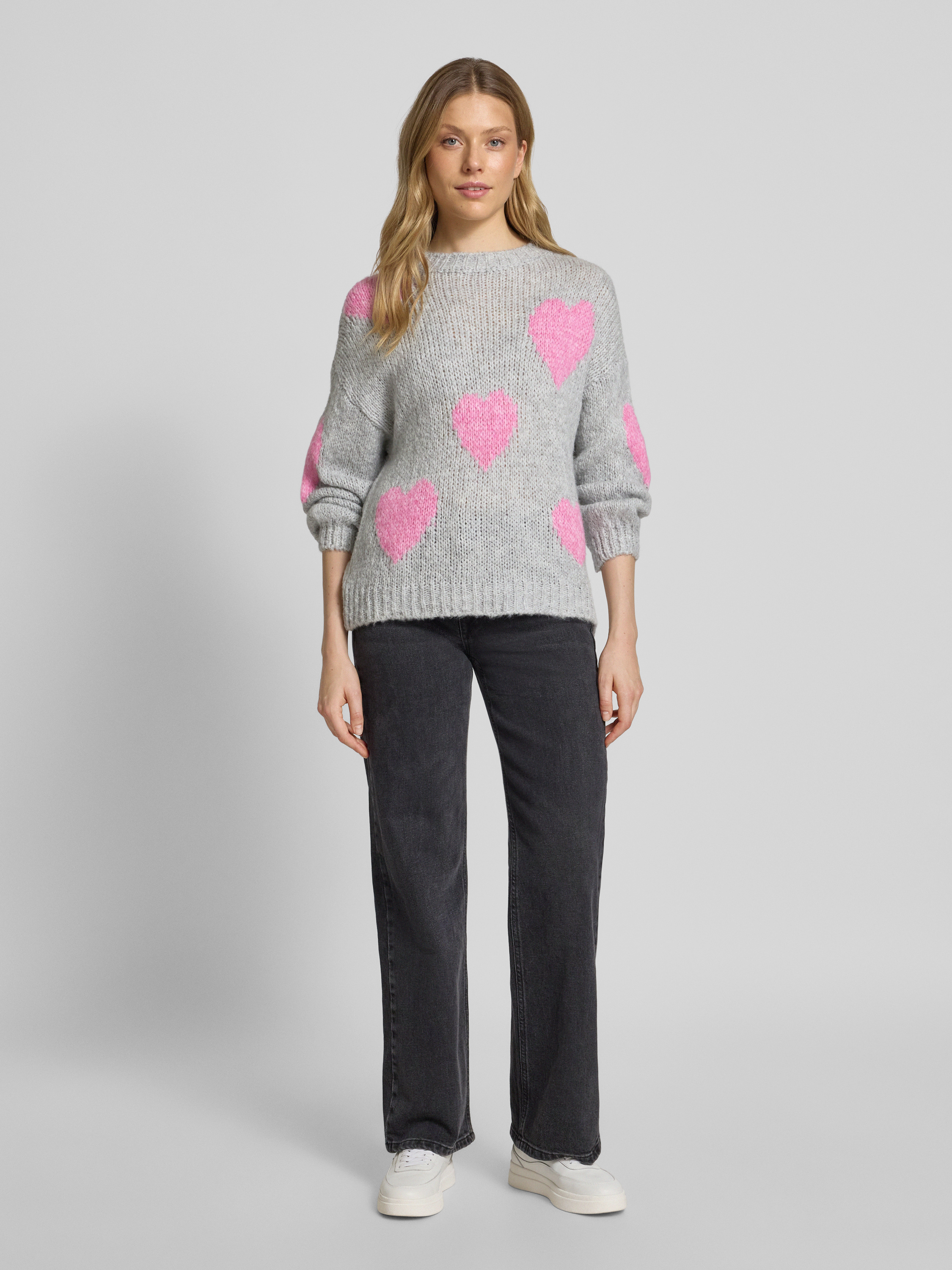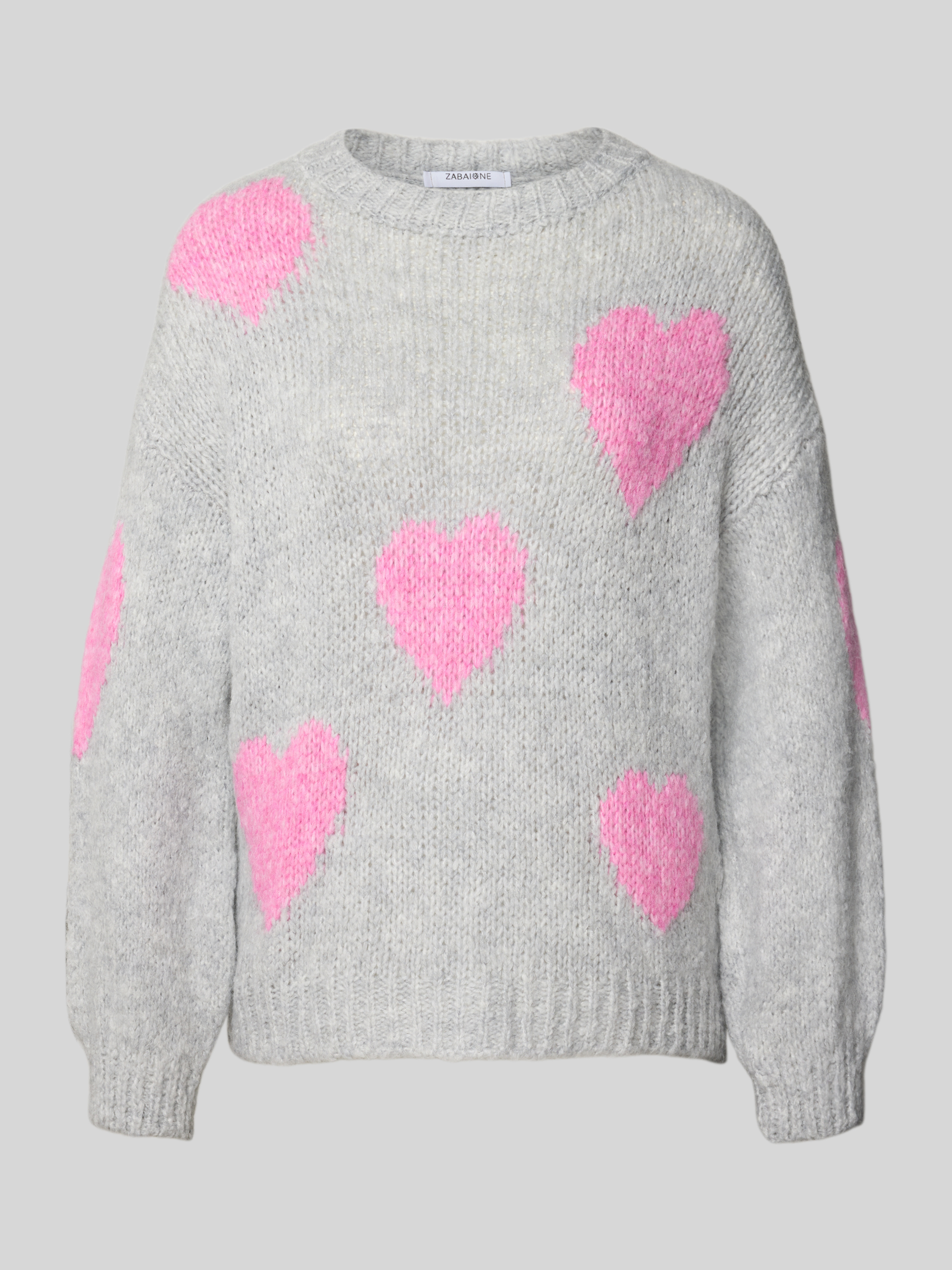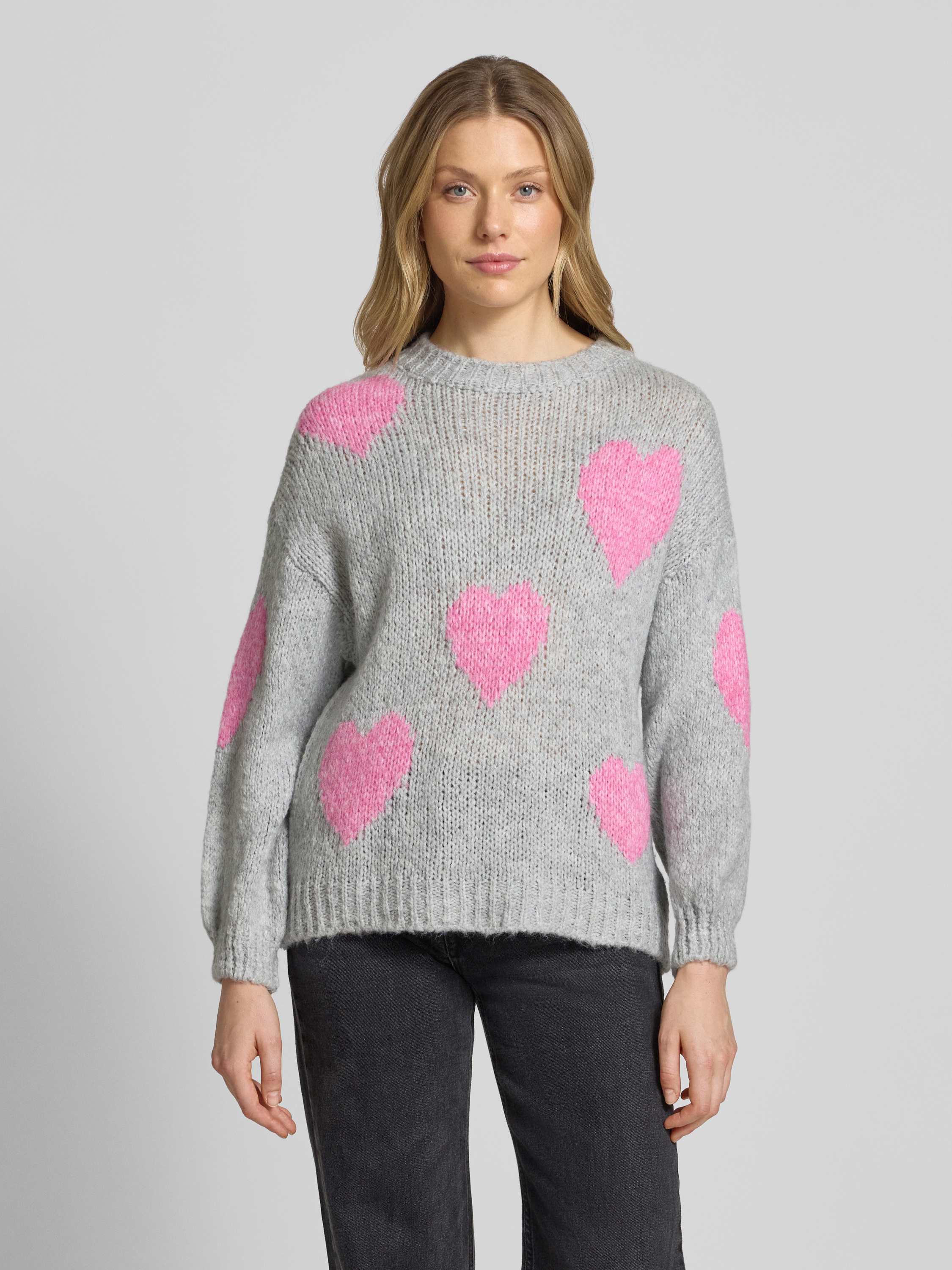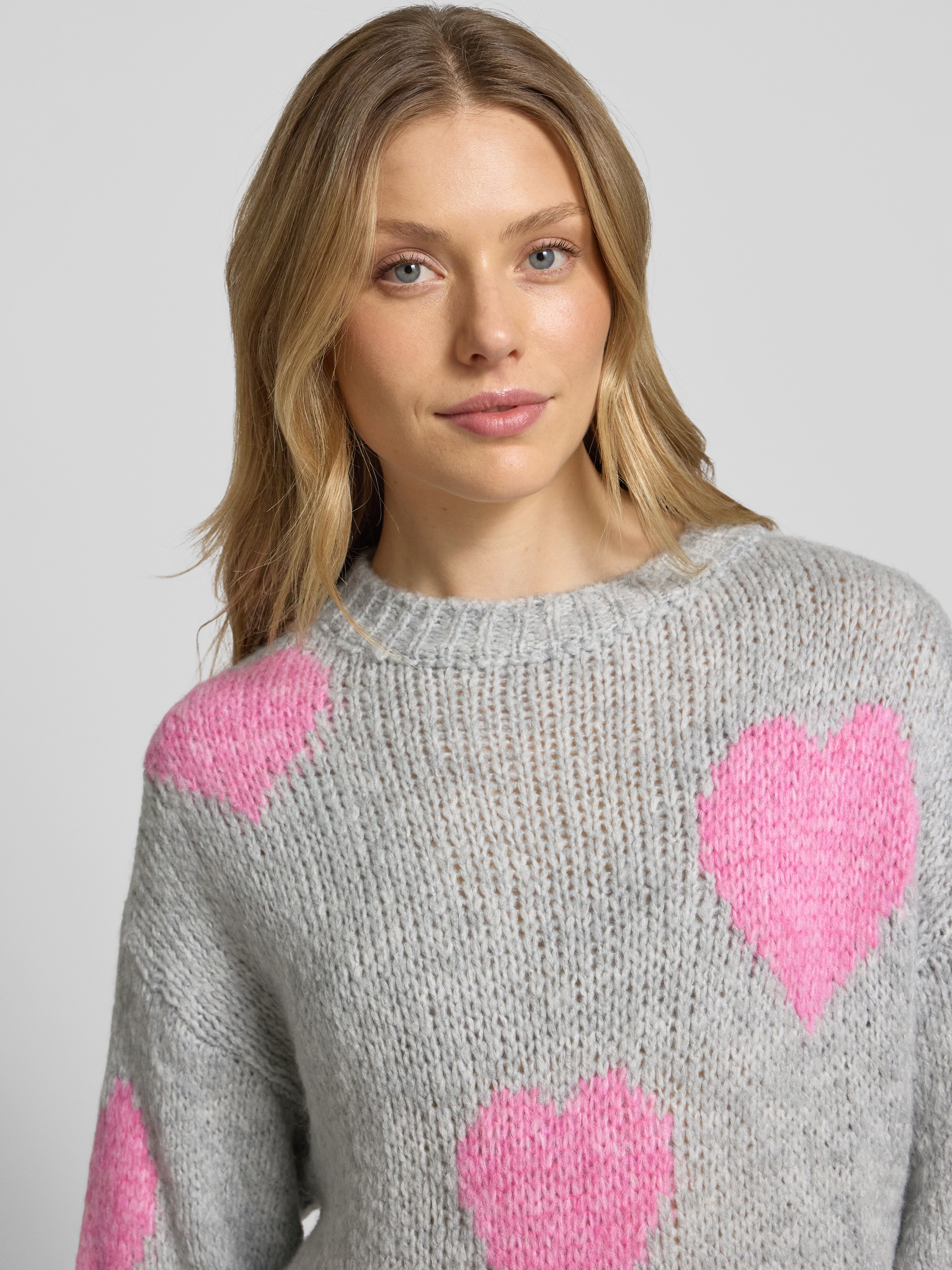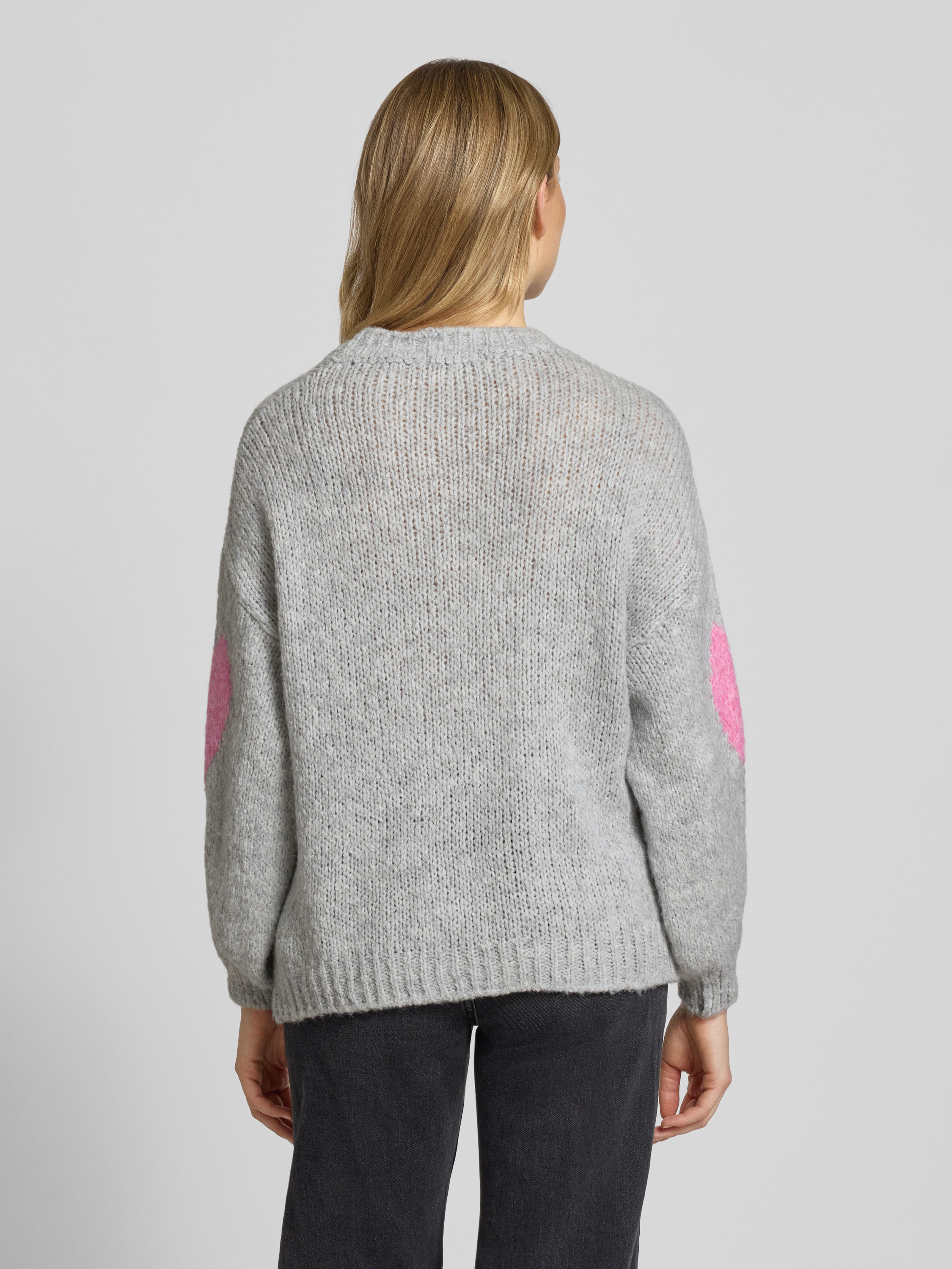 Sweter z dzianiny z okrągłym dekoltem model ‘Bo44nita’ - średnioszary