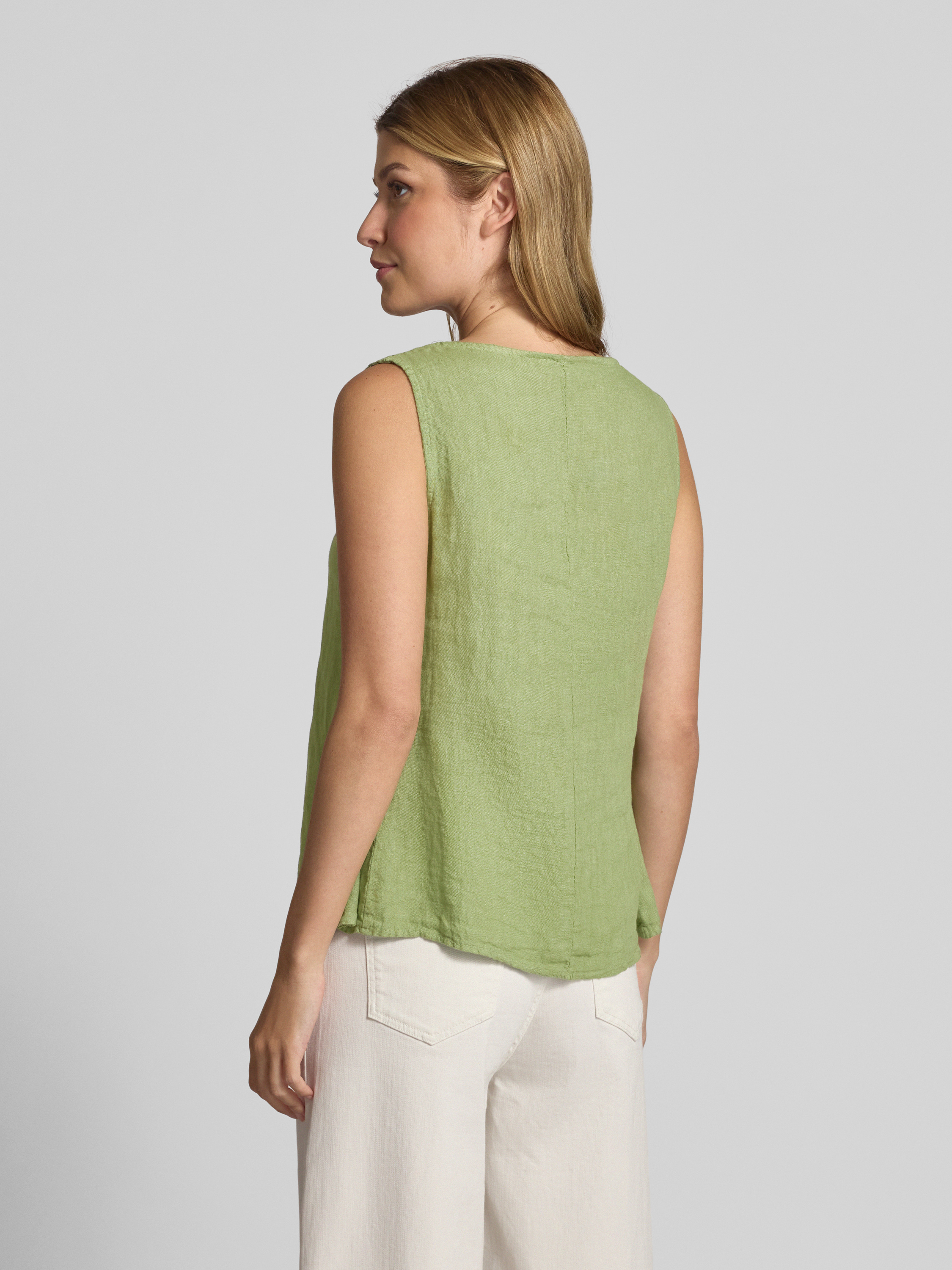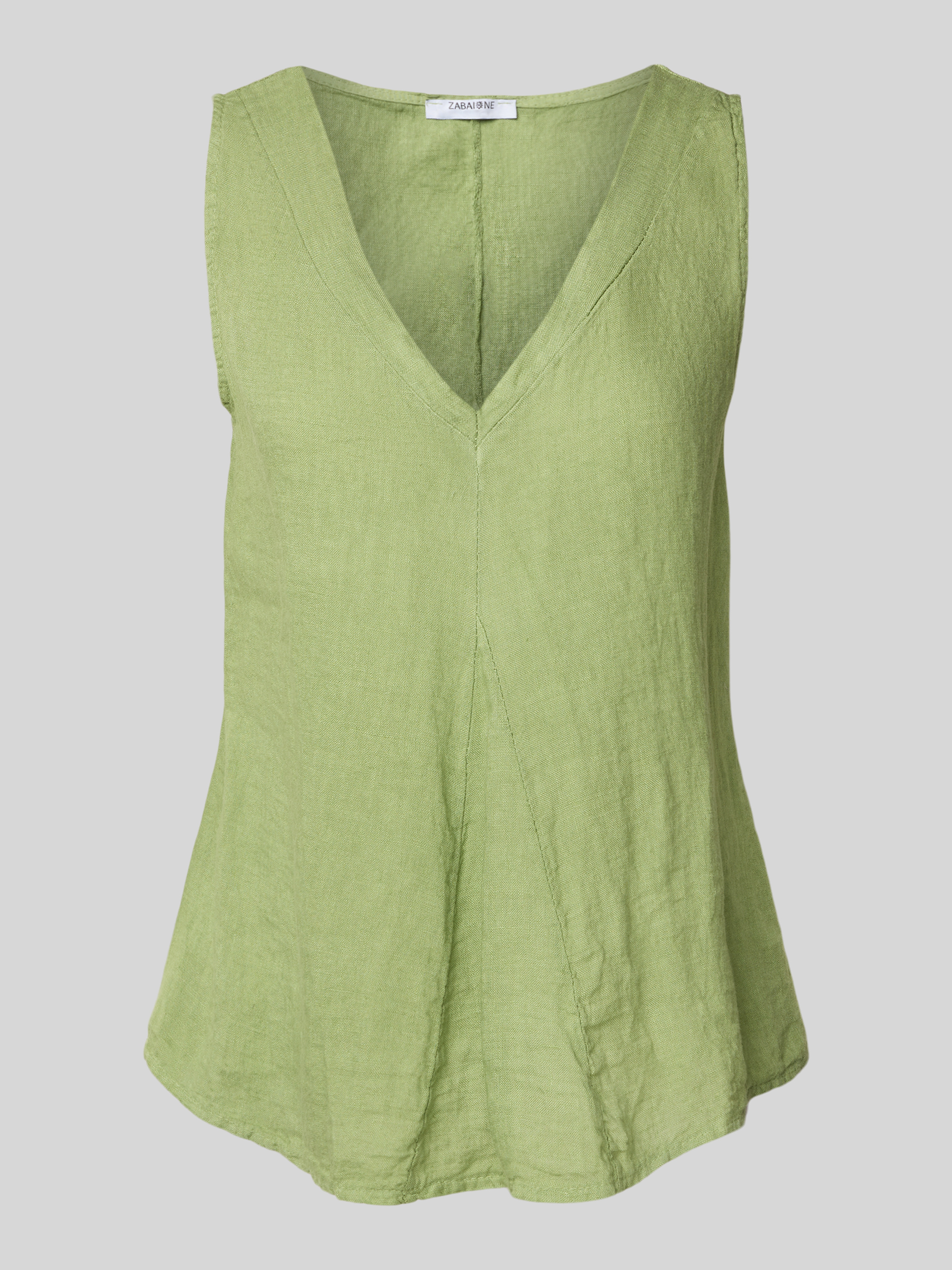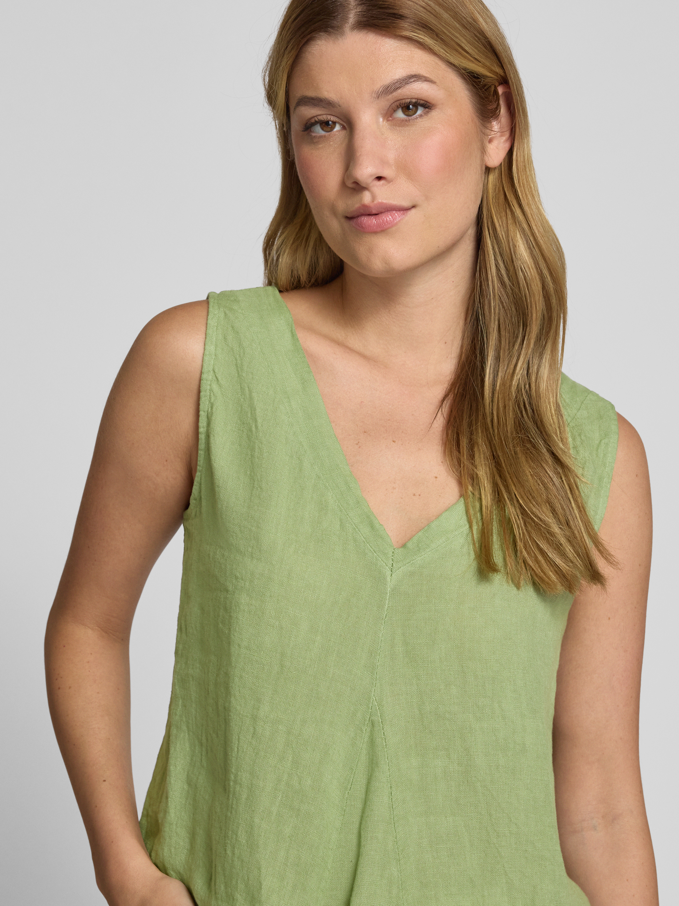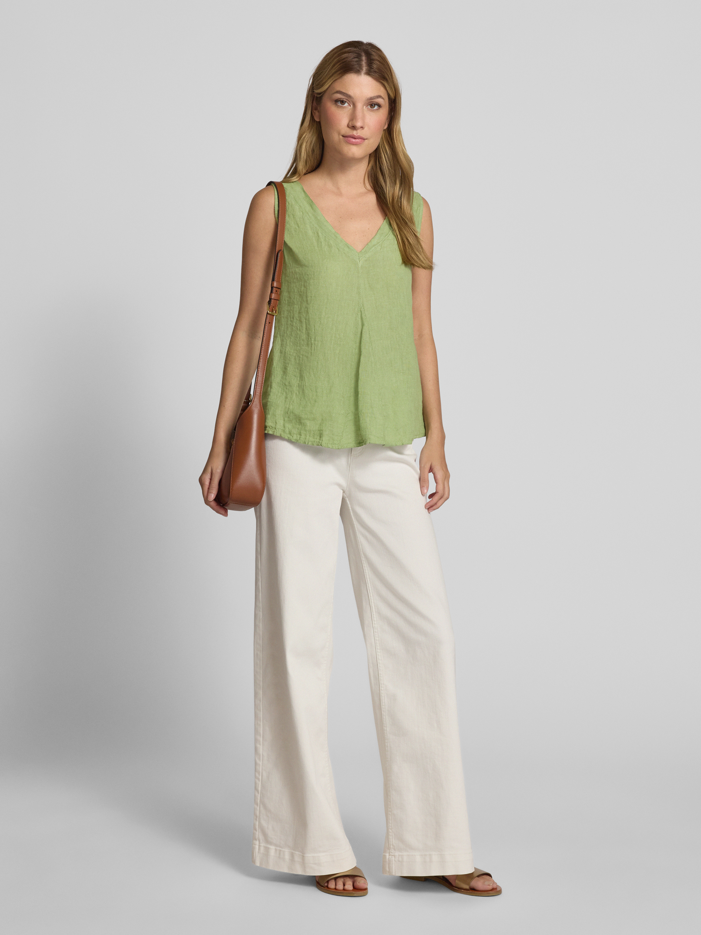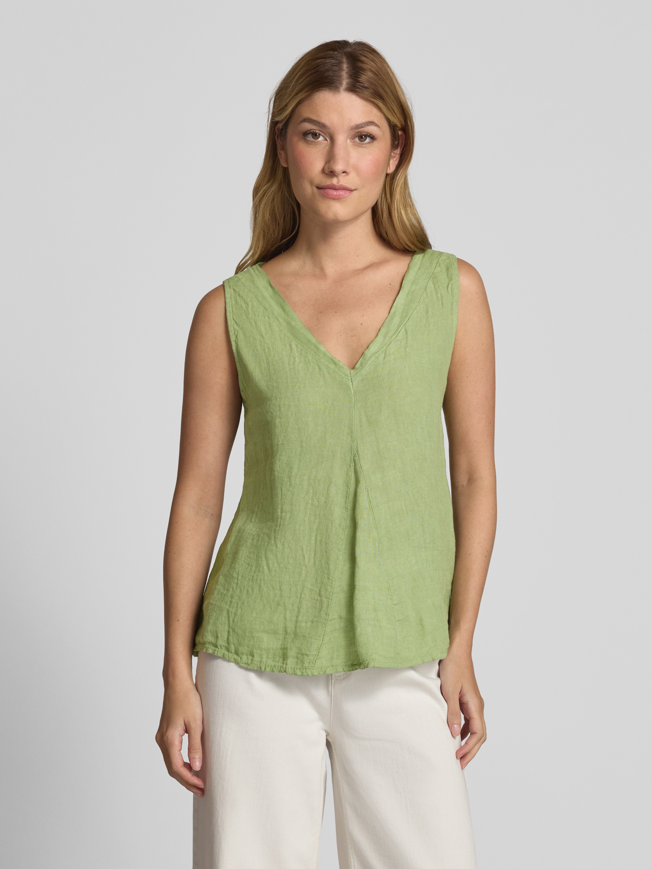 Top bluzkowy lniany o kroju regular fit z dekoltem w serek model ‘Lu44cia’ - miętowy