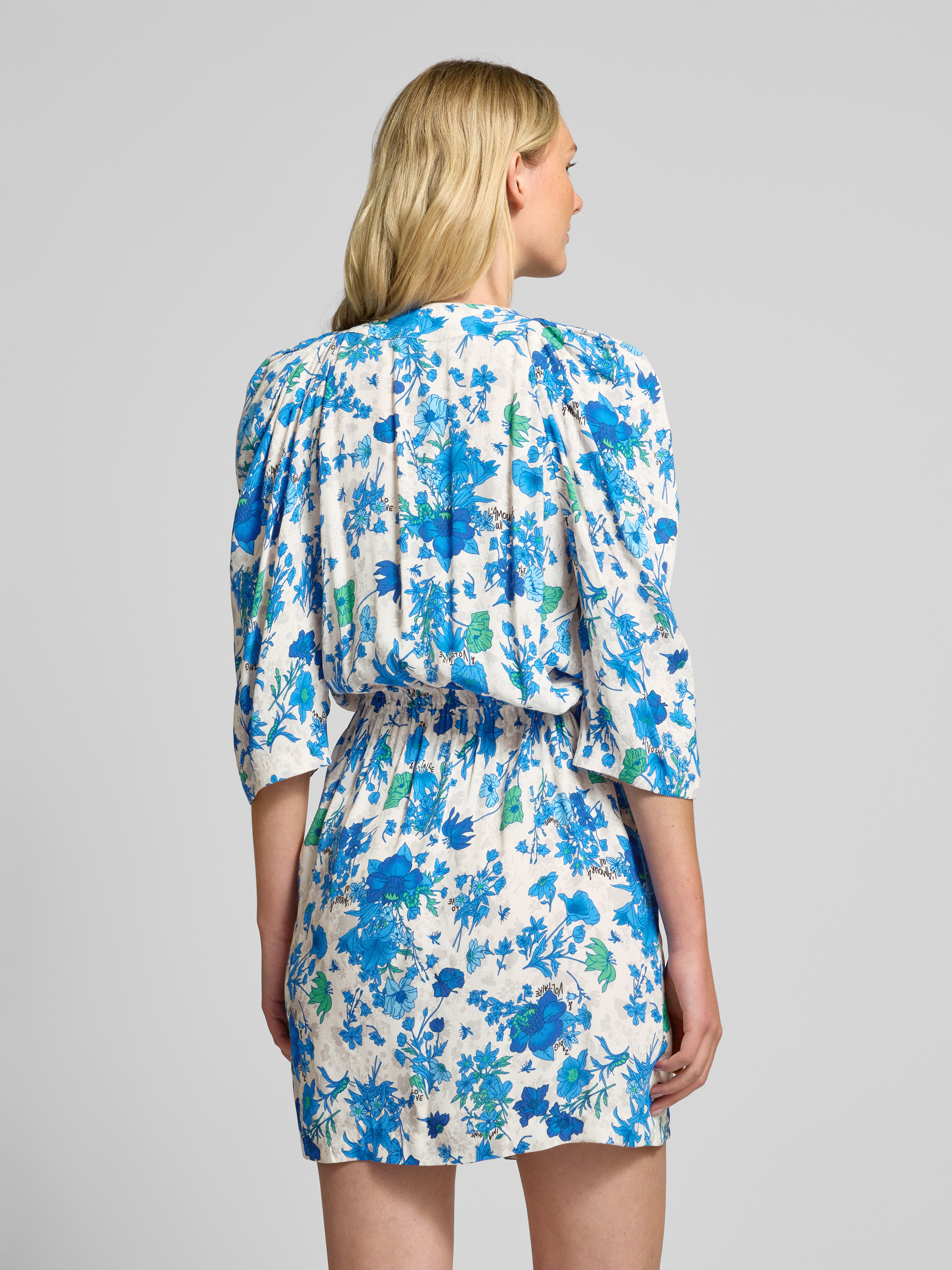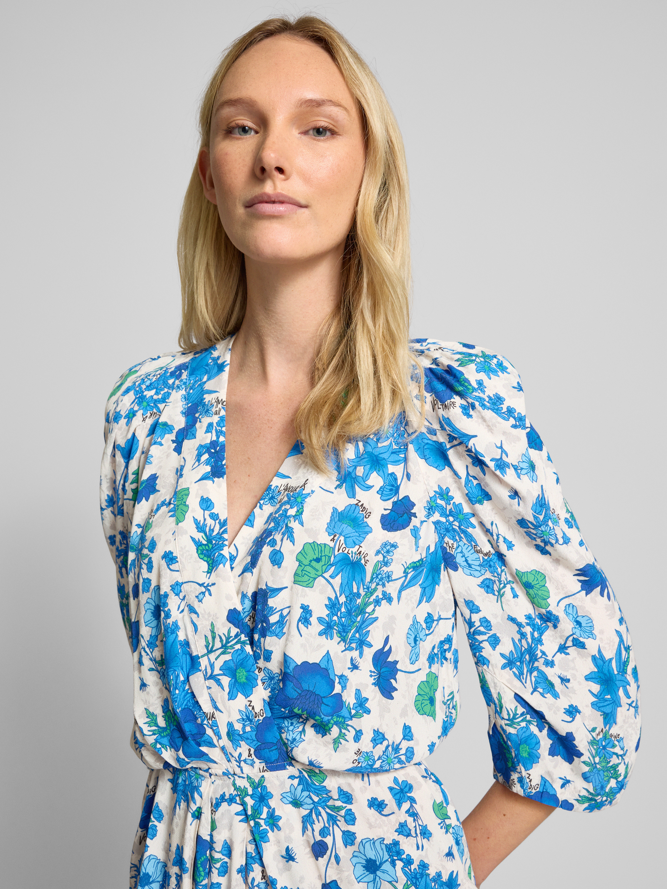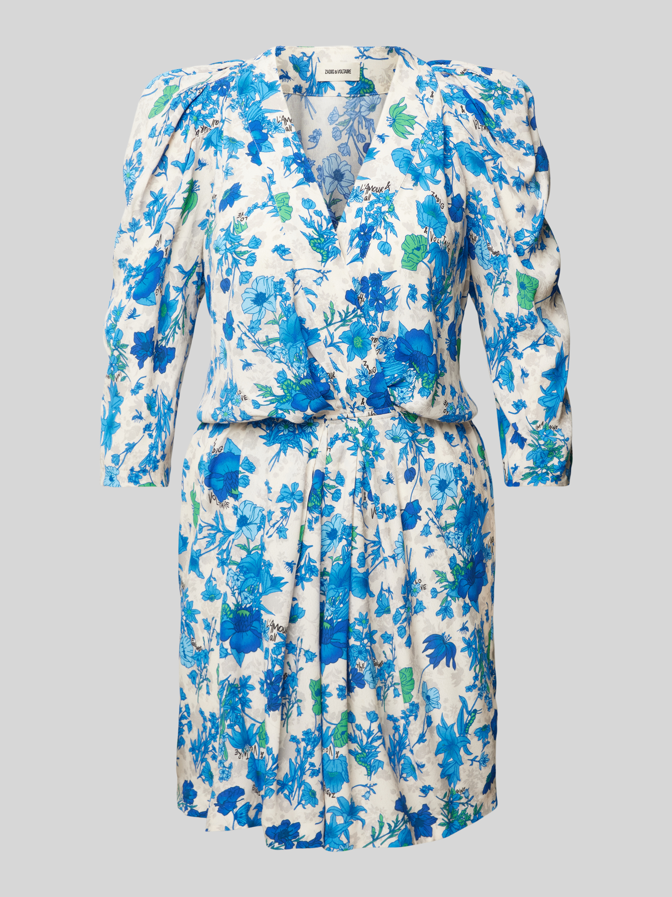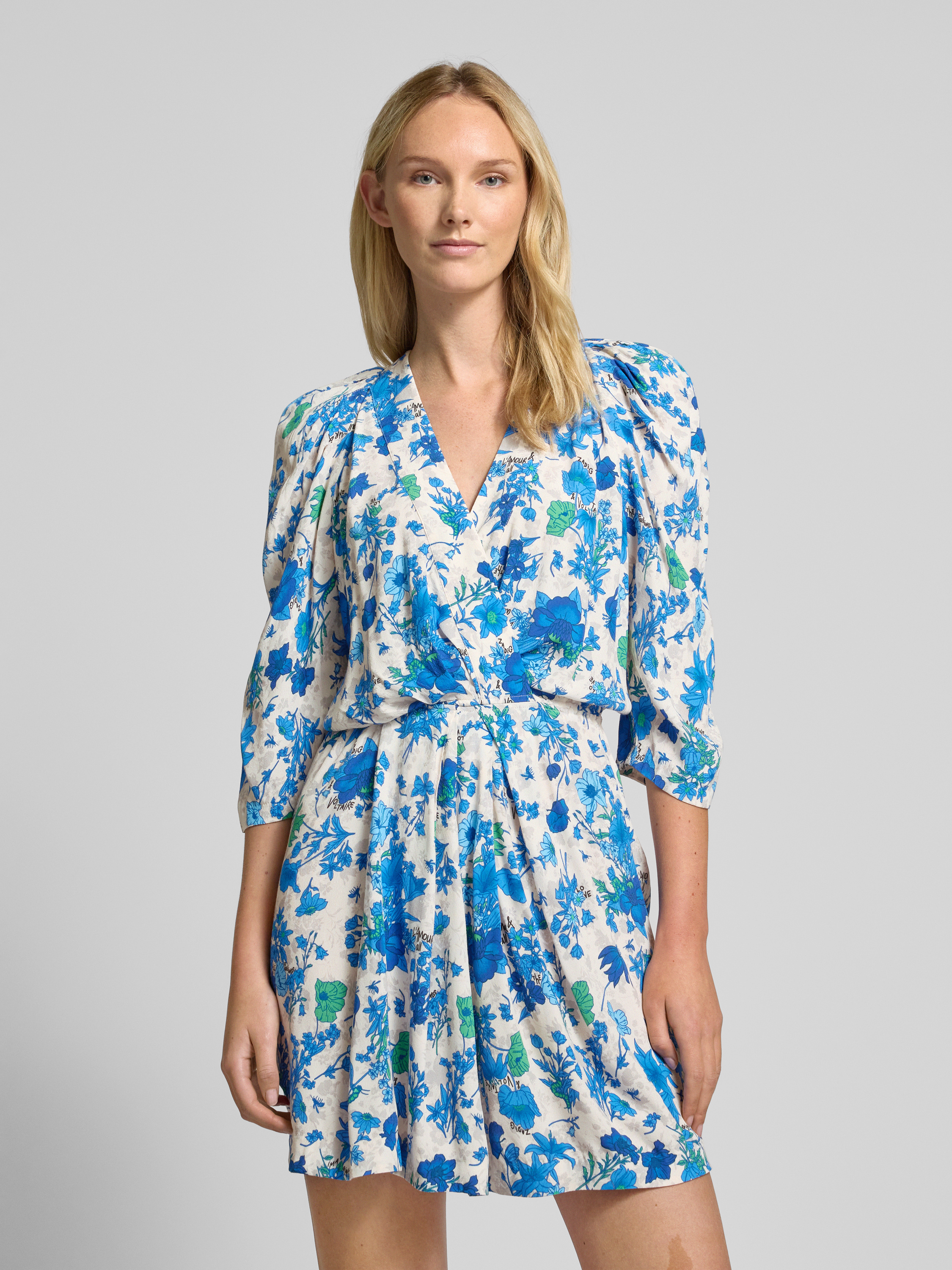 Sukienka o długości do kolan z bufiastymi rękawami - niebieski