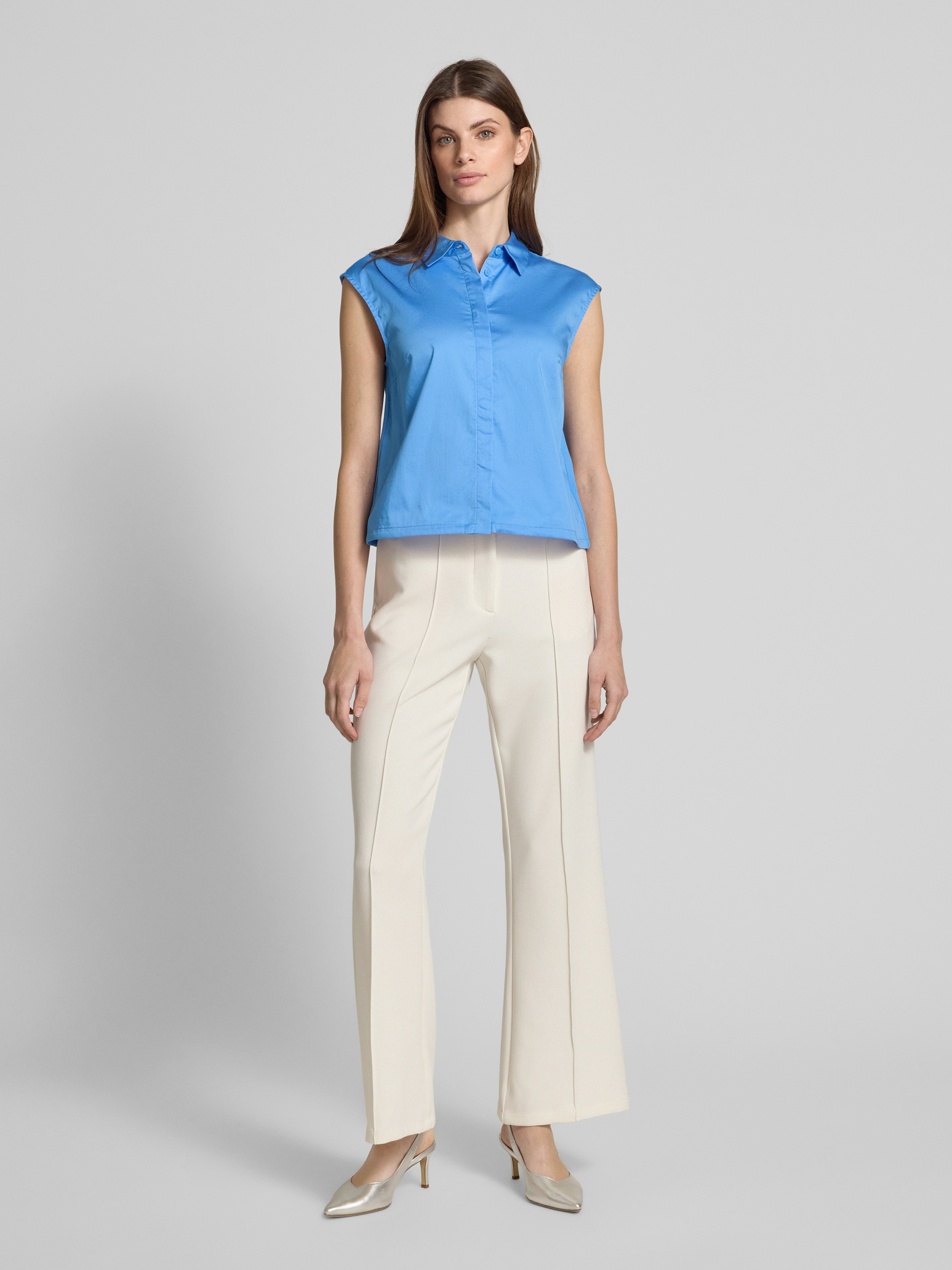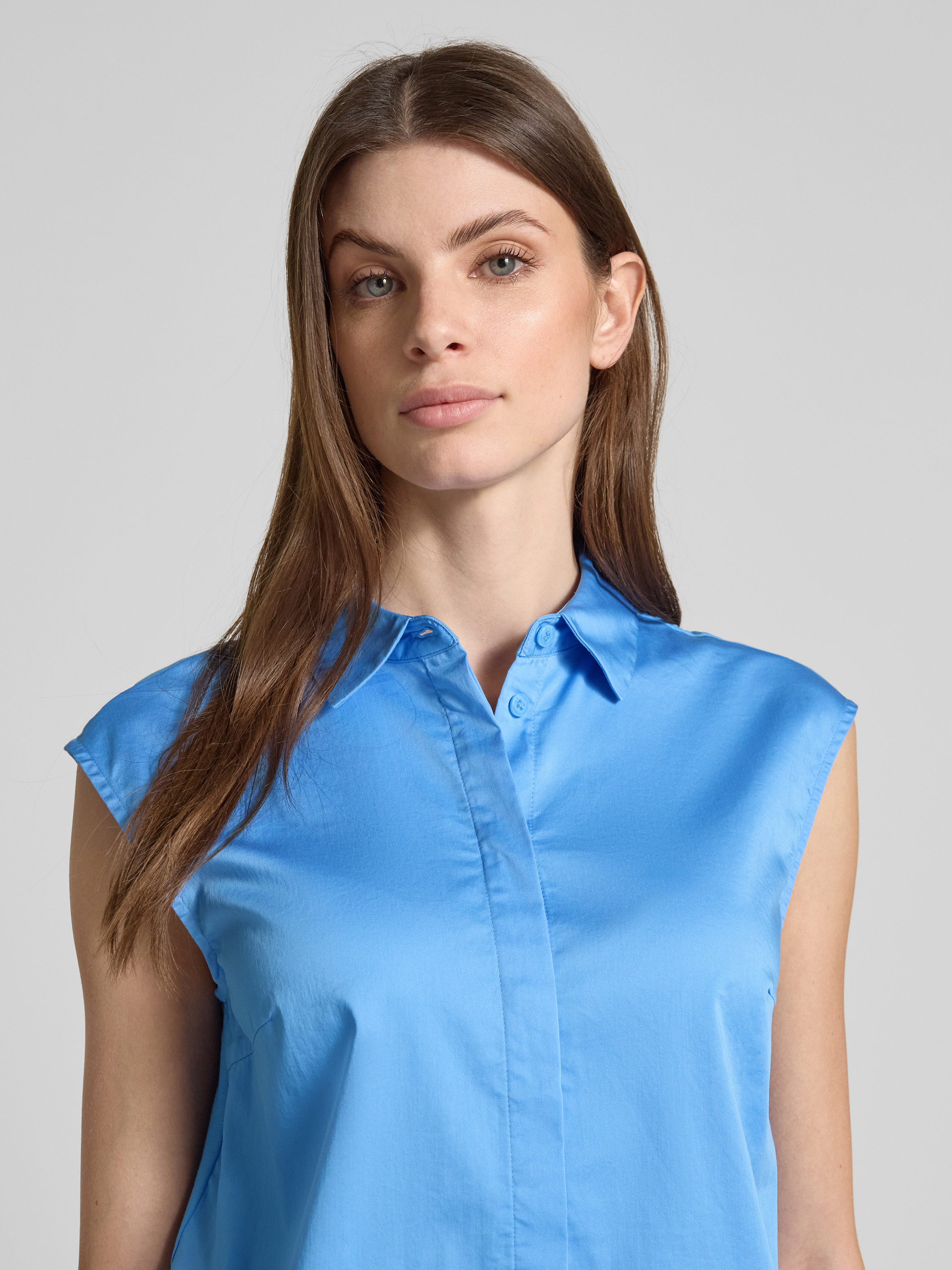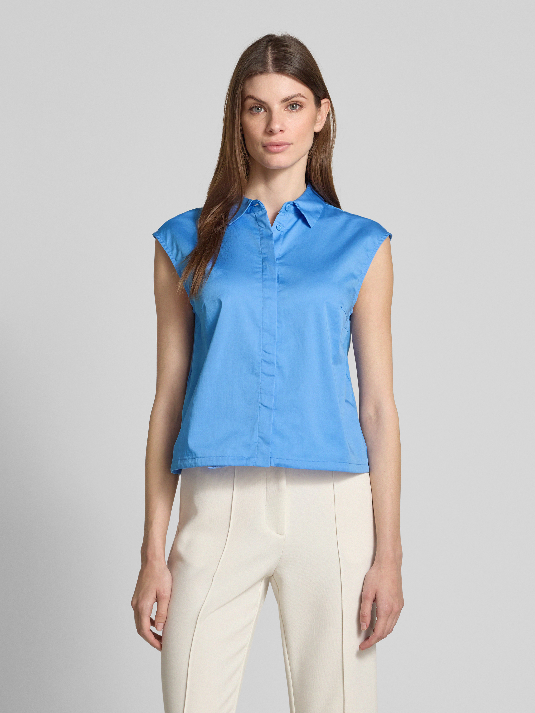 Bluzka koszulowa o kroju regular fit z elastycznej mieszanki bawełny - jasnoniebieski