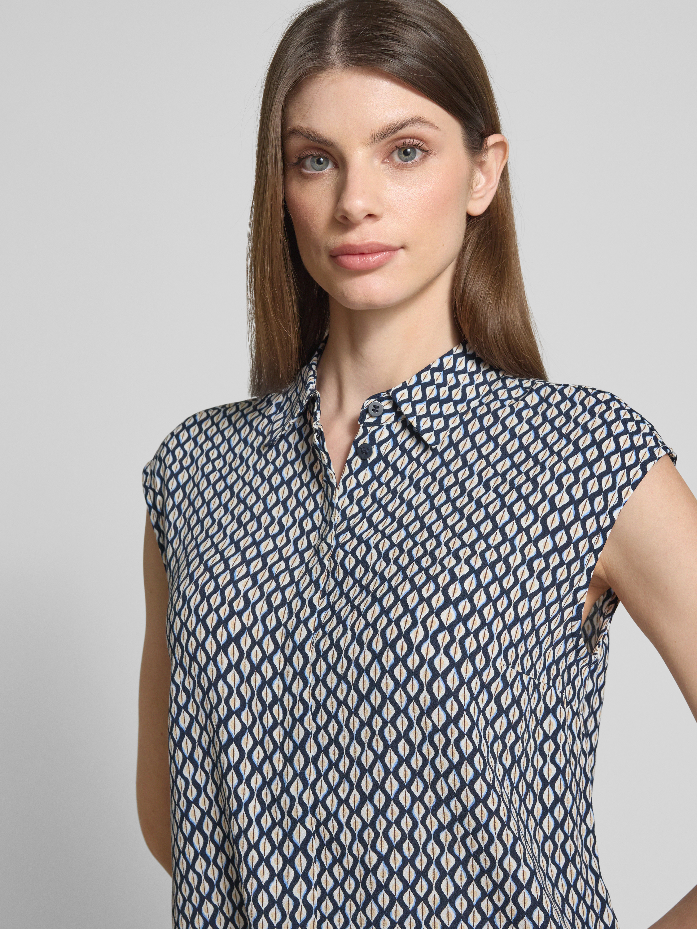 Bluzka o kroju slim fit z wykładanym kołnierzem - błękitny