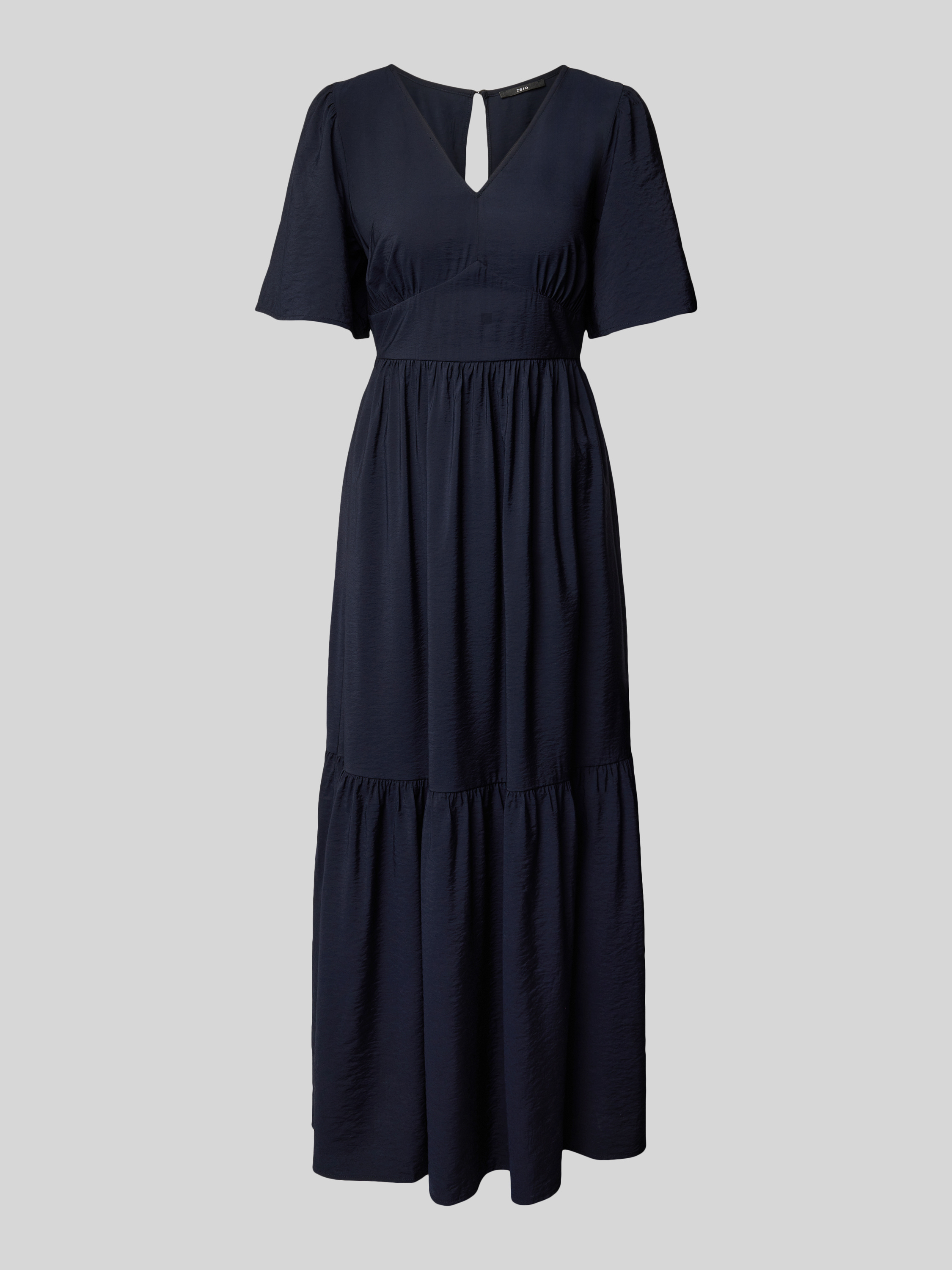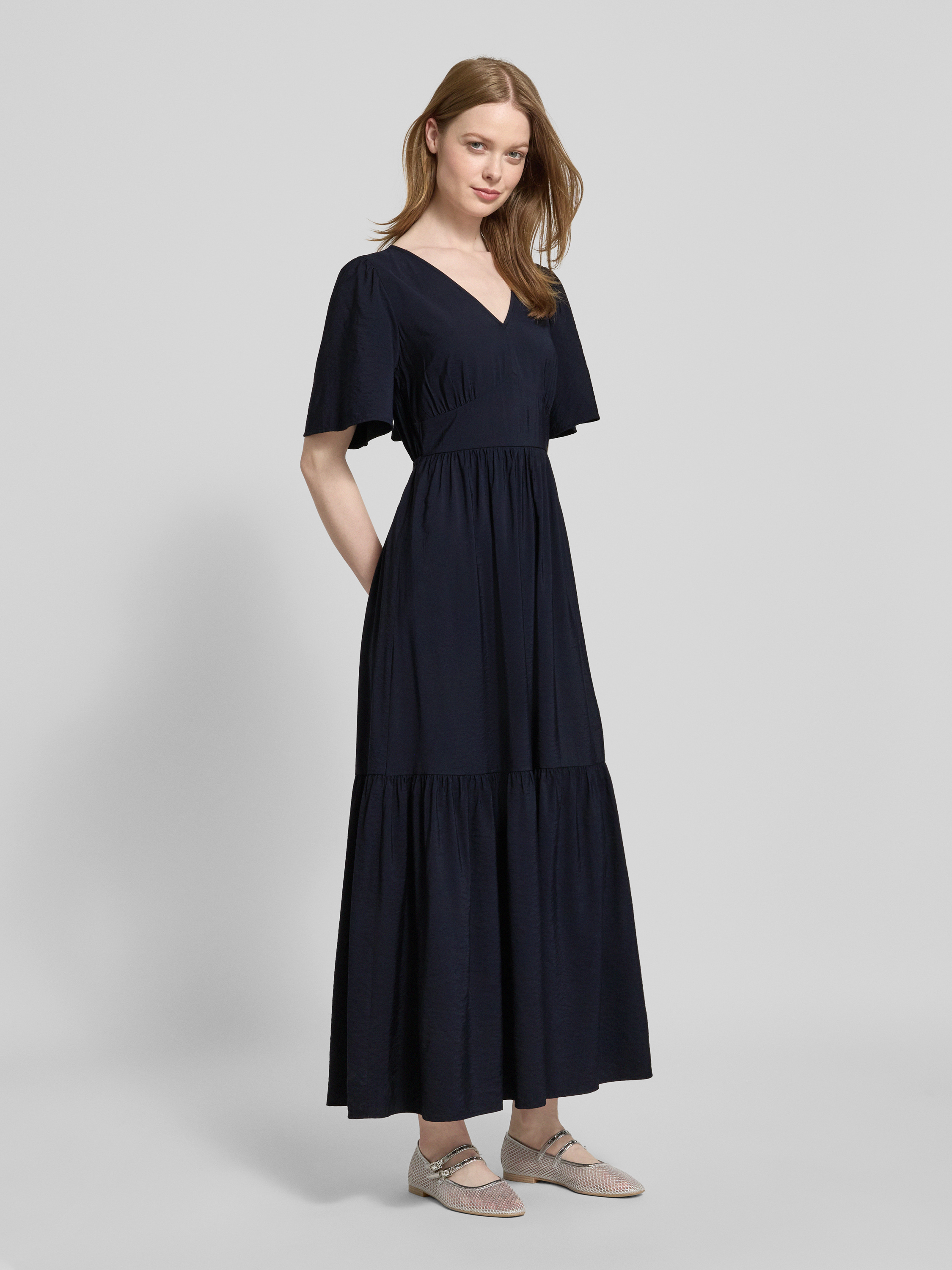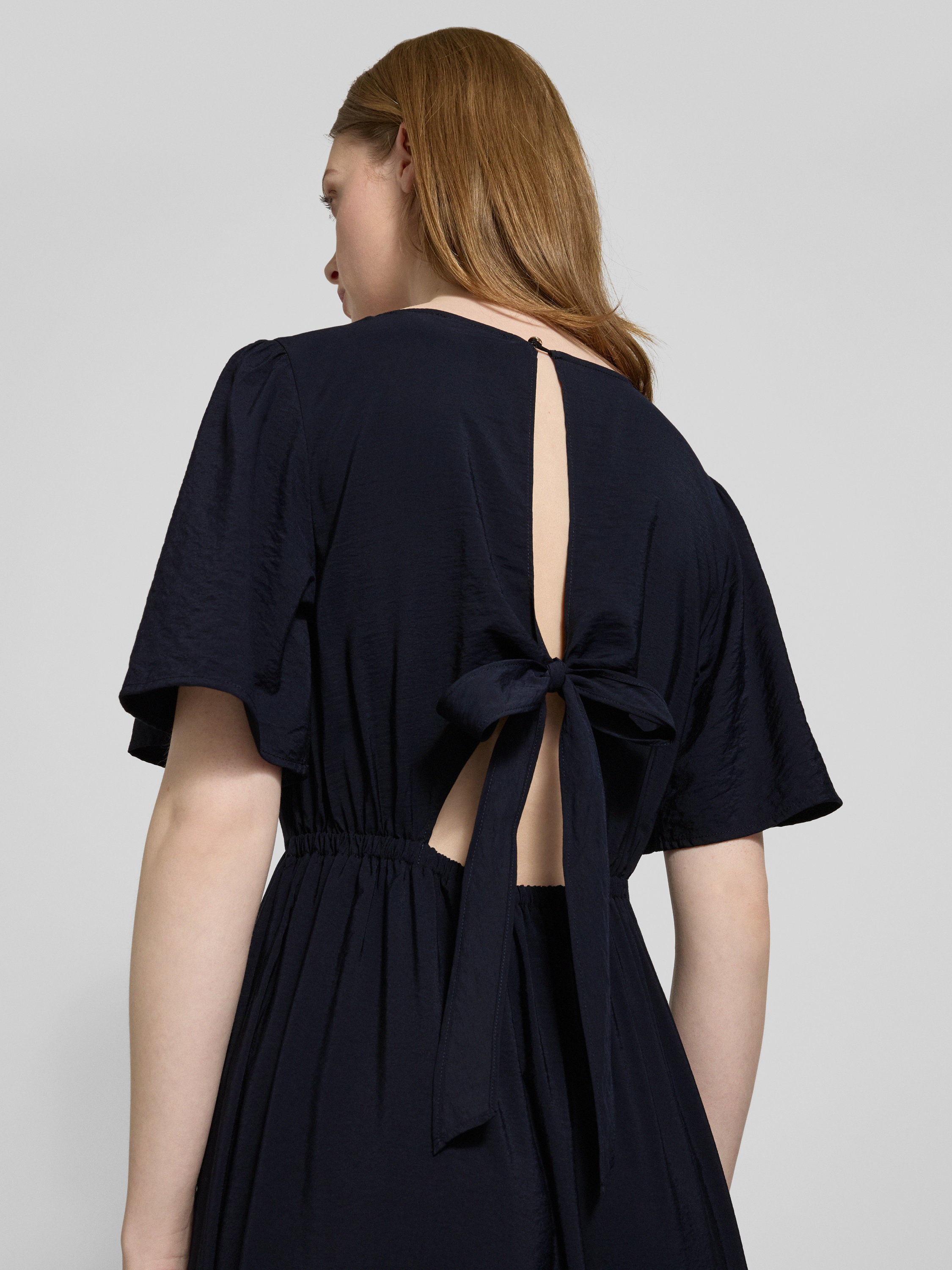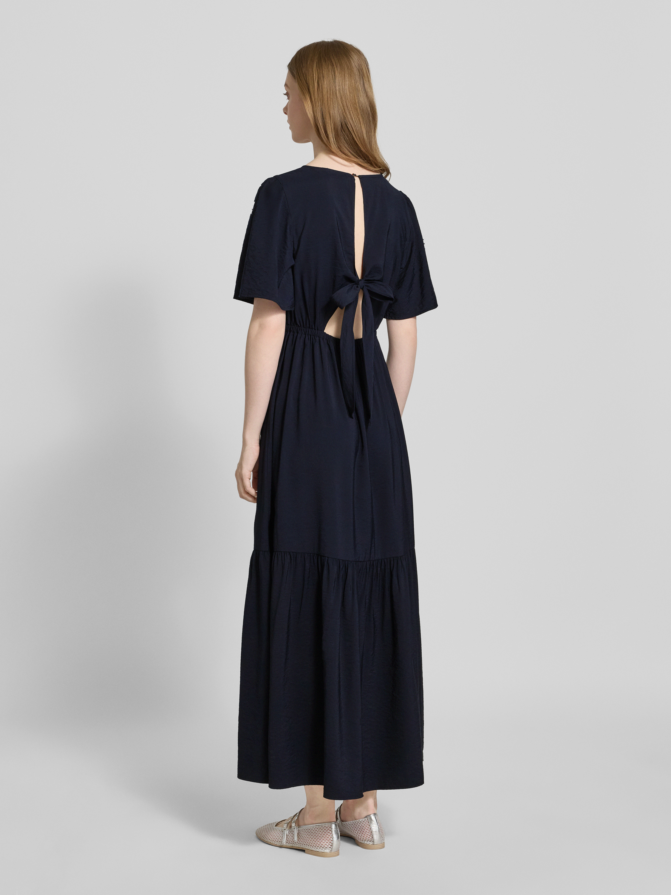 Długa sukienka z mieszanki wiskozy z dekoltem na plecach - granatowy