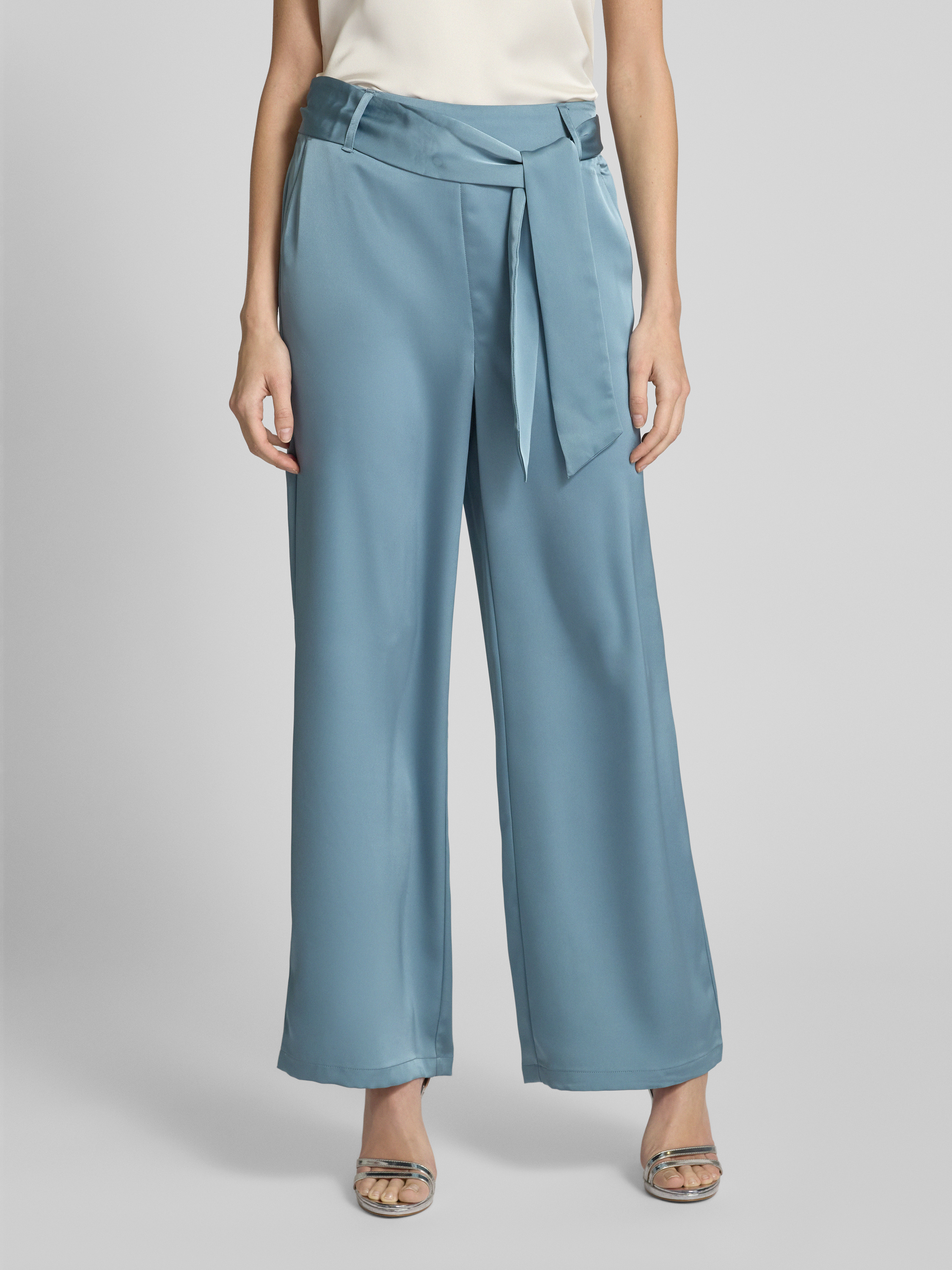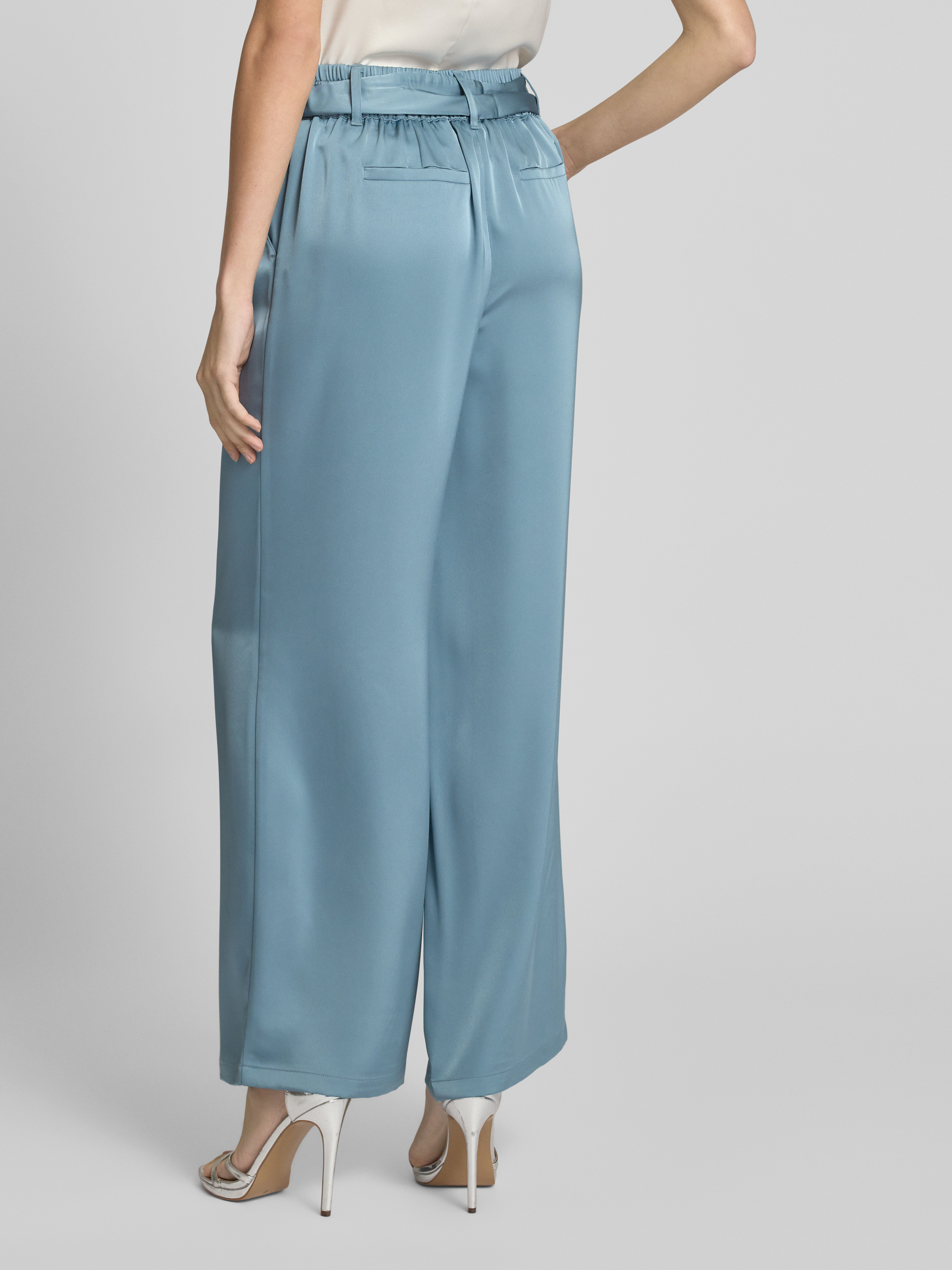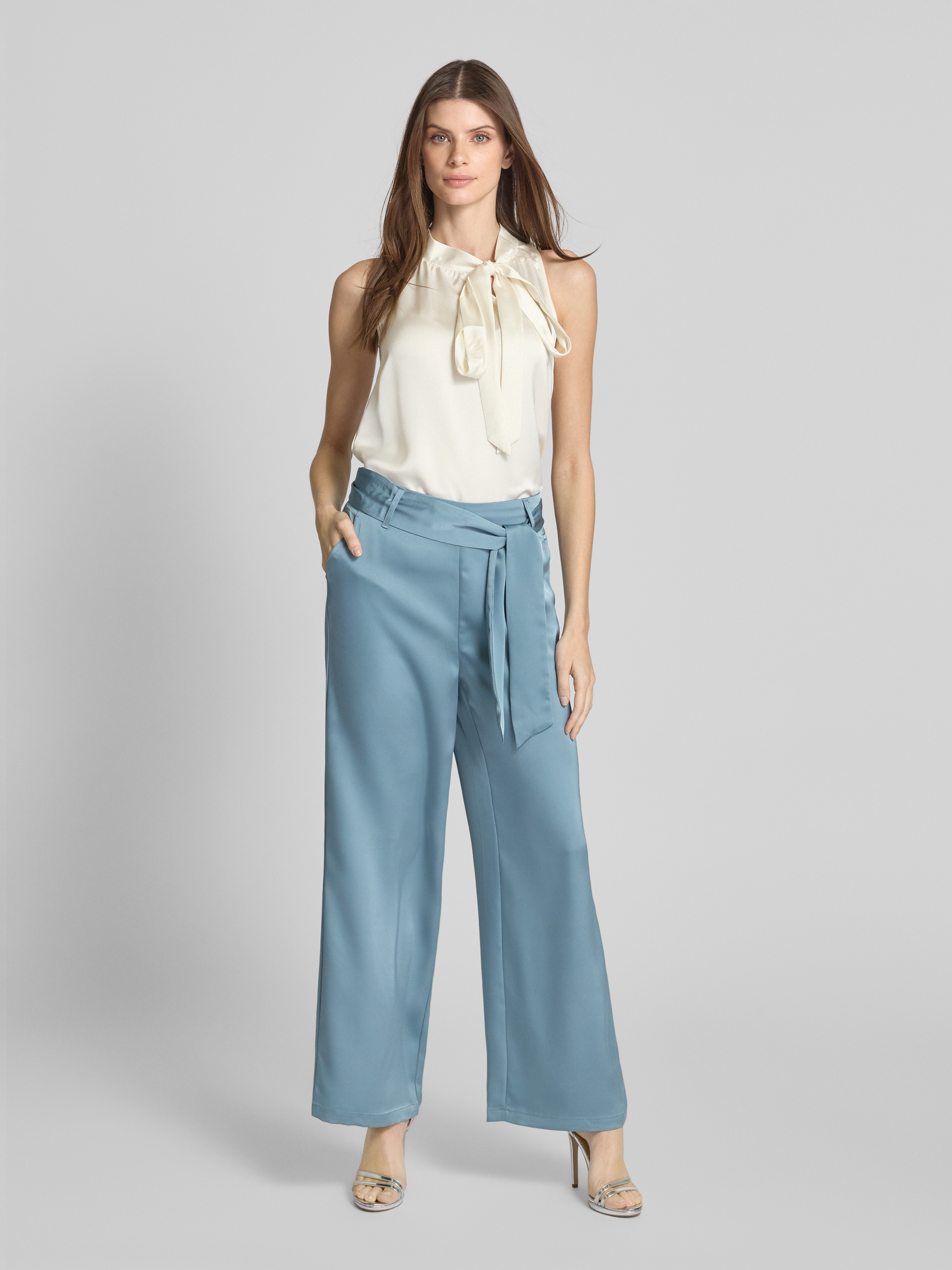 Spodnie z szeroką nogawką i wiązanym paskiem - błękitny