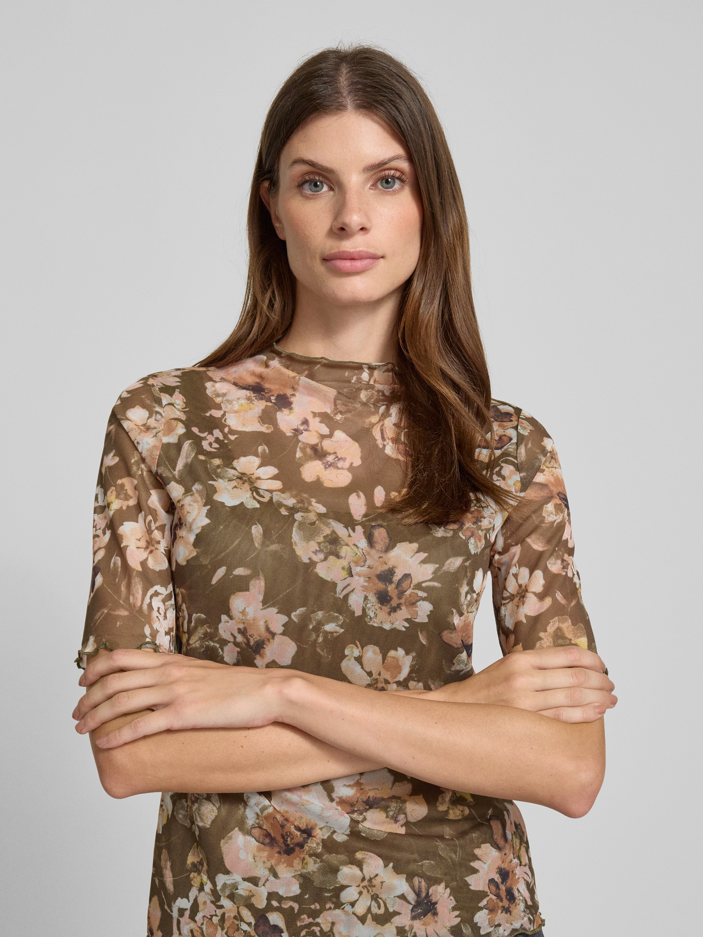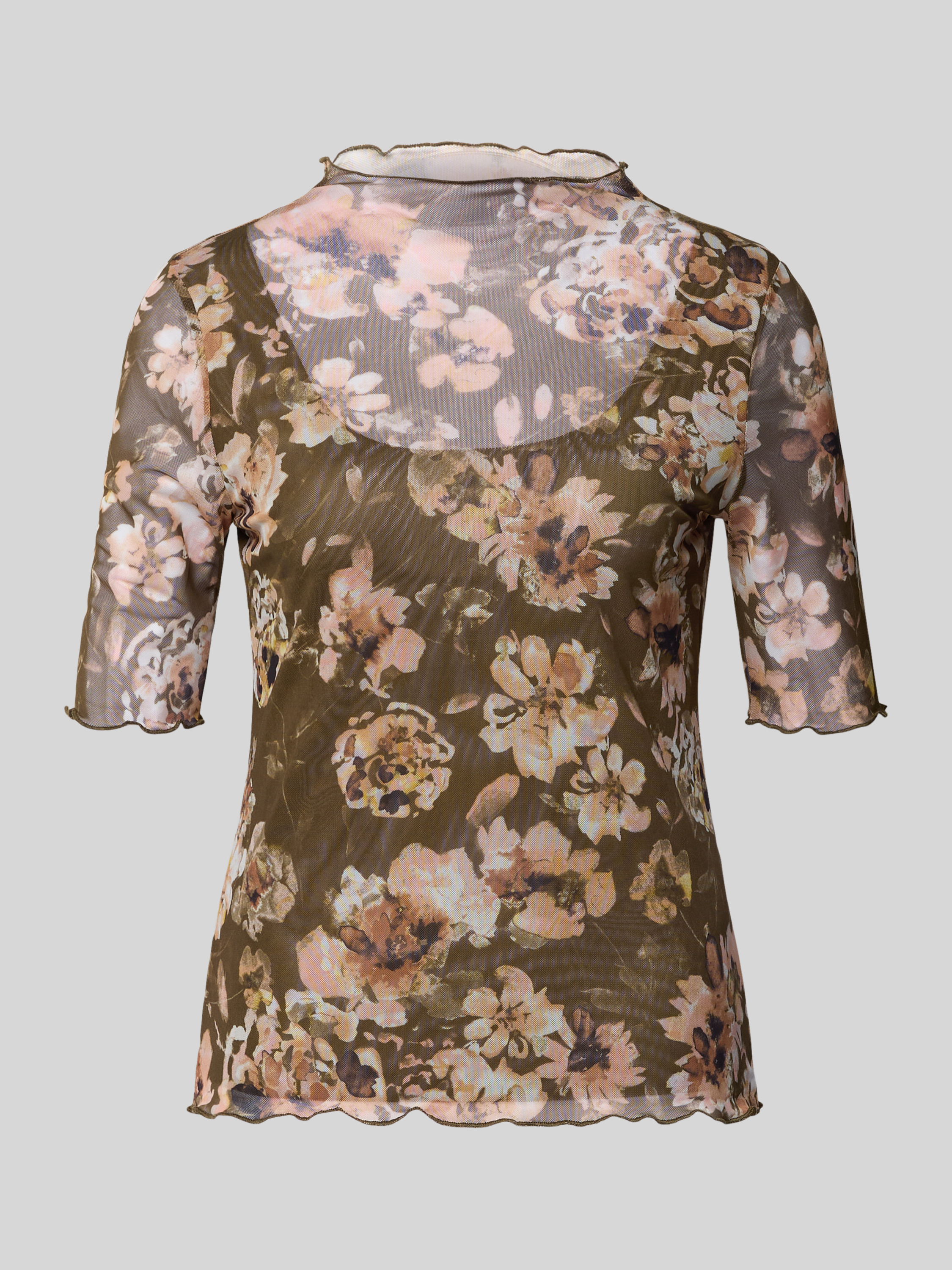 T-shirt o kroju slim fit ze stójką i zrolowanym brzegiem - khaki