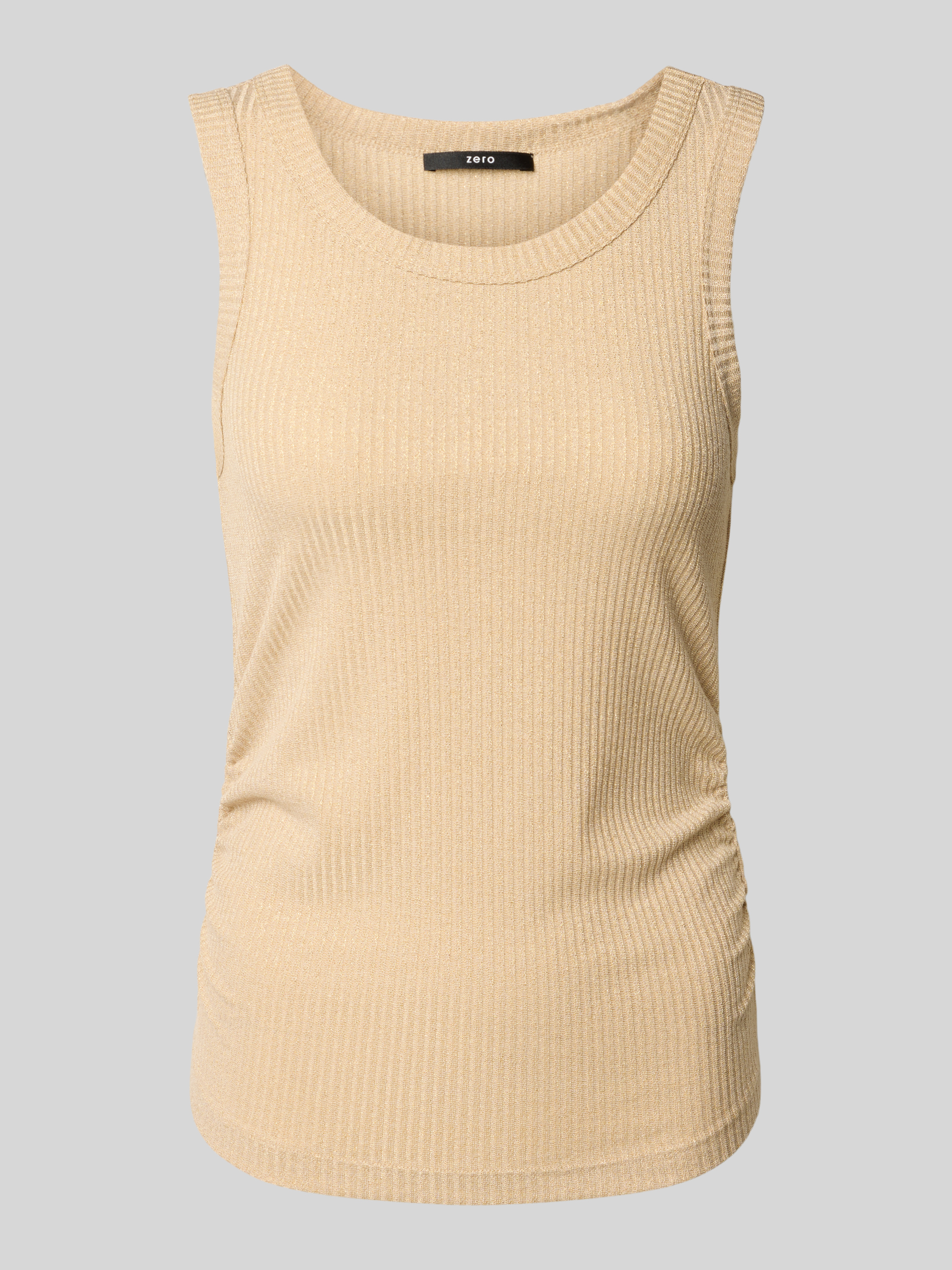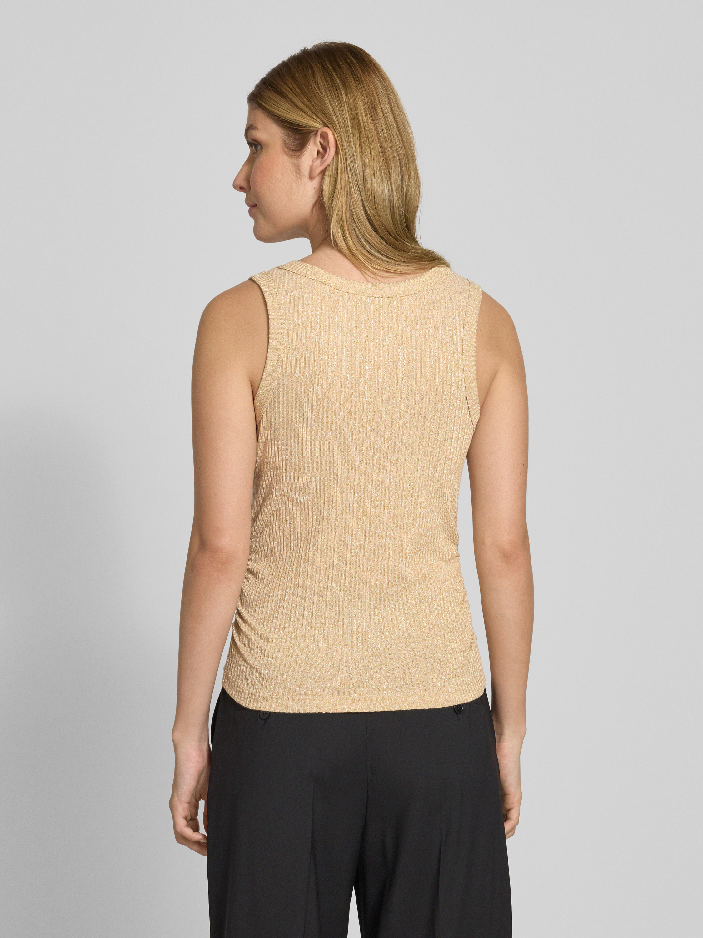 Top z mieszanki wiskozy z okrągłym dekoltem - piaskowy