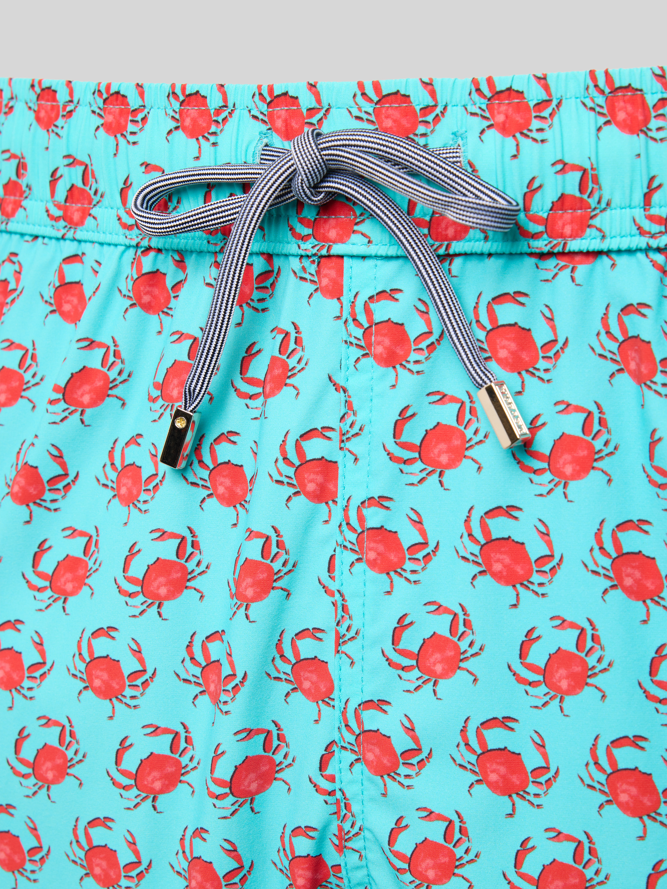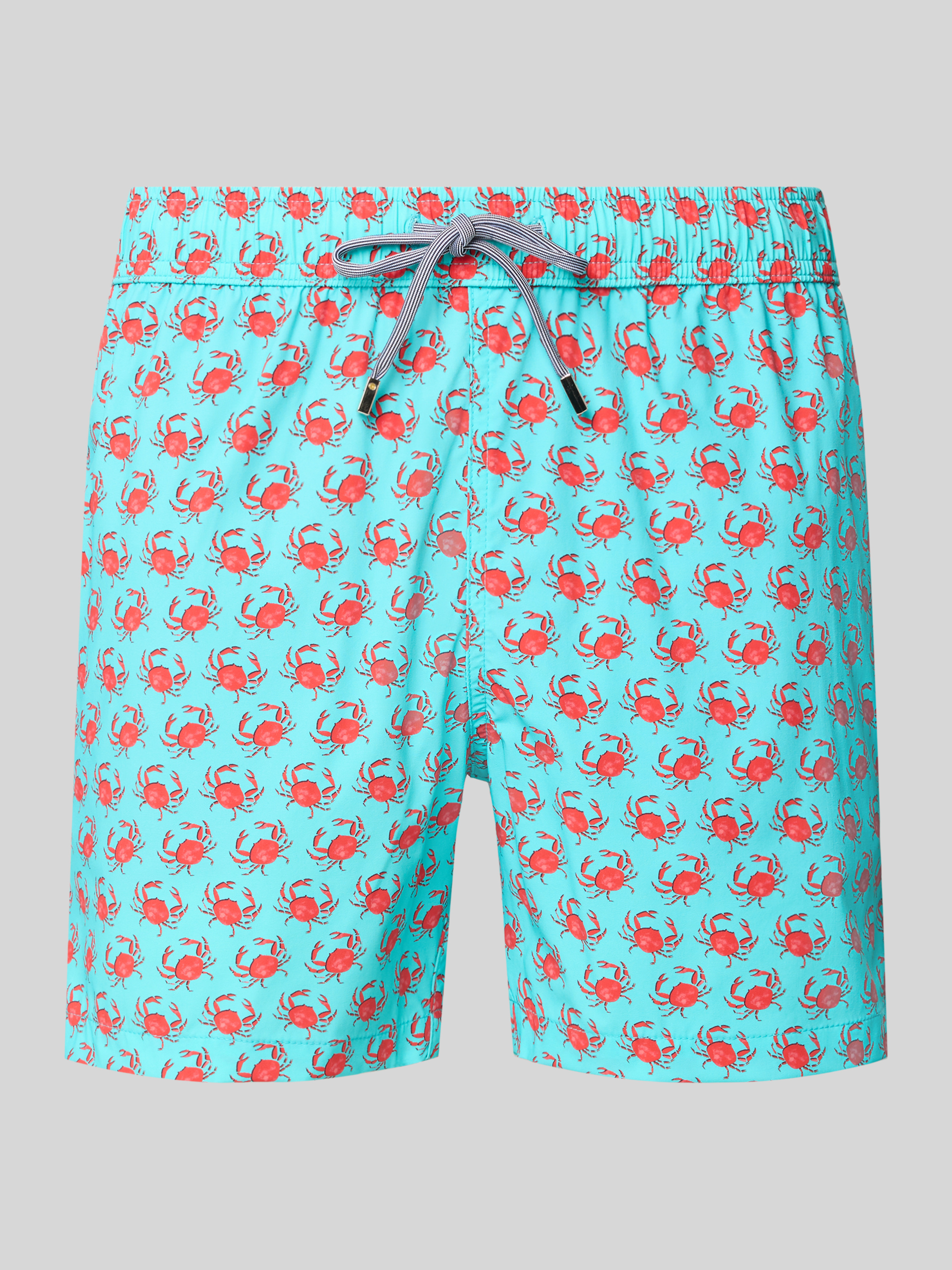 Spodenki kąpielowe o kroju regular fit z naszywką z logo model ‘GRANCHIO’ - turkusowy